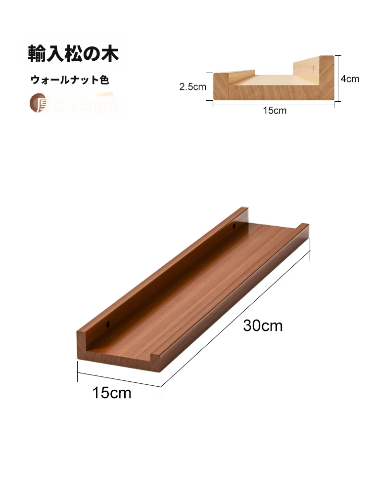 【15CM四件セット-クリア塗装】パイン材-ウォールナットカラー★コンビネーション四件セット