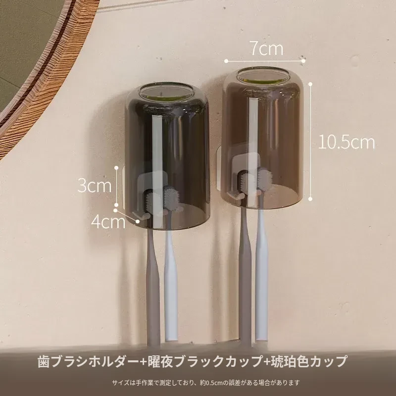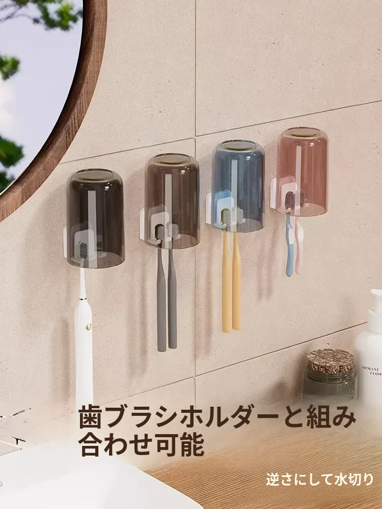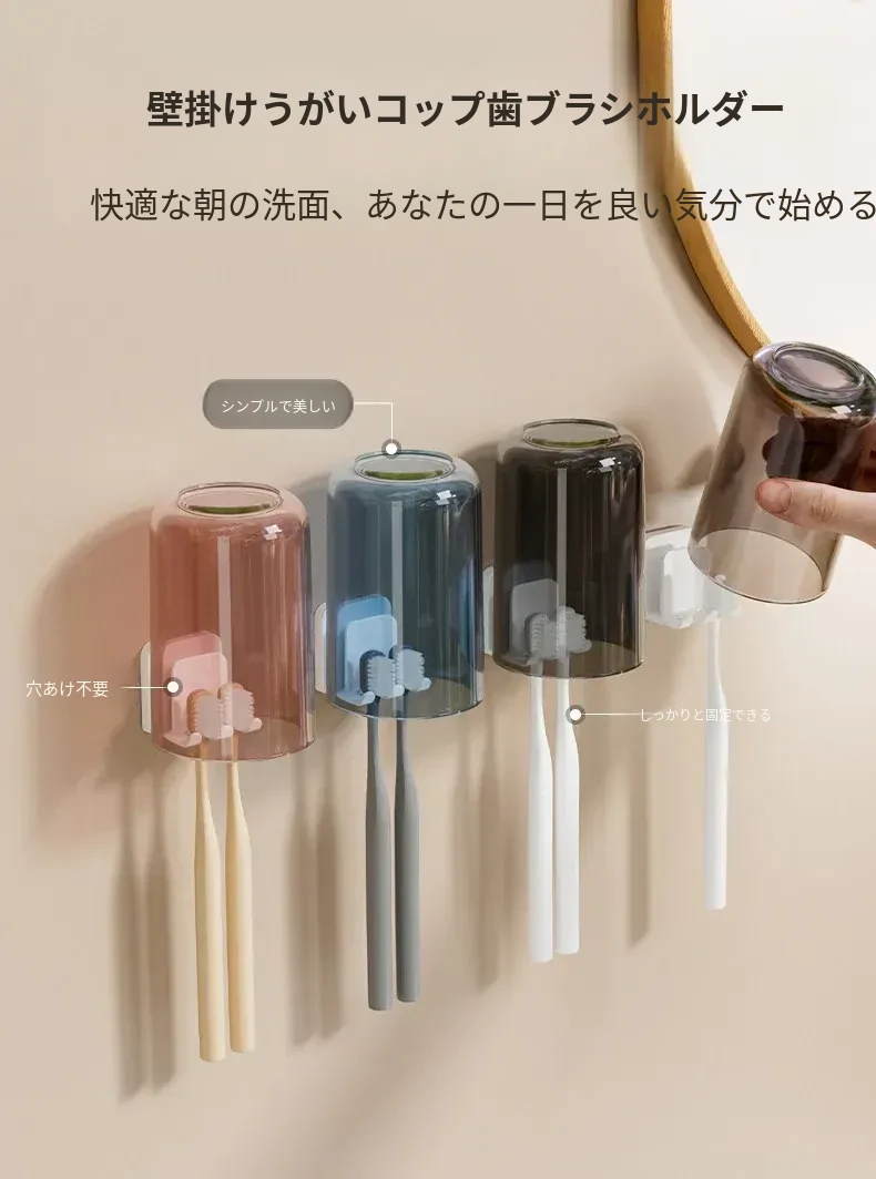 穴を開けずに簡単取り付け!シンプルなデザインの家庭用マウスカップセット。子供やカップルにも最適な創造的な歯磨きカップ。学生の寮生活にもぴったりな洗面用カップ!
