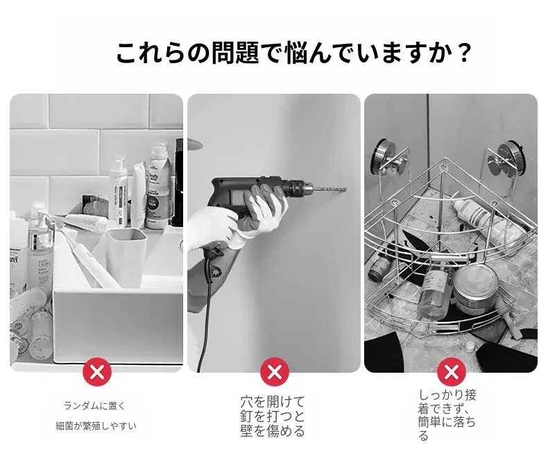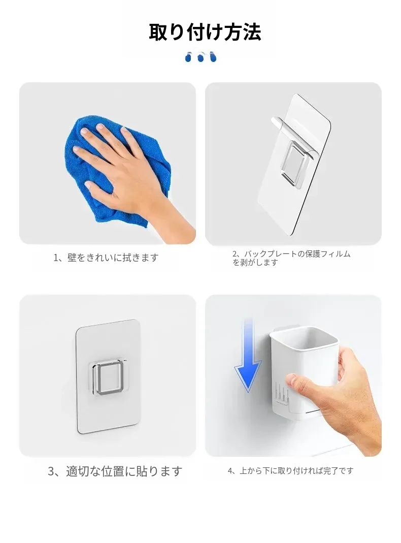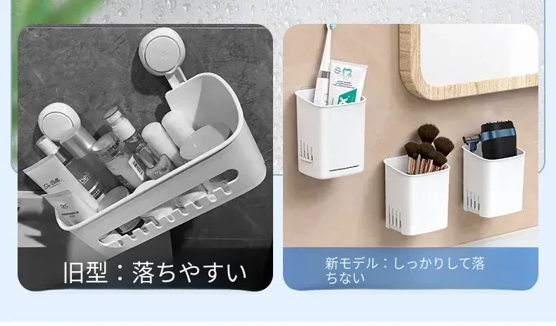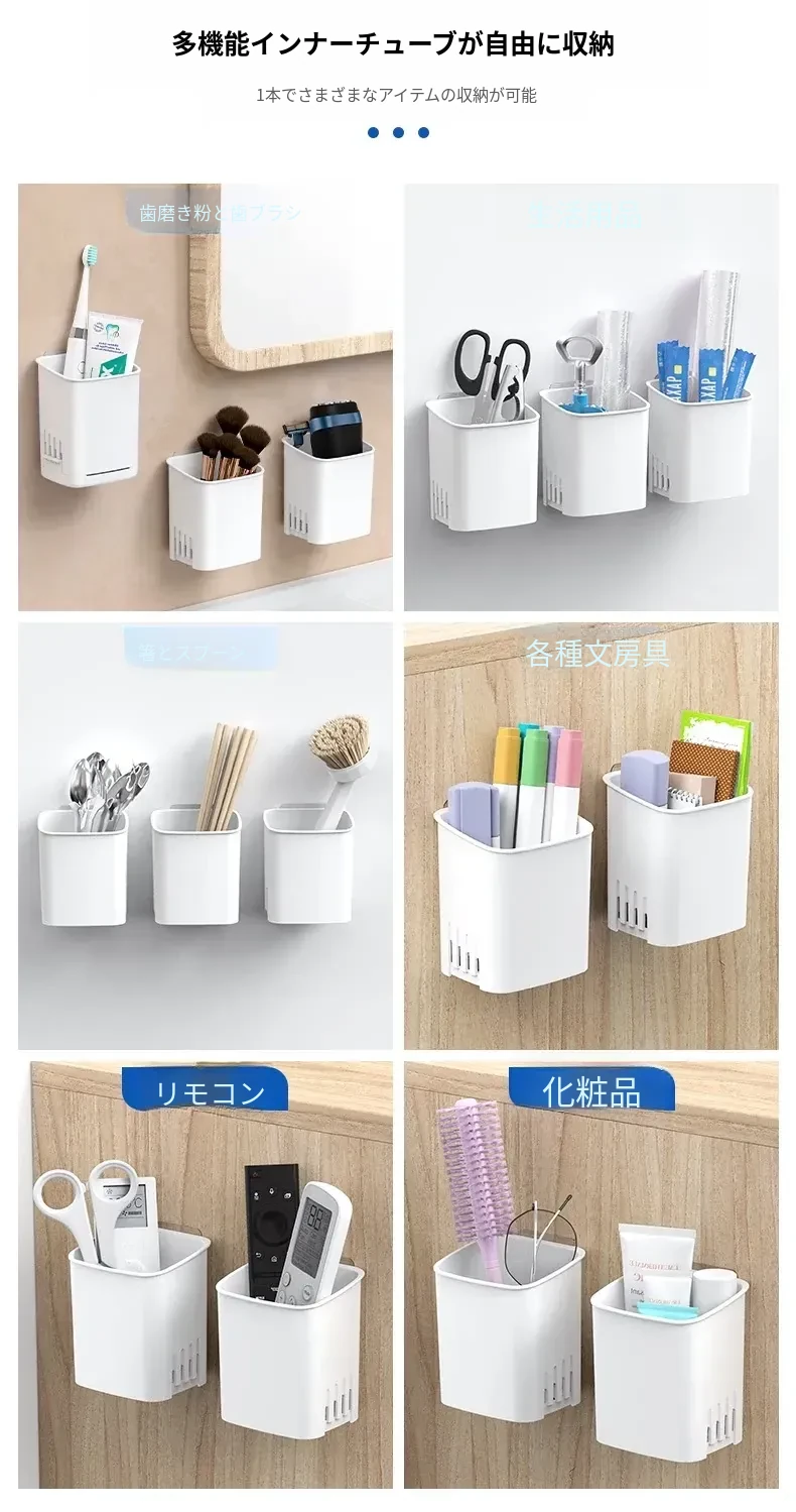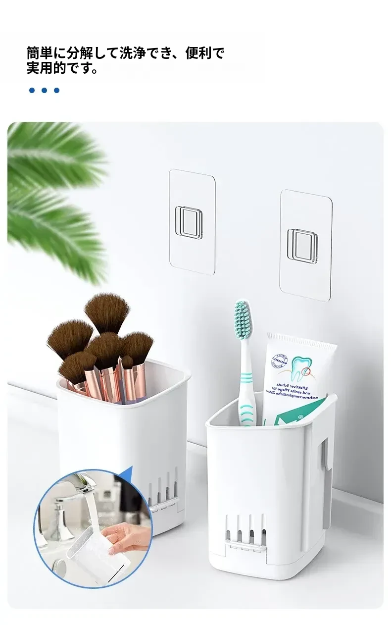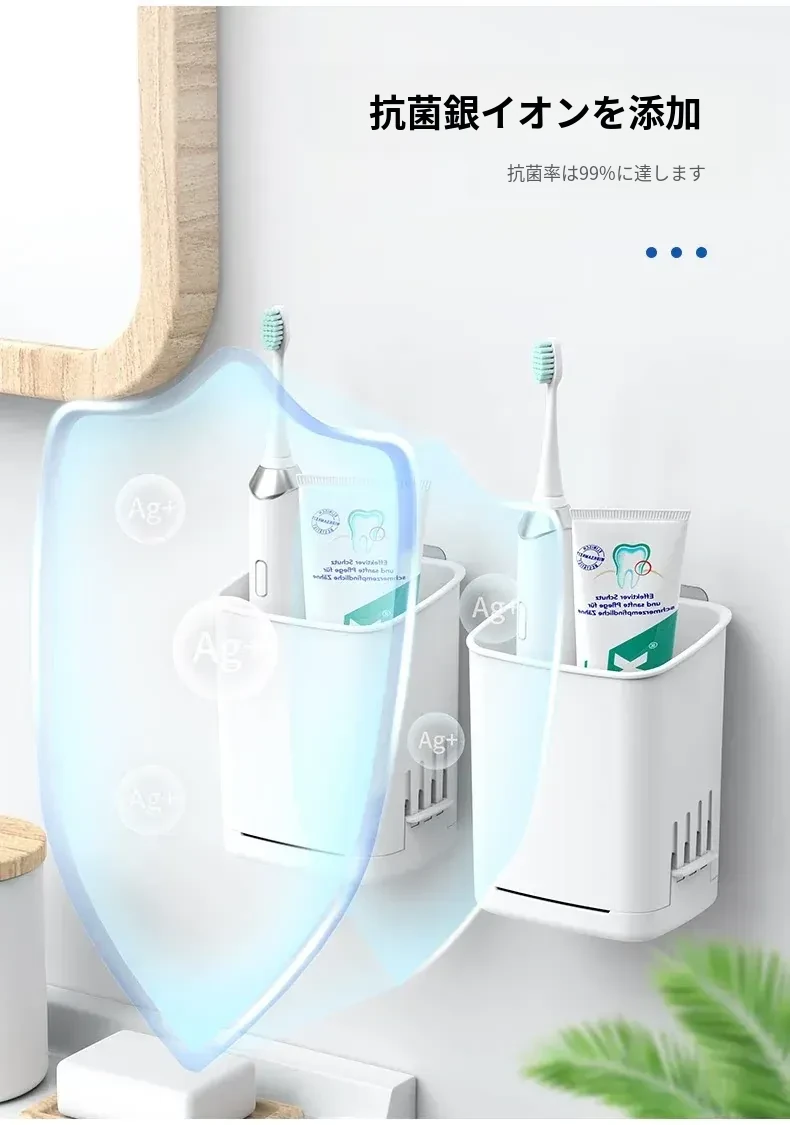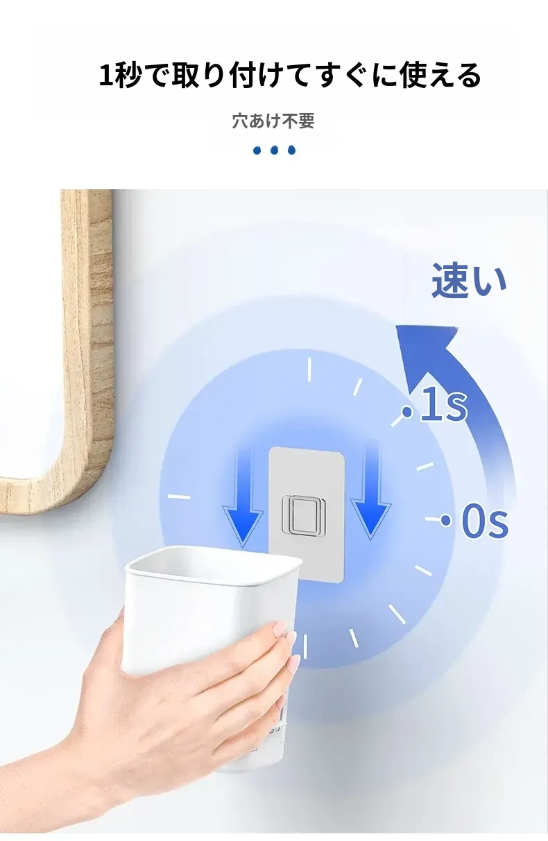 穴あけ不要で簡単取り付け!バスルーム・トイレ用洗面台収納筒 - 歯ブラシ・歯磨き粉・櫛をスッキリ整理!スペースを有効活用できる便利な置物ラックです。