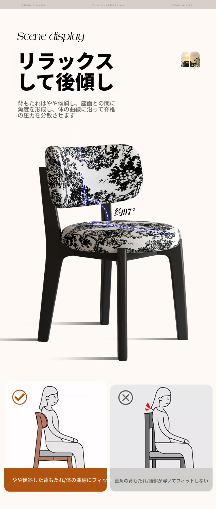北欧デザインの無垢材ダイニングチェア|おしゃれな家庭用・インスタ映えするレストラン向け|モダンでシンプルなイタリアンミニマリズムスタイルのリラックスチェア