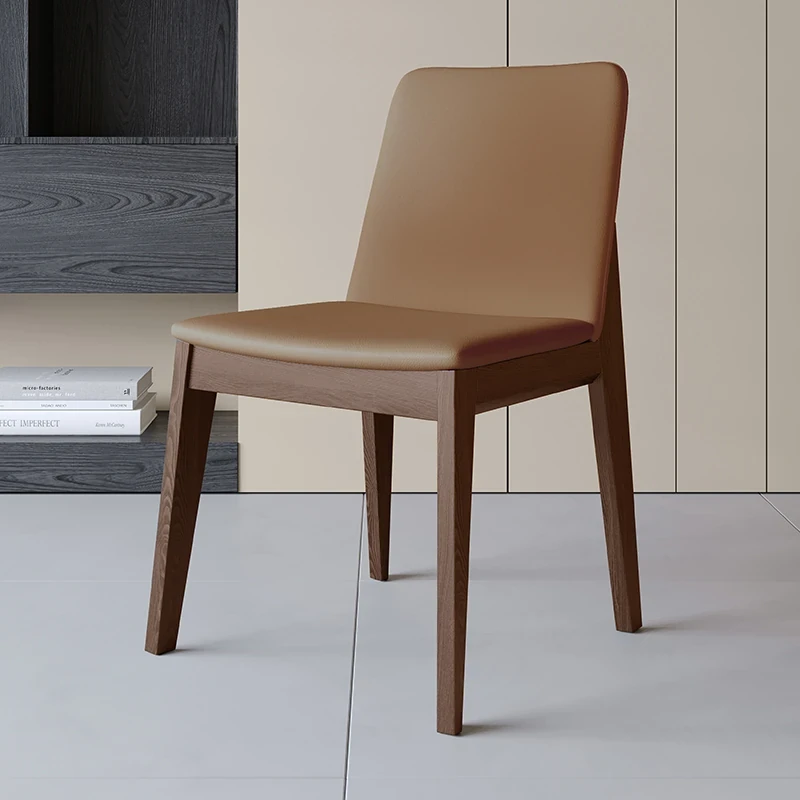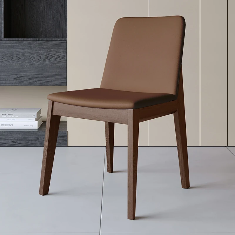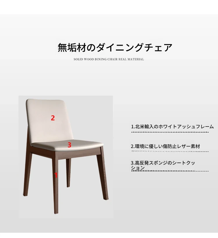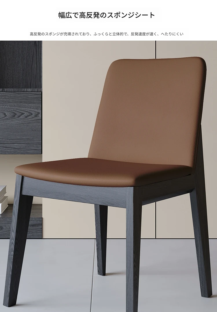 北欧デザインの本革ダイニングチェア|家庭用・カフェ用に最適なシンプルでモダンなスタイル|高級感あふれる実木製、快適な背もたれ付き|おしゃれなレストランやティーショップにぴったり!