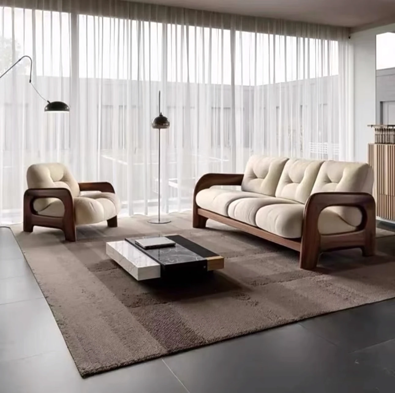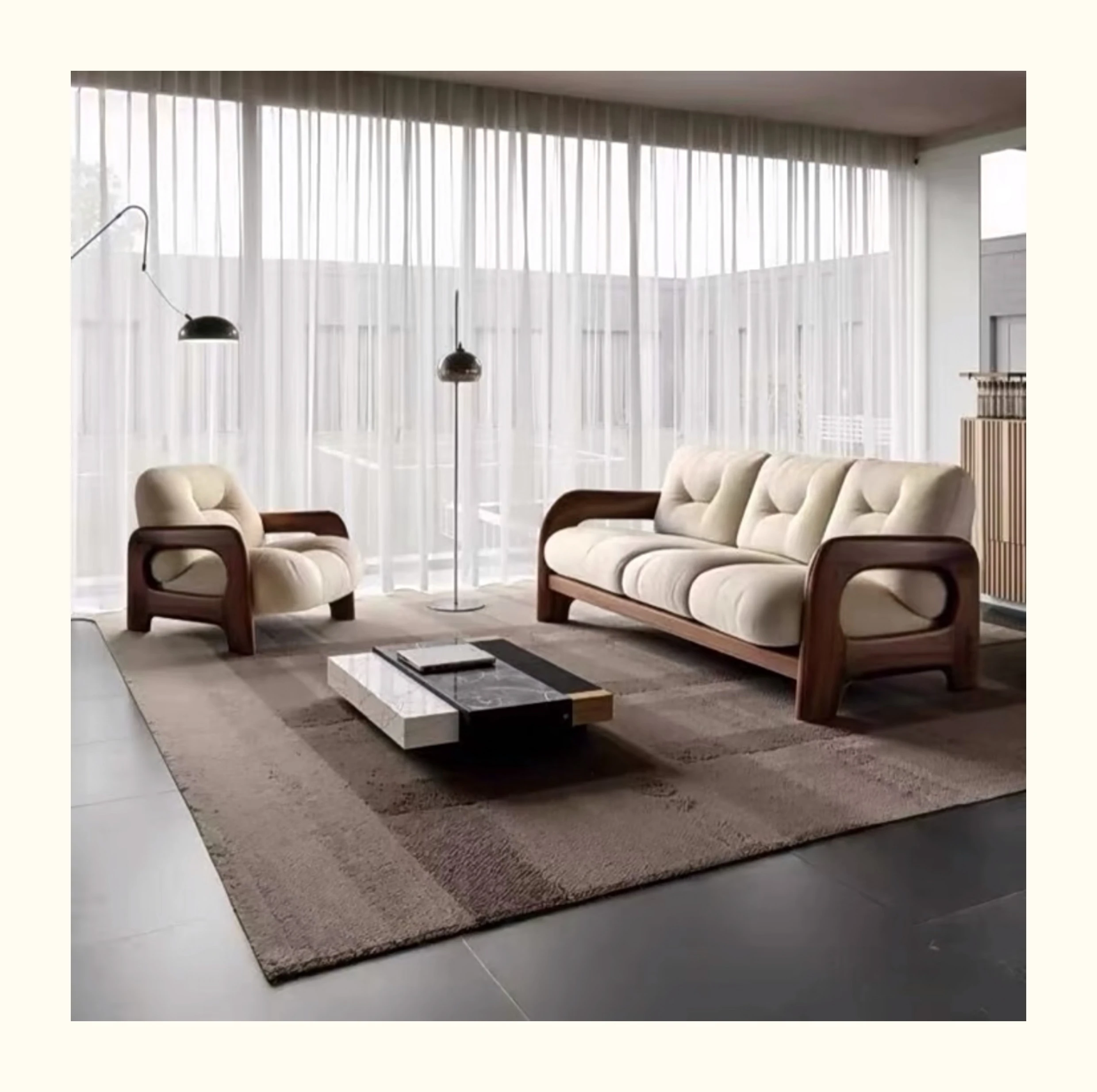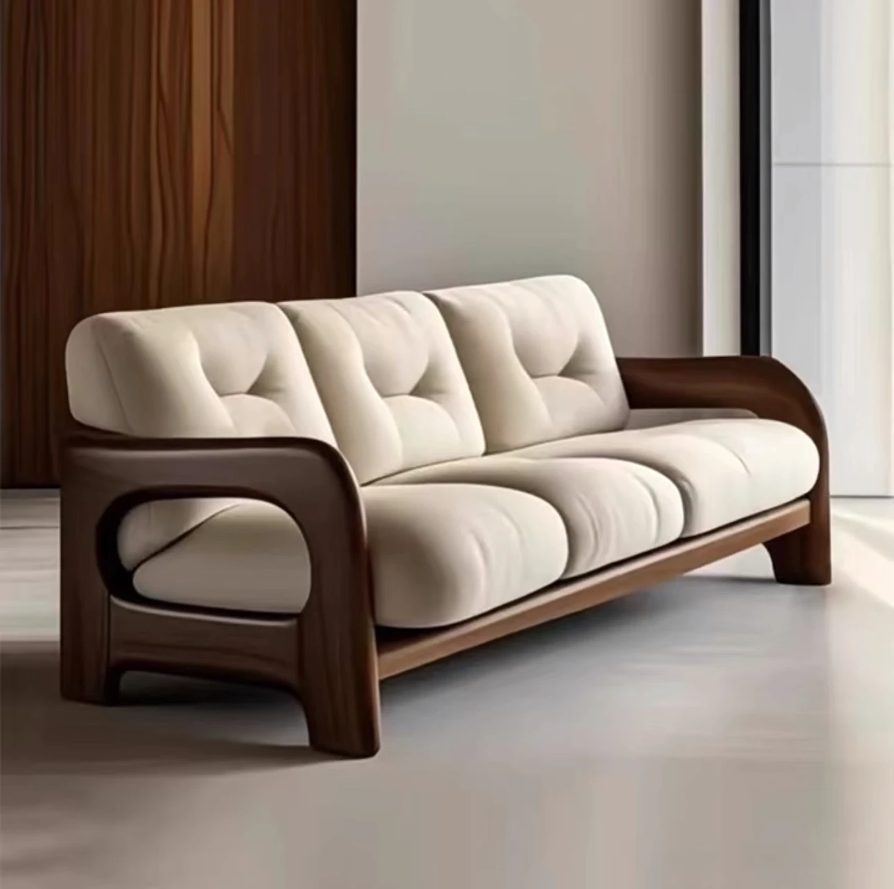 北欧スタイルのシンプルな木製布製ソファ - 新しいデザインの貴婦人ソファ、リビングルームや民宿にぴったりのくつろぎ空間を演出!家庭用接待にも最適です。