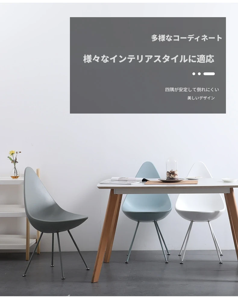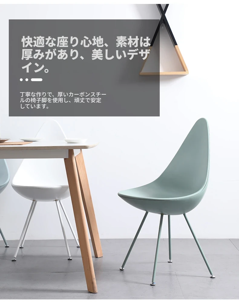 北欧スタイルのプラスチック製ドロップ型ダイニングチェア|デザイナー背もたれ|大人向けの家庭用軽奢椅子|シンプルでおしゃれなミルクティー店やカフェにぴったり!