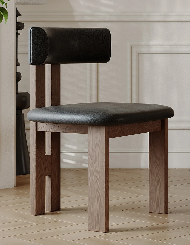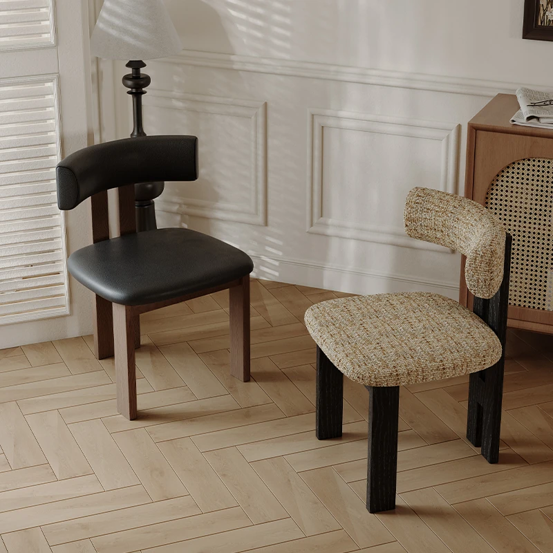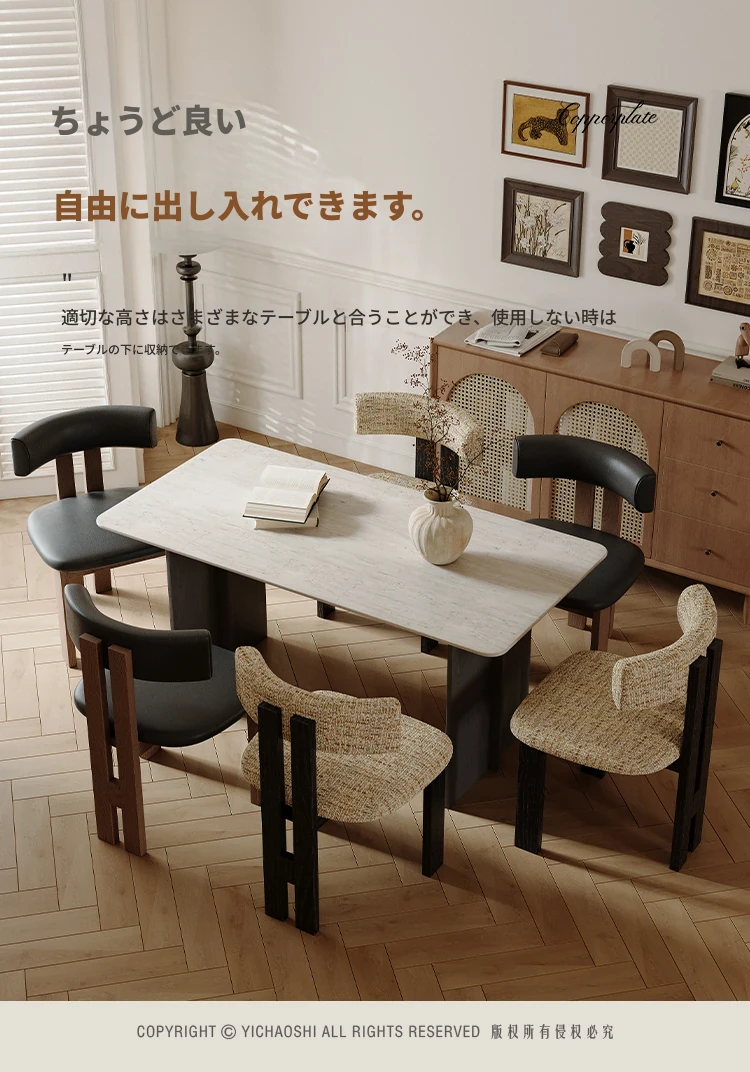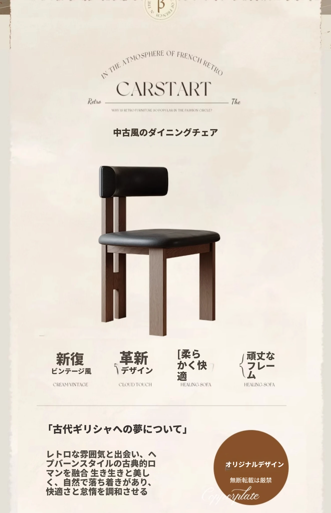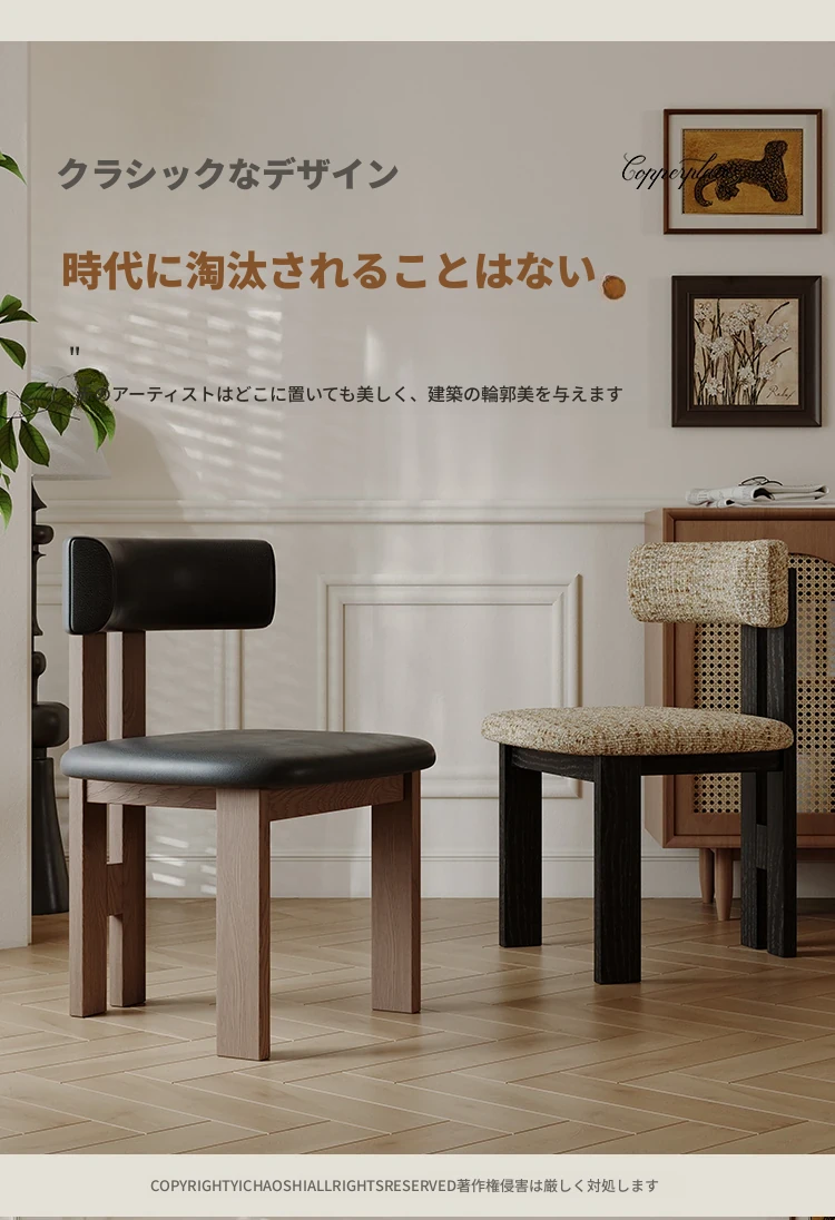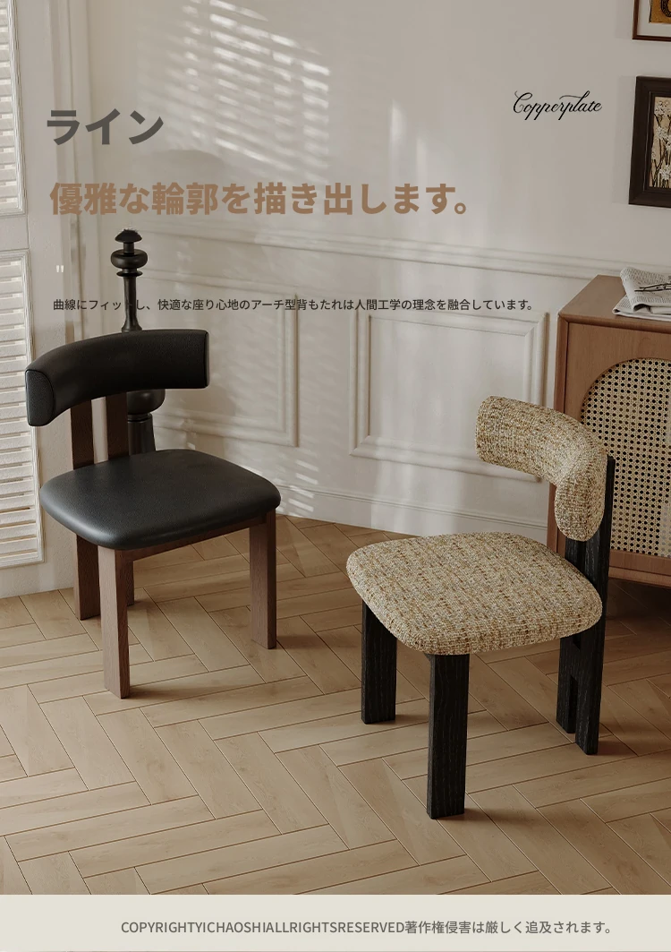 北欧スタイルの無垢材ダイニングチェア|デザイナーのこだわりで、ヴィンテージオークの華やかな背もたれが魅力!おしゃれなレトロ感と高級感を兼ね備えた、食卓にぴったりの一品です。