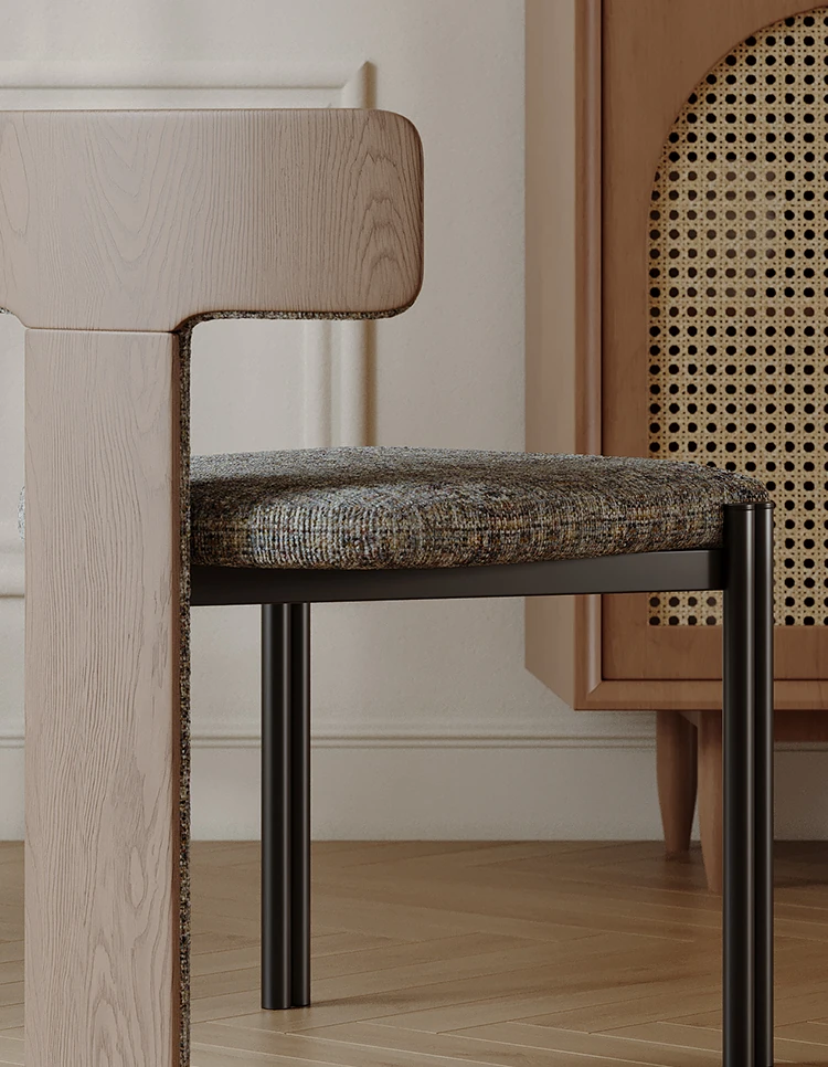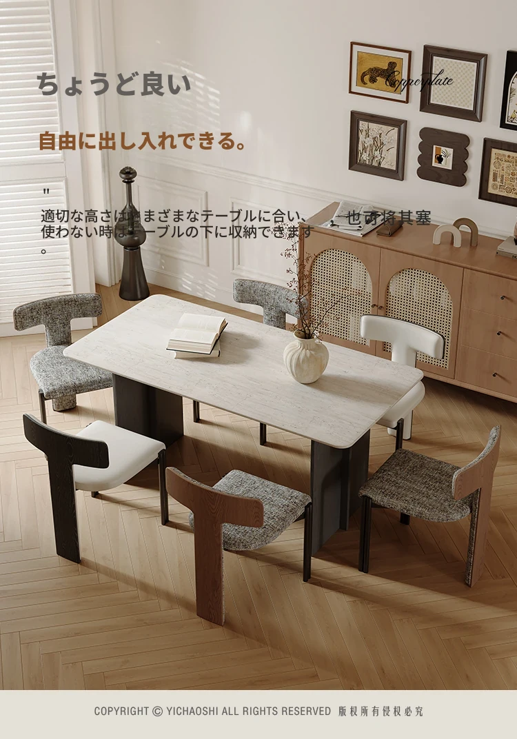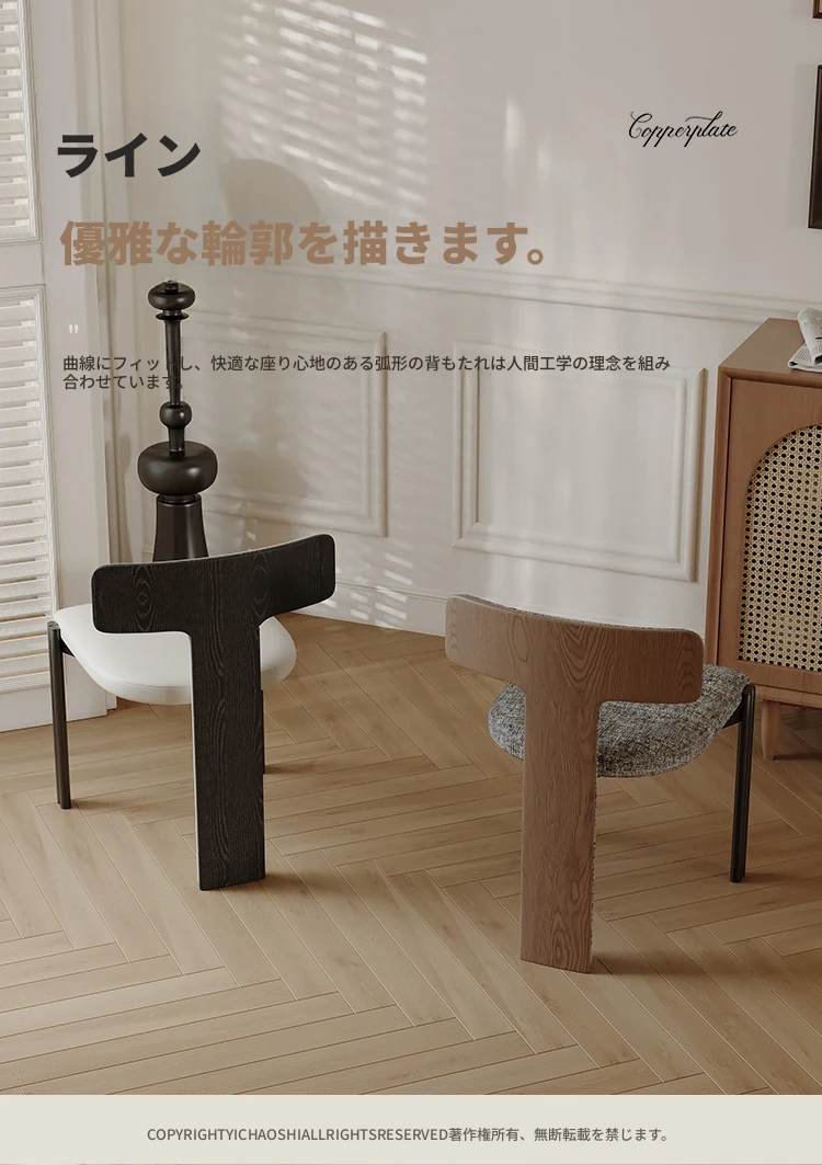 北欧スタイルの無垢材ダイニングチェア|ホテルデザインの高級感溢れる椅子|ミニマリスト向けモデルルームにぴったり|アーチ型のホワイトアッシュ材と高級本革使用!