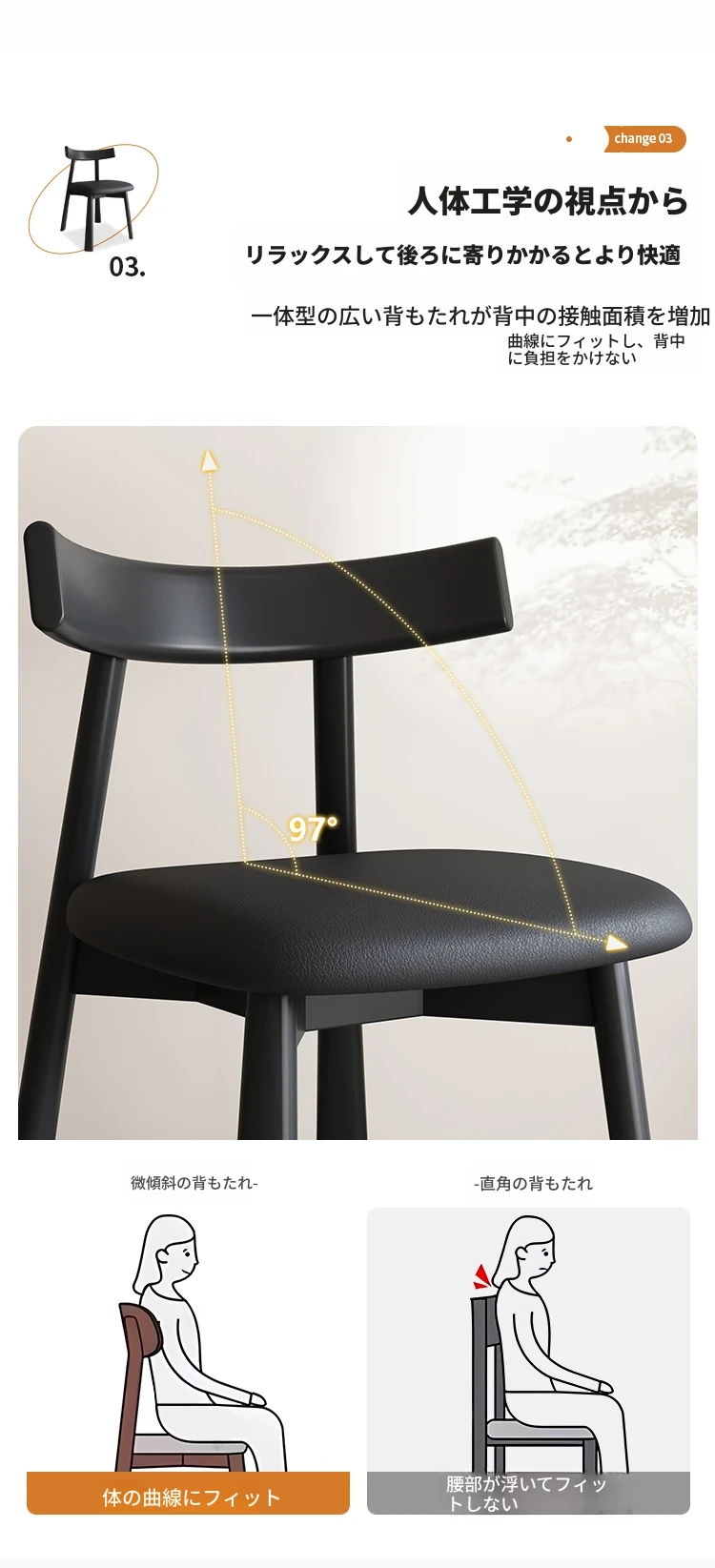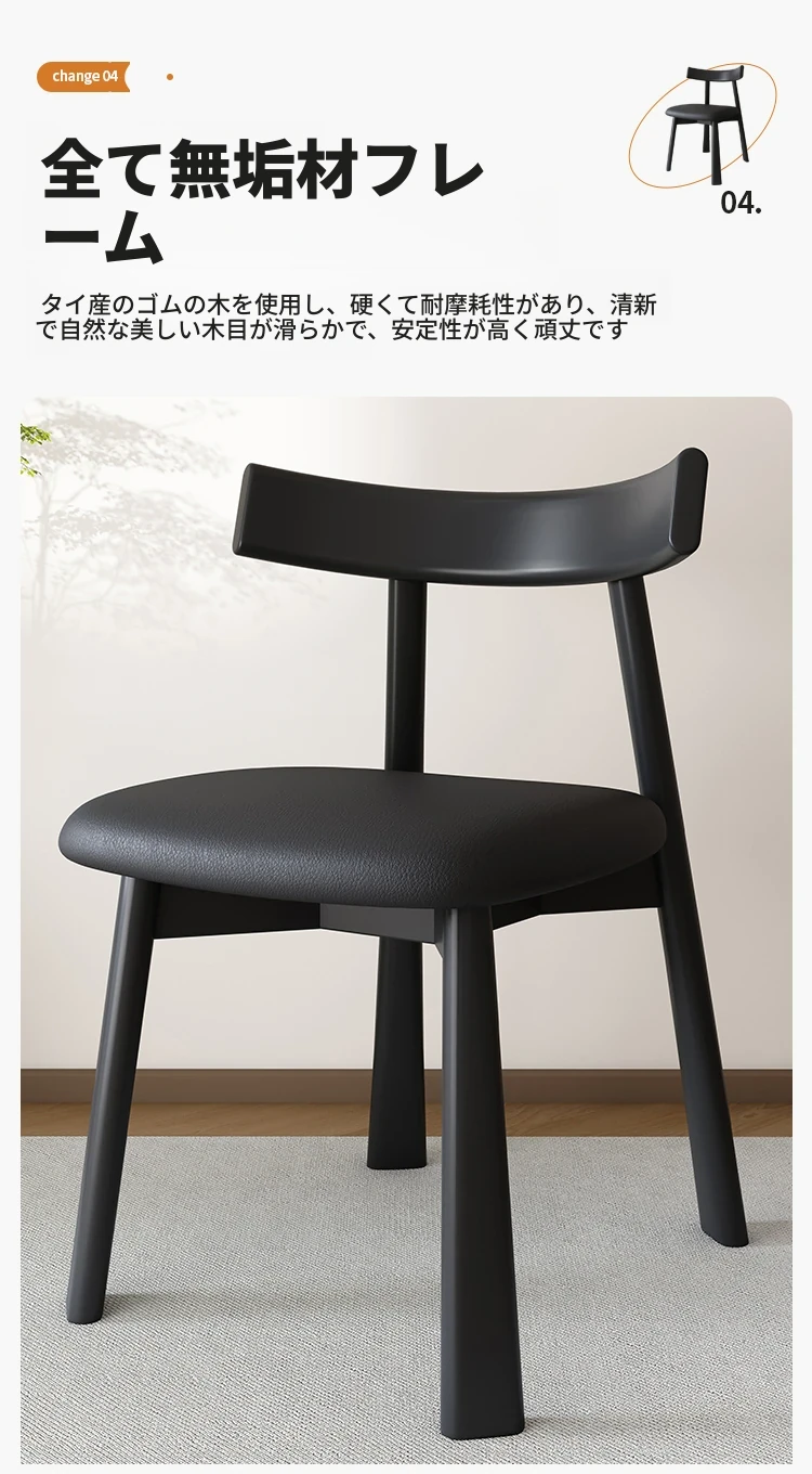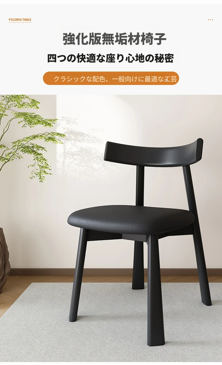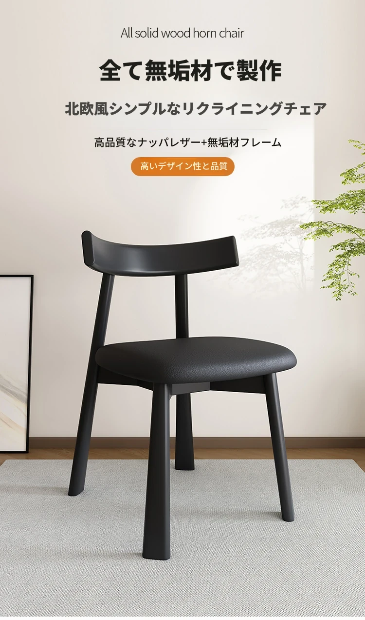 北欧スタイルの無垢材ダイニングチェア|シンプルで洗練されたデザイン|イタリアンミニマリズムが魅力|黒色の家庭用背もたれチェア|おしゃれな中古デザイナーズ家具で食卓を彩る!