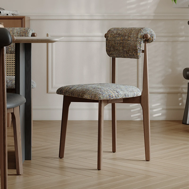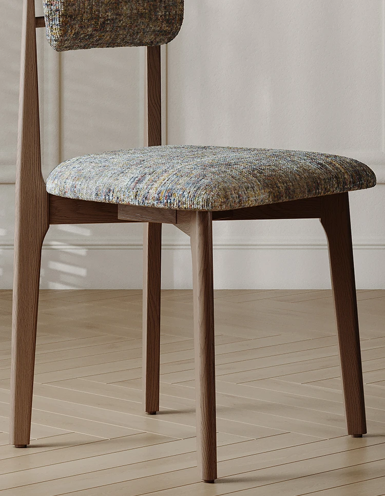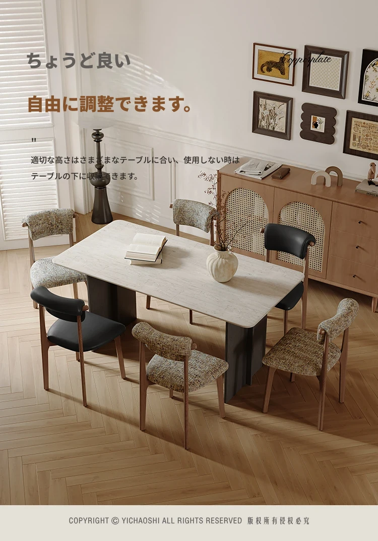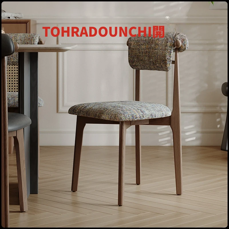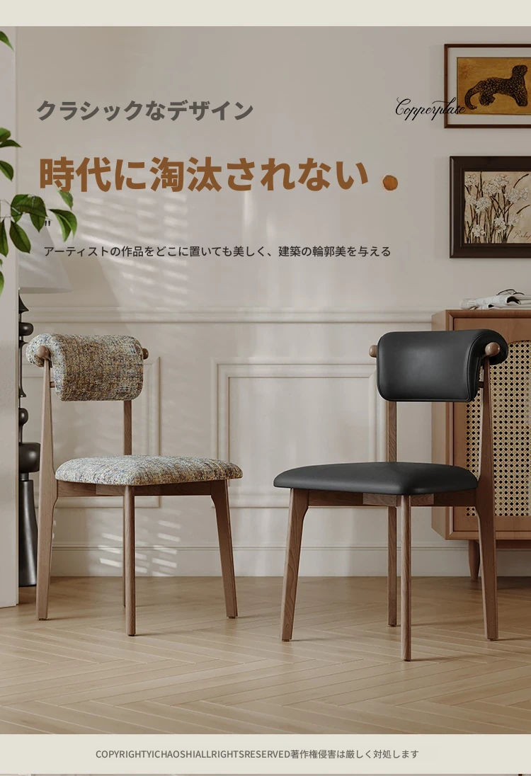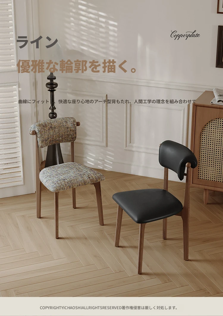 北欧スタイルの無垢材ダイニングチェア - シンプルでモダンな侘び寂びデザイン、天然木のクリームカラーと美しいテクスチャーが魅力の椅子。おしゃれな食卓を演出し、心地よいひとときを提供します。