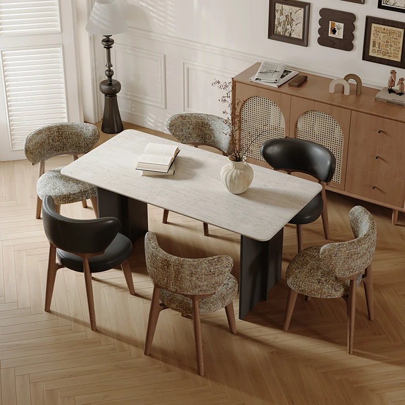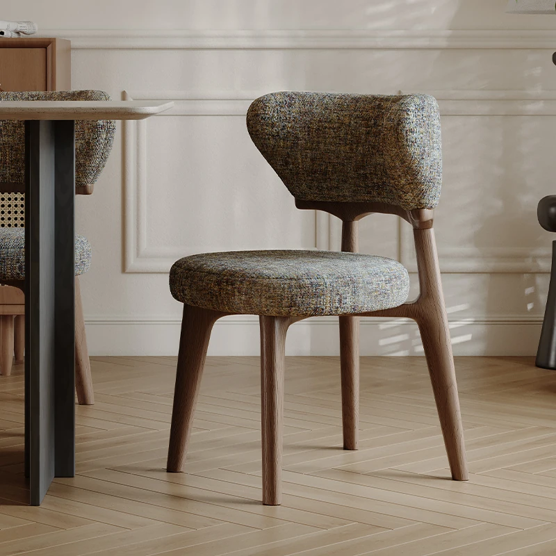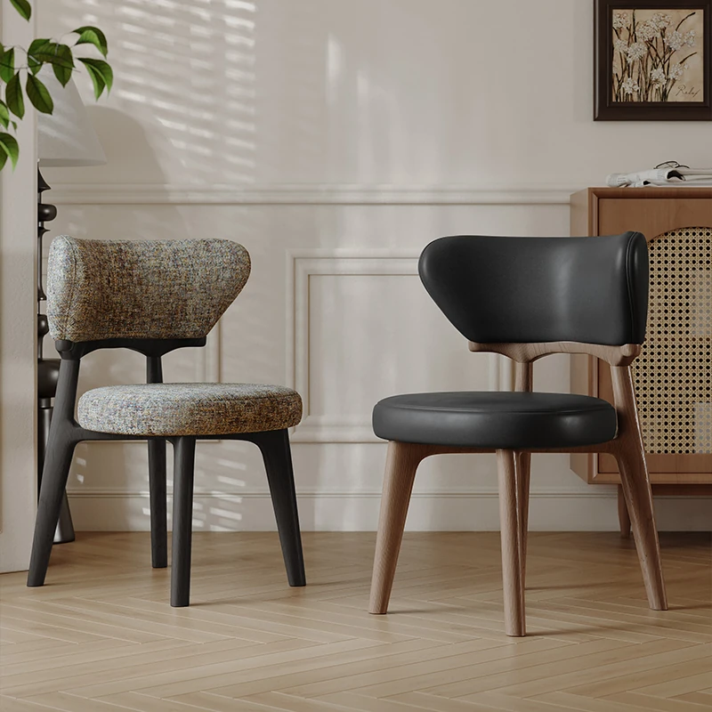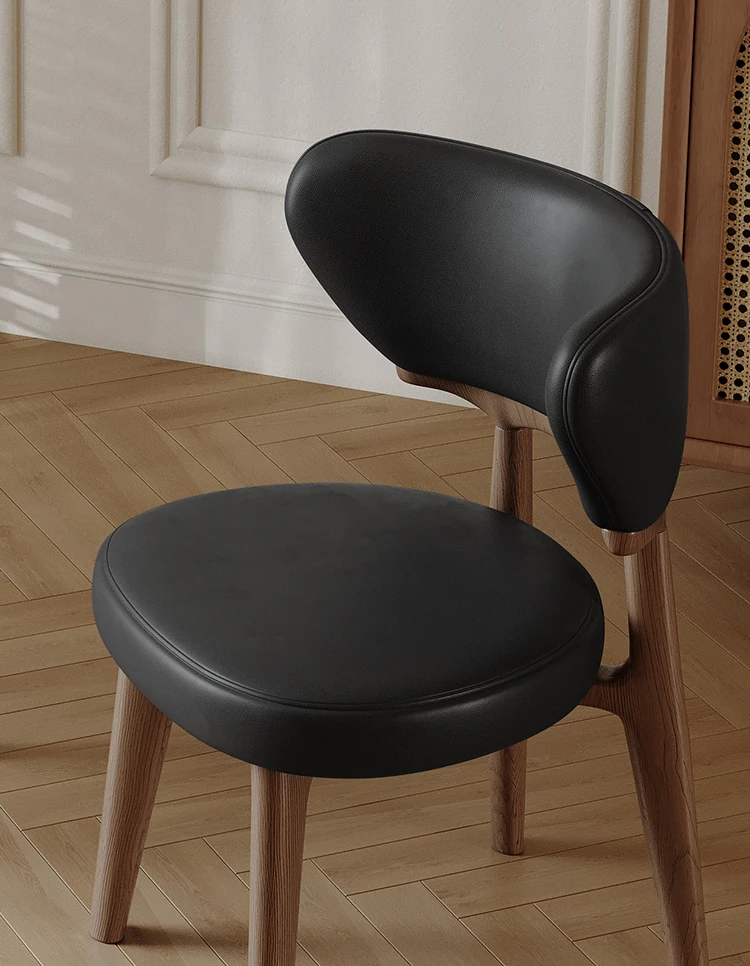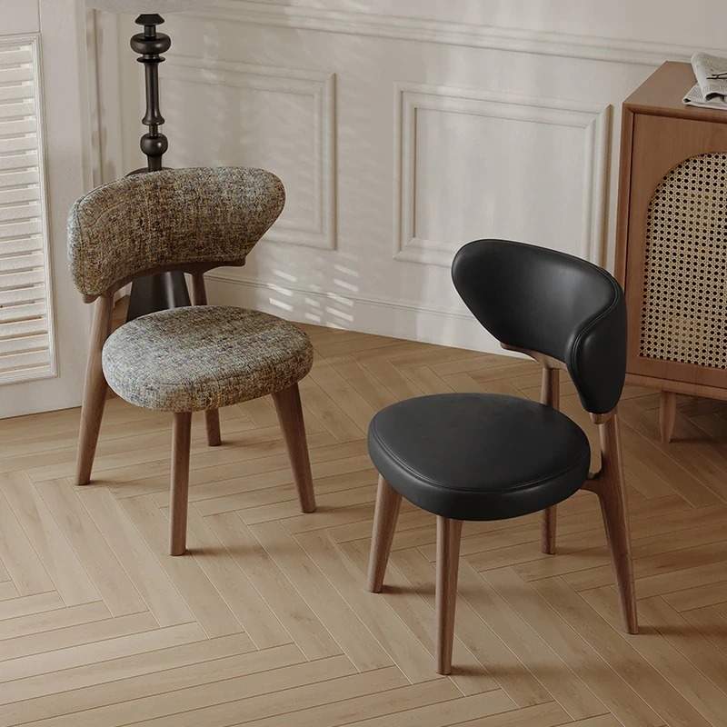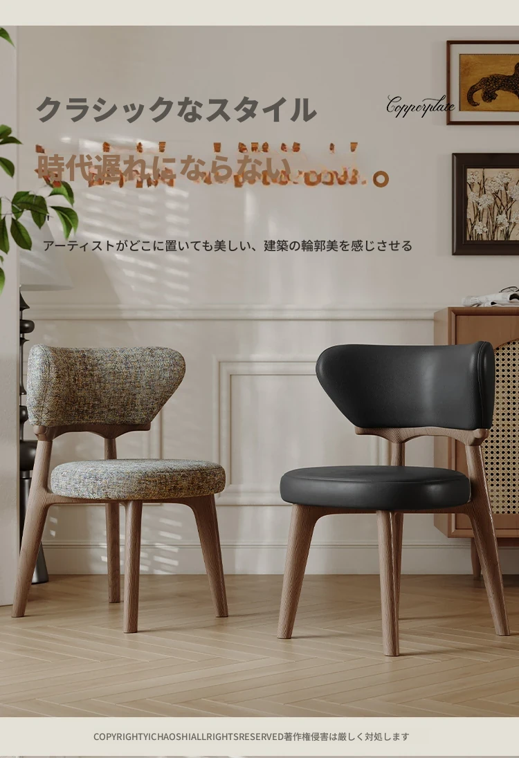 北欧スタイルの高級感あふれる無垢材ダイニングチェア - デザイナーによる本革仕上げ、ヴィンテージクリーム風のリラックス背もたれ付きスツール。家庭用にもホテル用にも最適な一品!