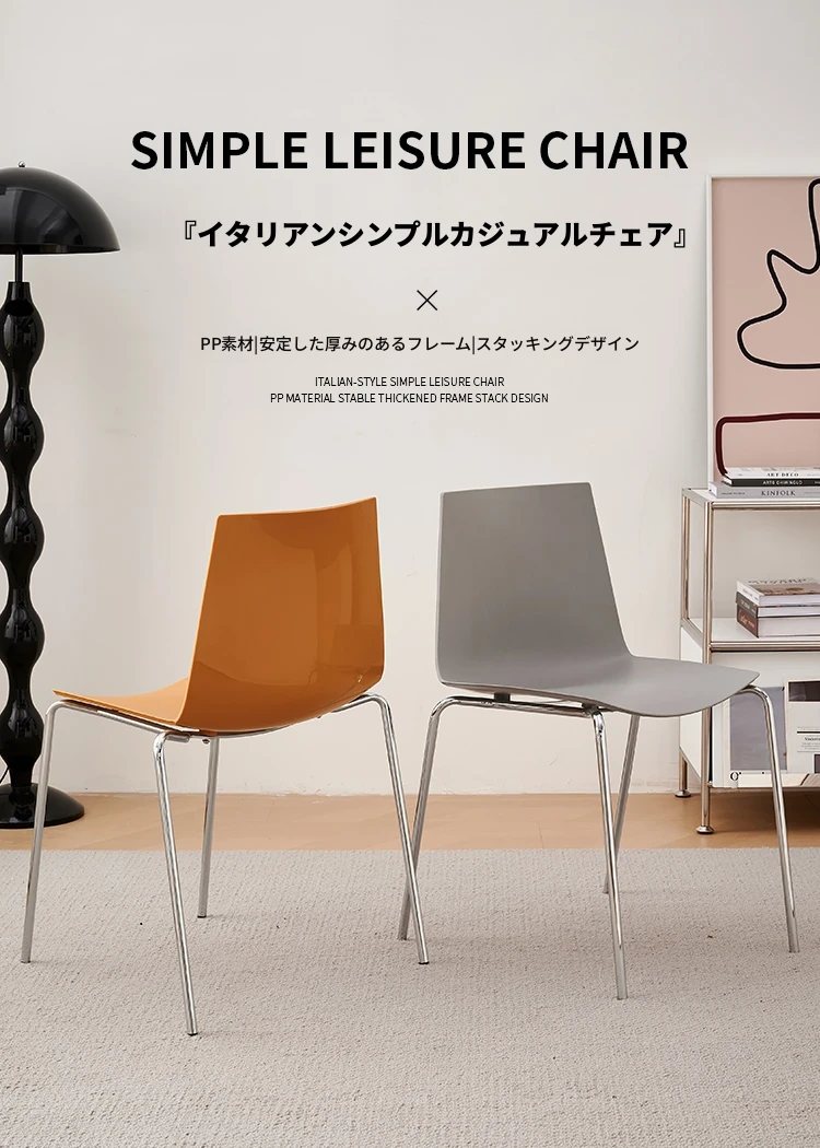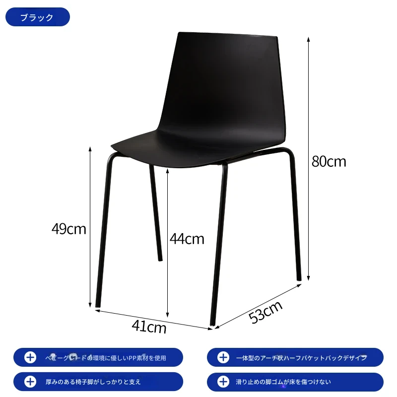 北欧スタイルのスタッキングチェア|背もたれ付き|軽やかで高級感あふれるデザイン|家庭用・オフィス用に最適|シンプルで厚手のプラスチック製|創造的なトレーニングやミーティングにぴったり!