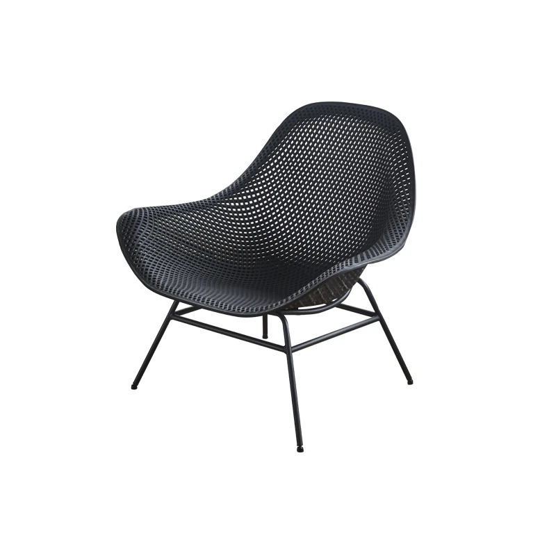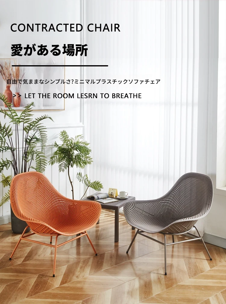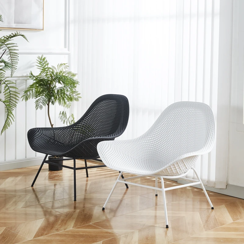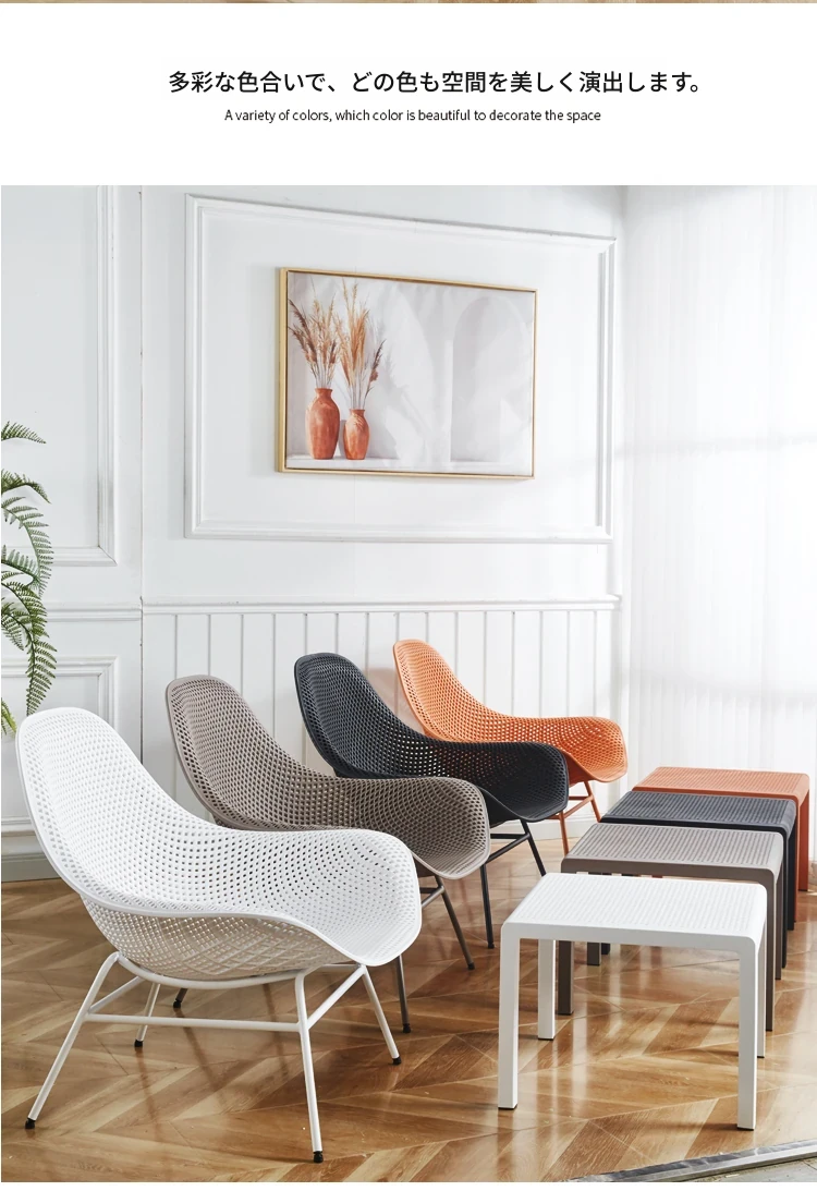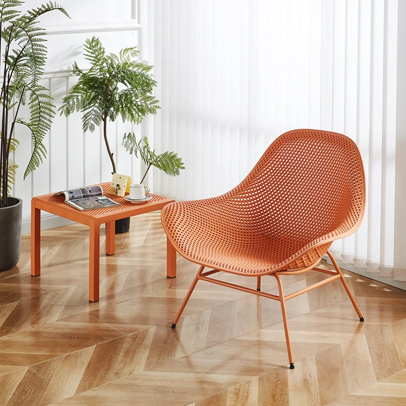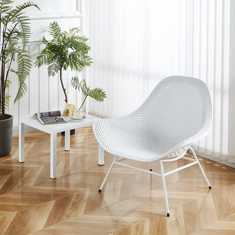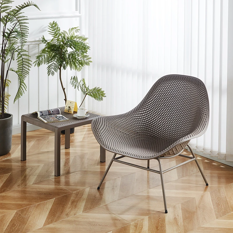 北欧風シンプルモダンなカフェ用リクライニングチェア - おしゃれな透かしデザイン、快適な座り心地で、リラックスできるひとときを提供します。シングルソファとしても最適、会話を楽しむのにぴったりな一脚です。