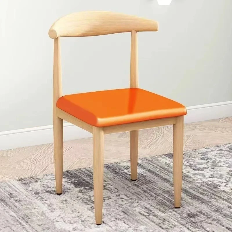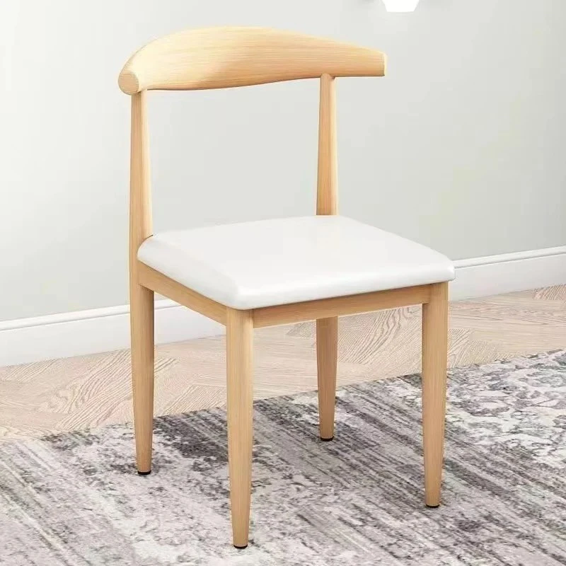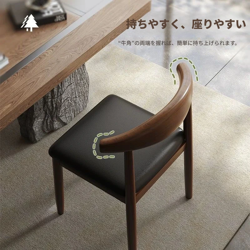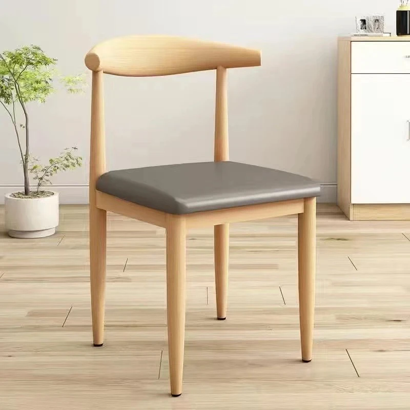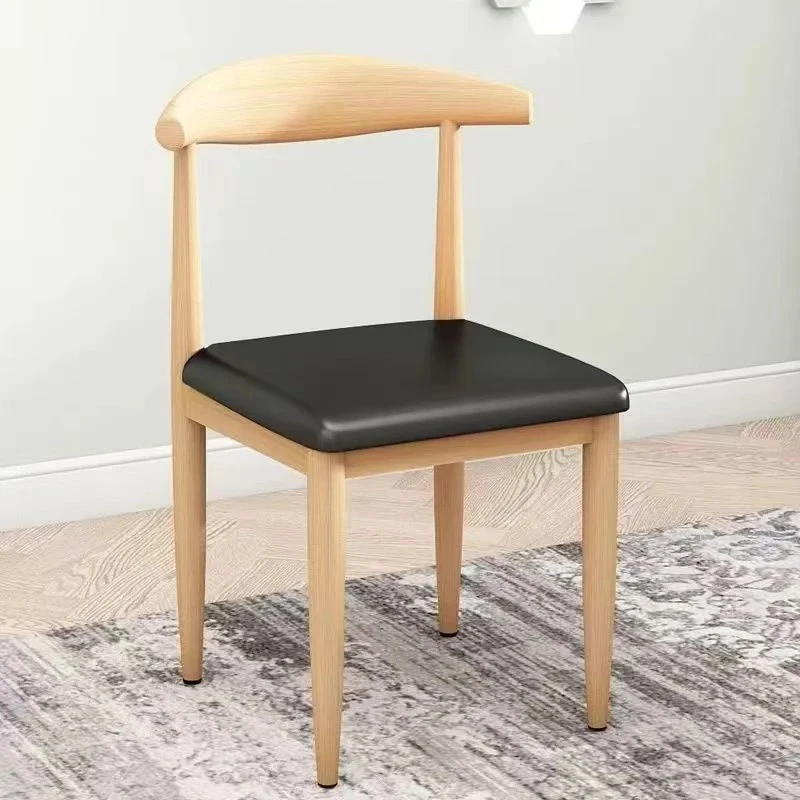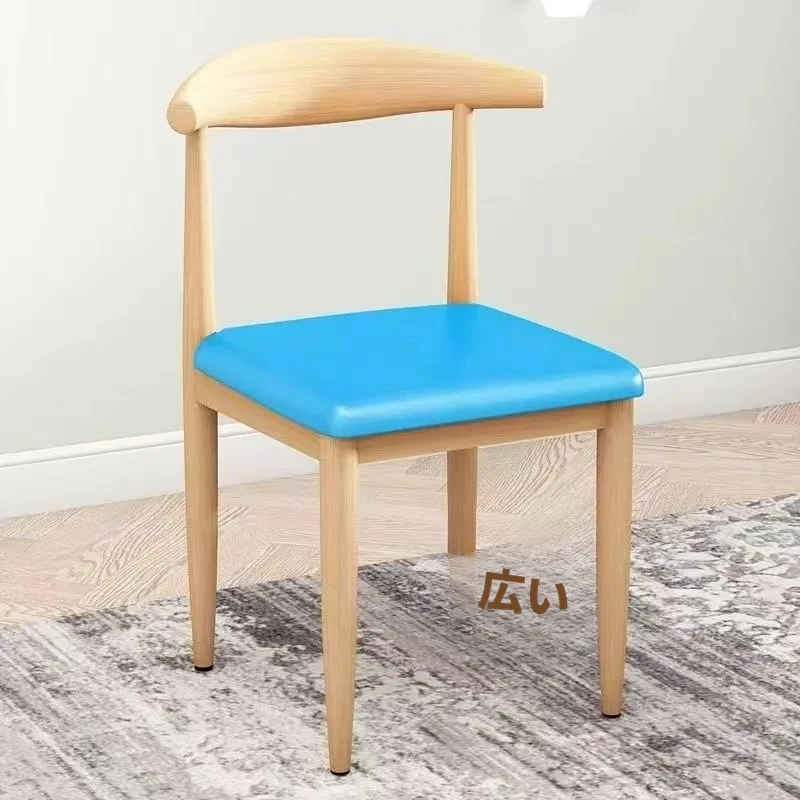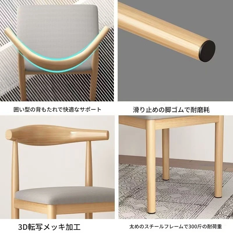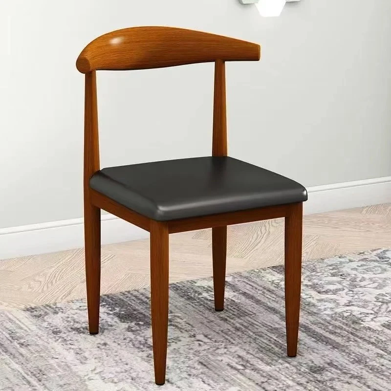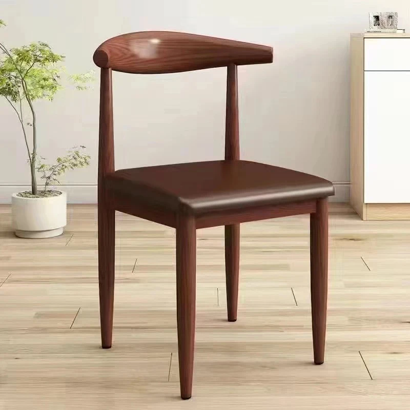 北欧風モダンデザインのダイニングチェア|シンプルでおしゃれな家庭用リラックスデスクチェア|背もたれ付き|木目調アイアン製|優雅なカウホーンチェア