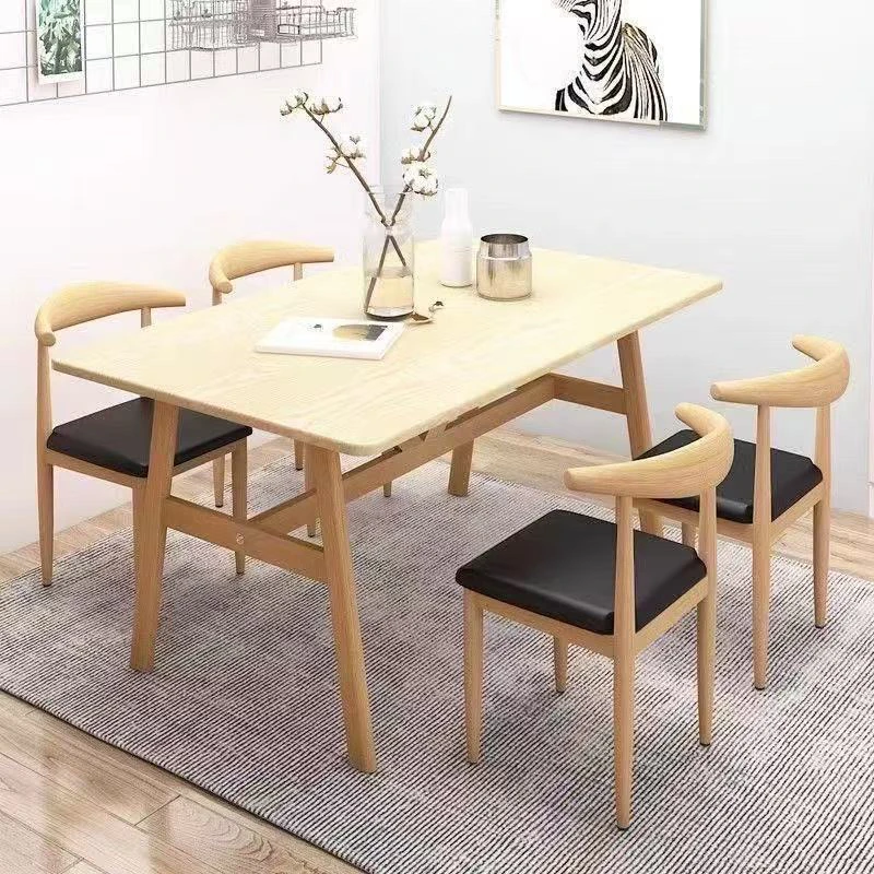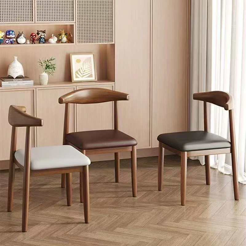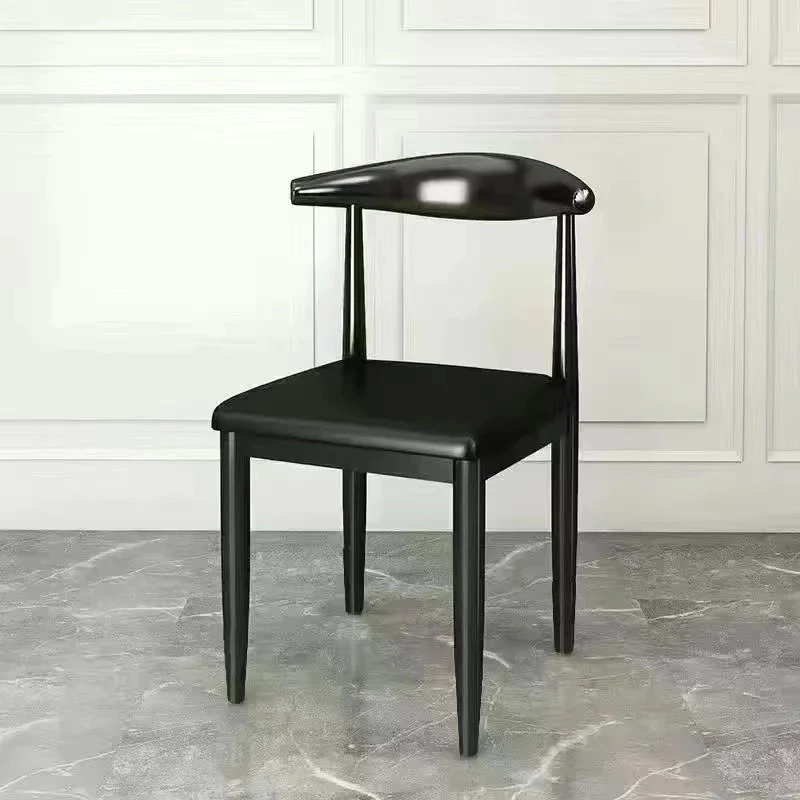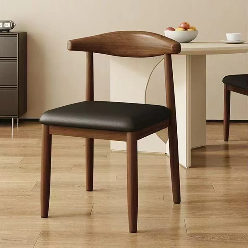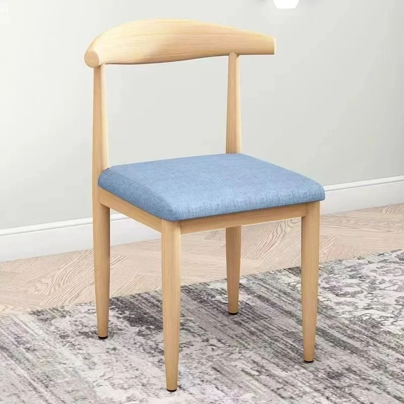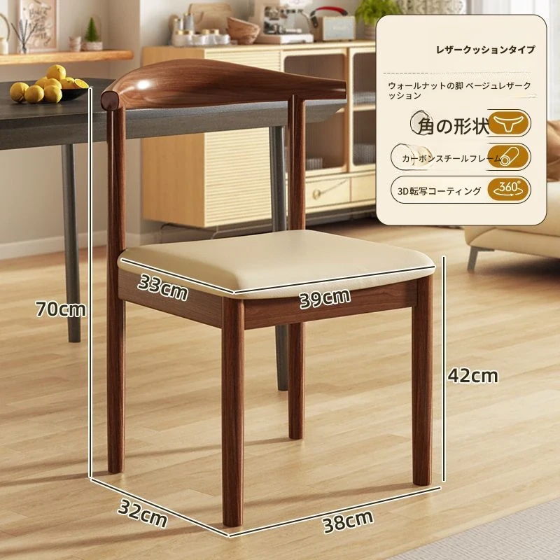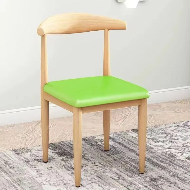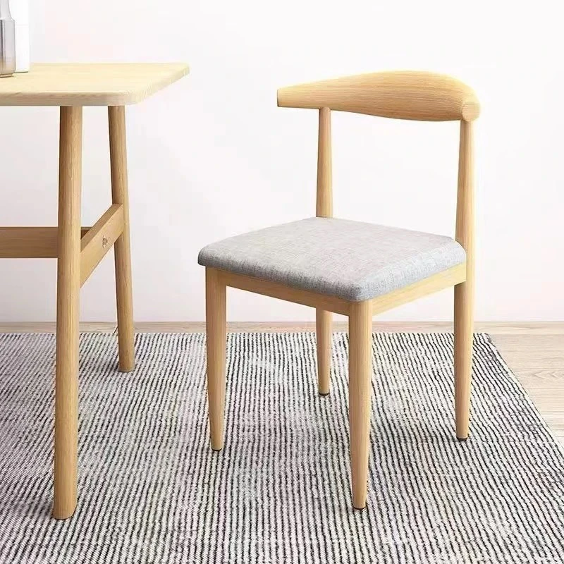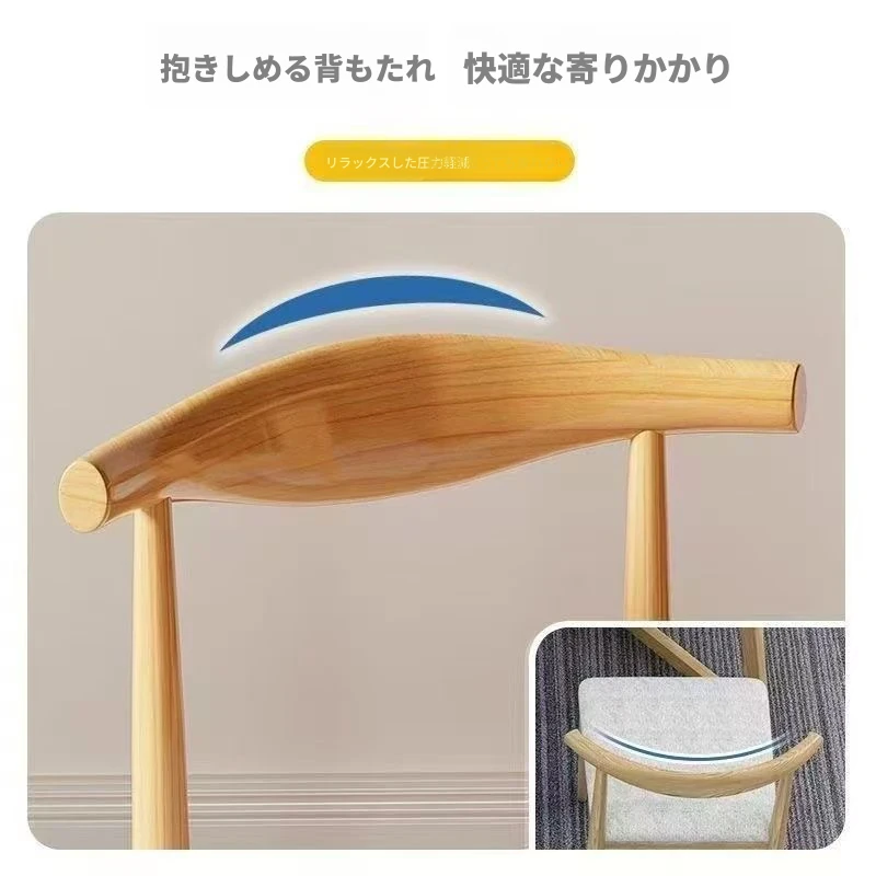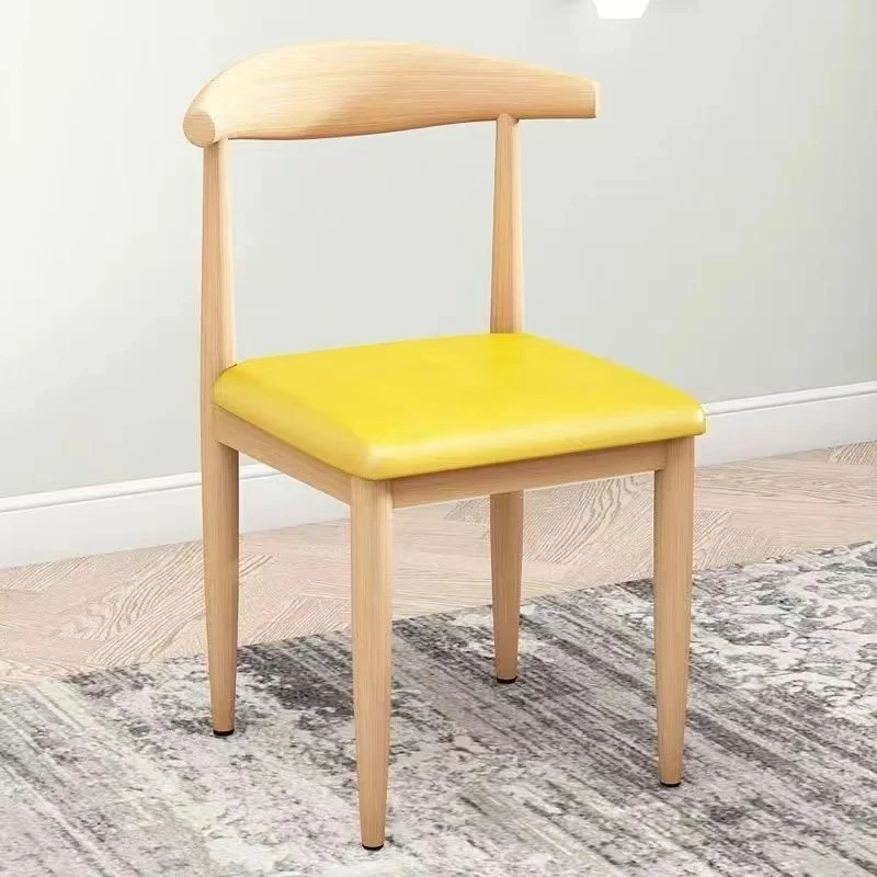 北欧風モダンデザインのダイニングチェア|シンプルでおしゃれな家庭用リラックスデスクチェア|背もたれ付き|木目調アイアン製|優雅なカウホーンチェア