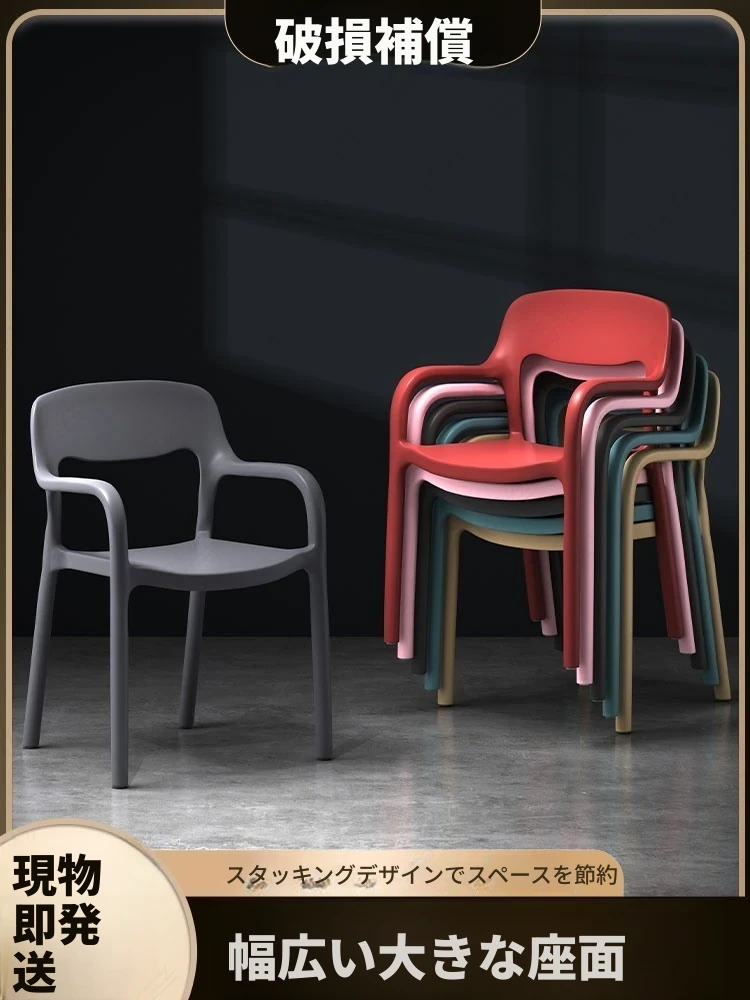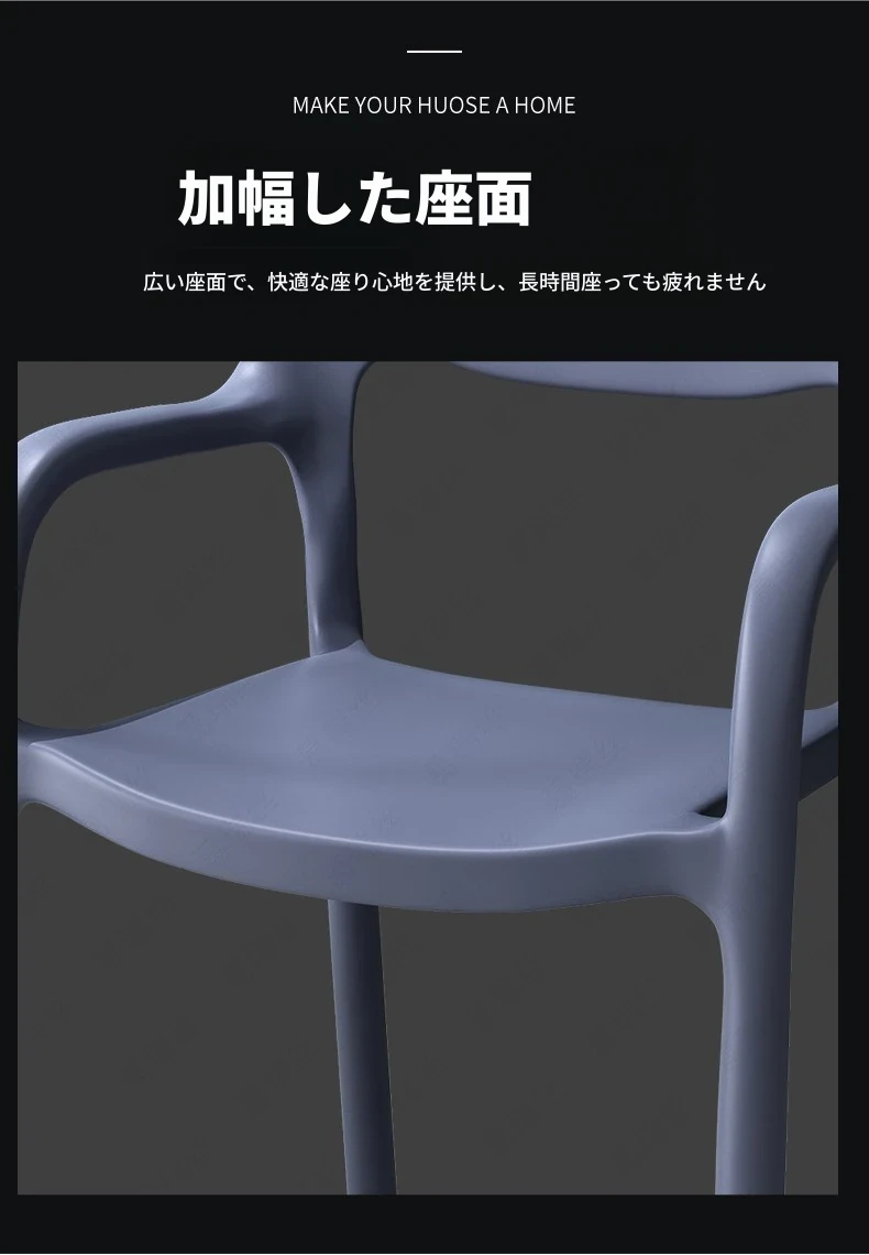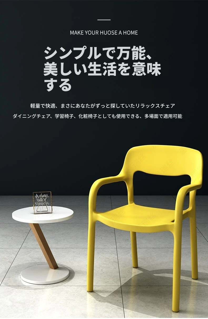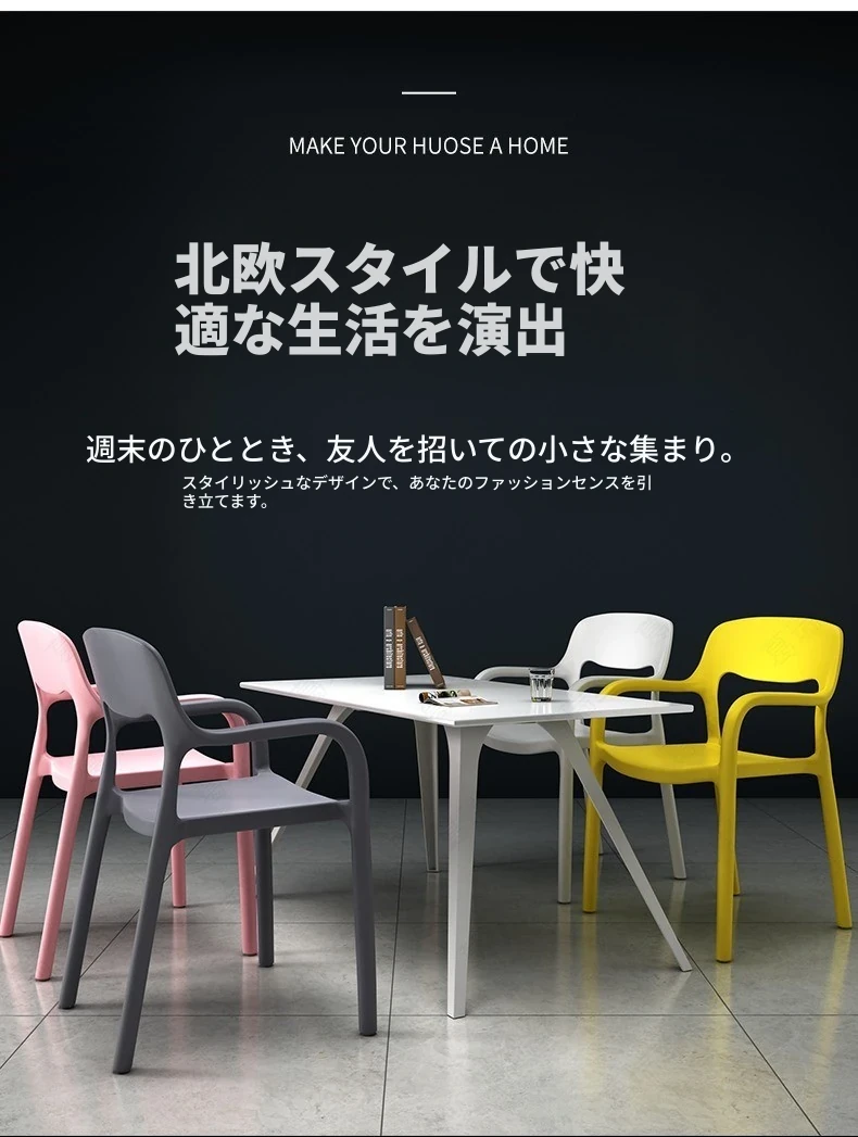 シンプルなデザインのプラスチック製チェア - 北欧スタイルのダイニングチェア!大人向けのエコノミータイプ、厚手のアームチェアで快適さを追求。家庭での使用に最適、スタイリッシュで機能的な一脚!