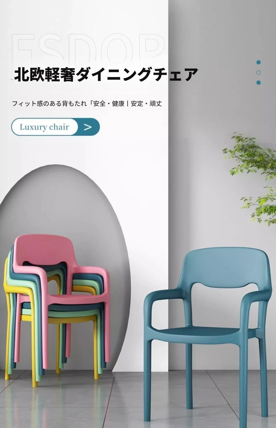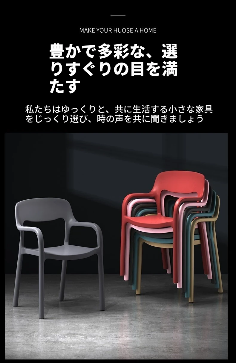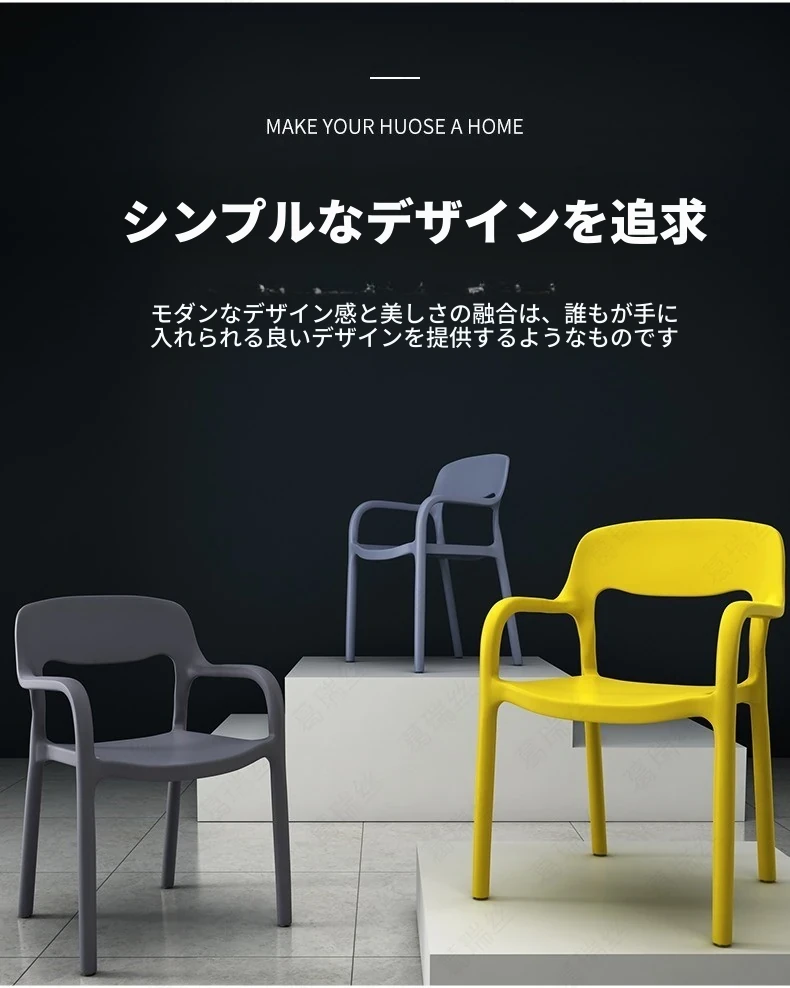 シンプルなデザインのプラスチック製チェア - 北欧スタイルのダイニングチェア!大人向けのエコノミータイプ、厚手のアームチェアで快適さを追求。家庭での使用に最適、スタイリッシュで機能的な一脚!