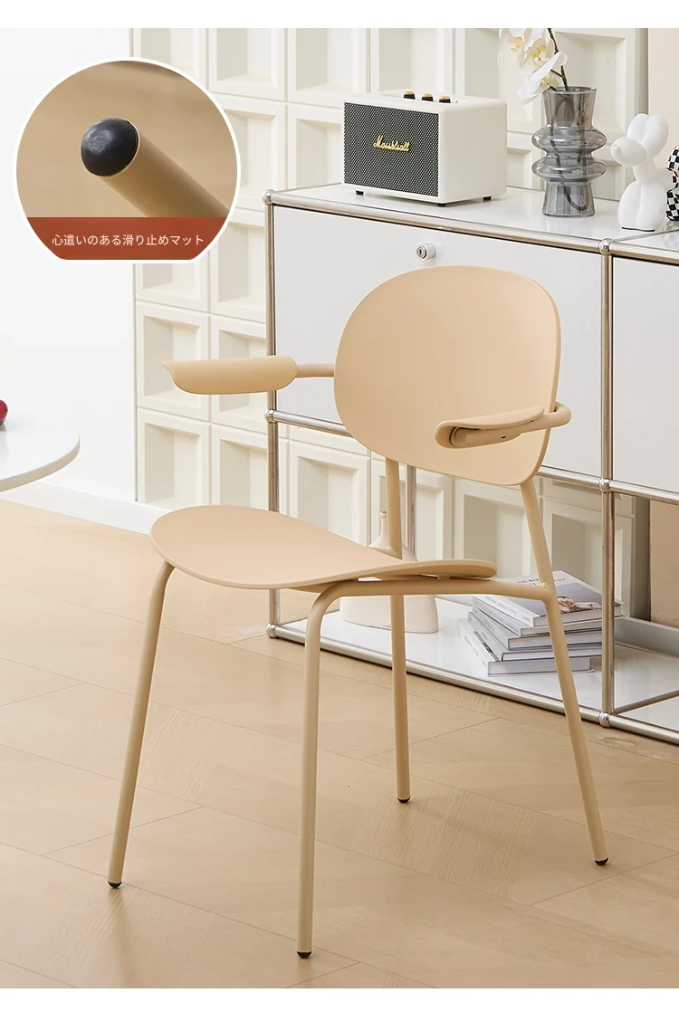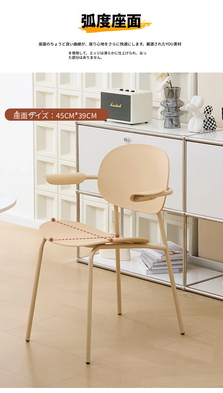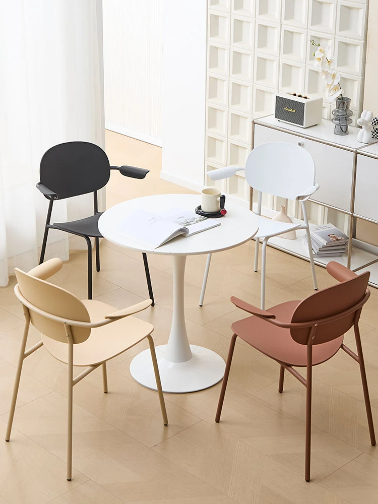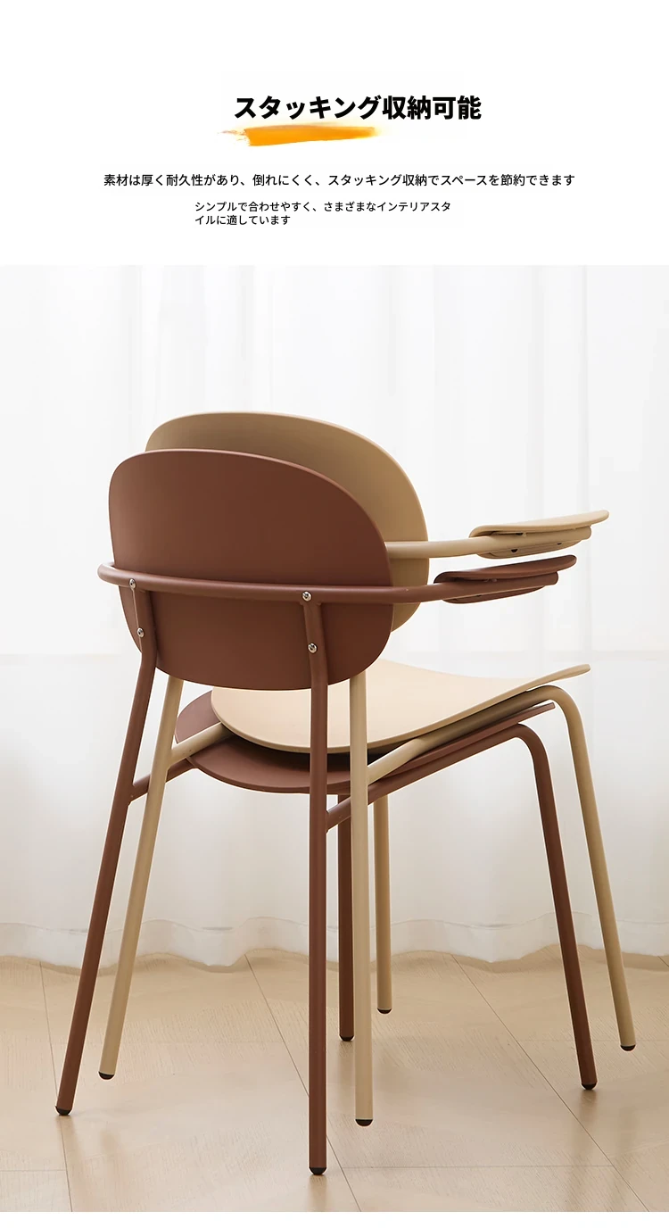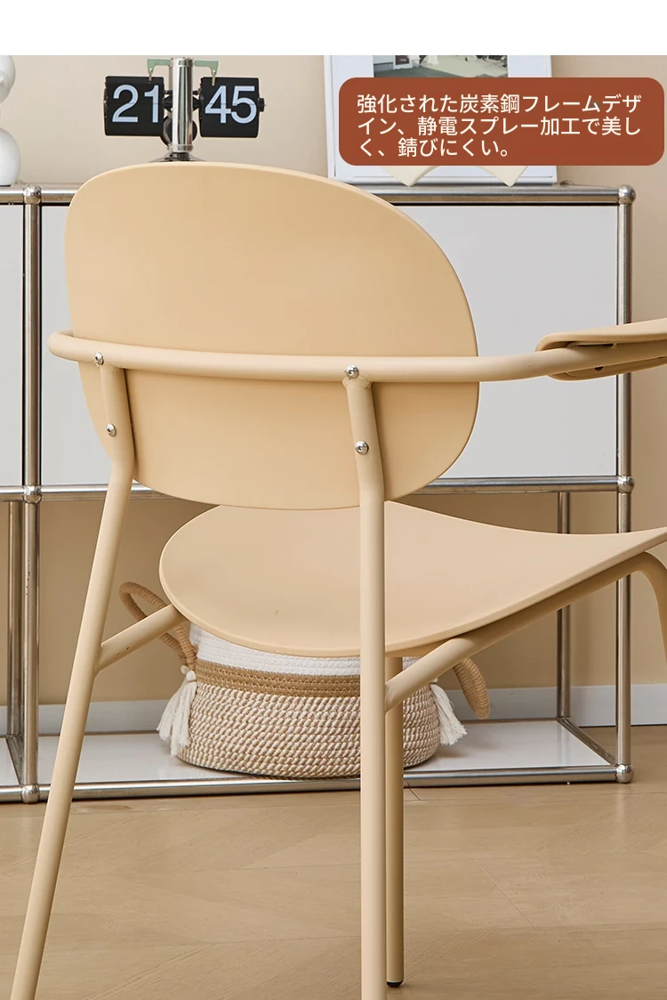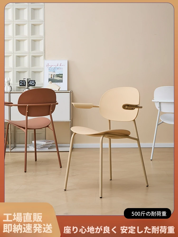 北欧風デザインのスタッキング可能なプラスチック製ダイニングチェア - 小スペースでも使いやすい、リラックスできるバルコニーやカフェに最適な現代的なシンプルスタイルの椅子!