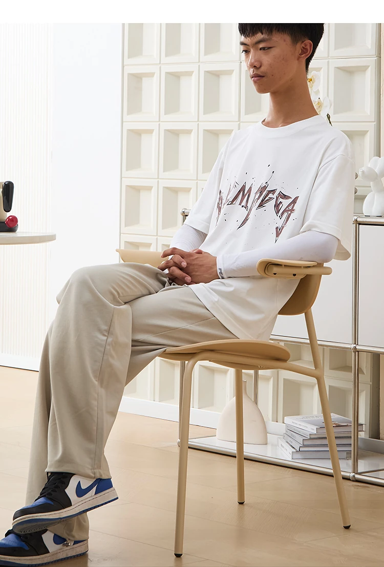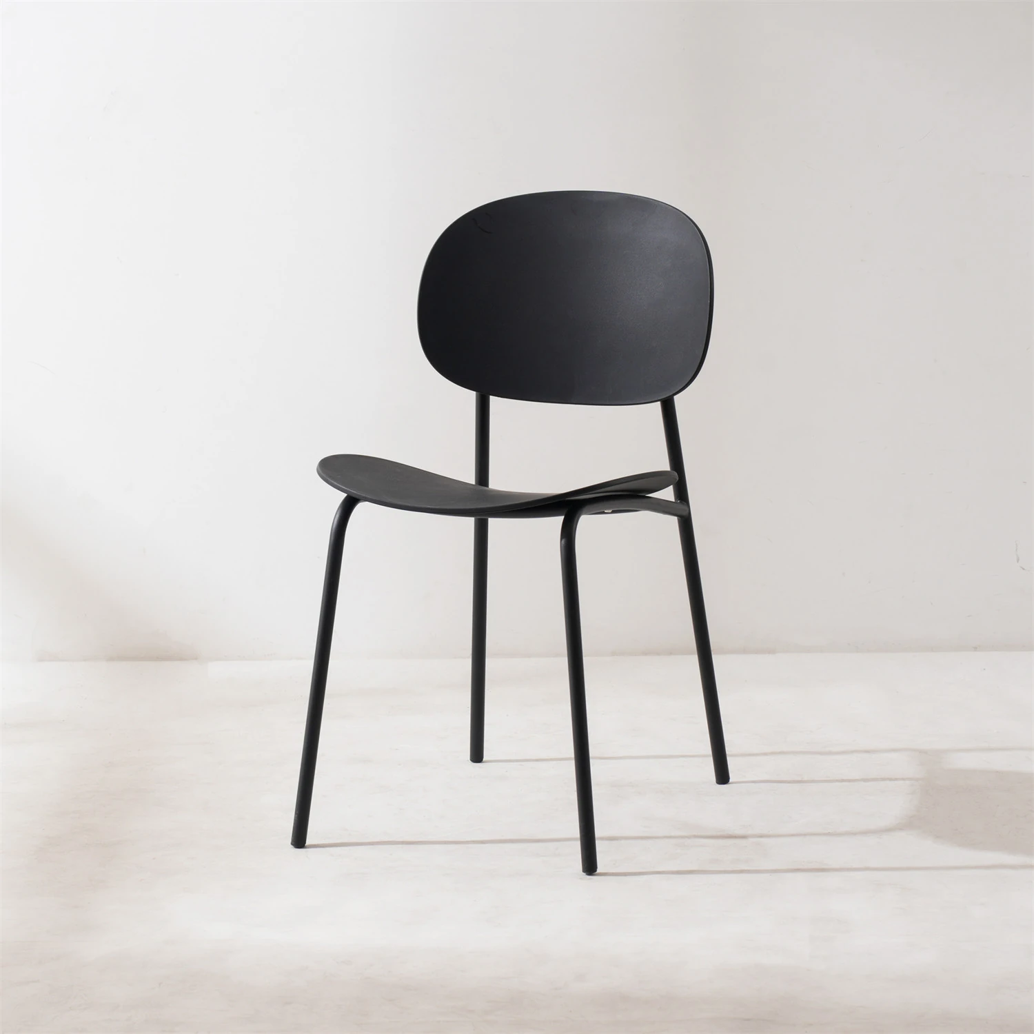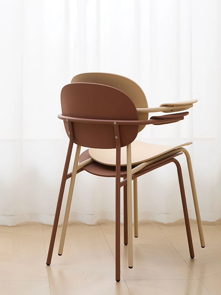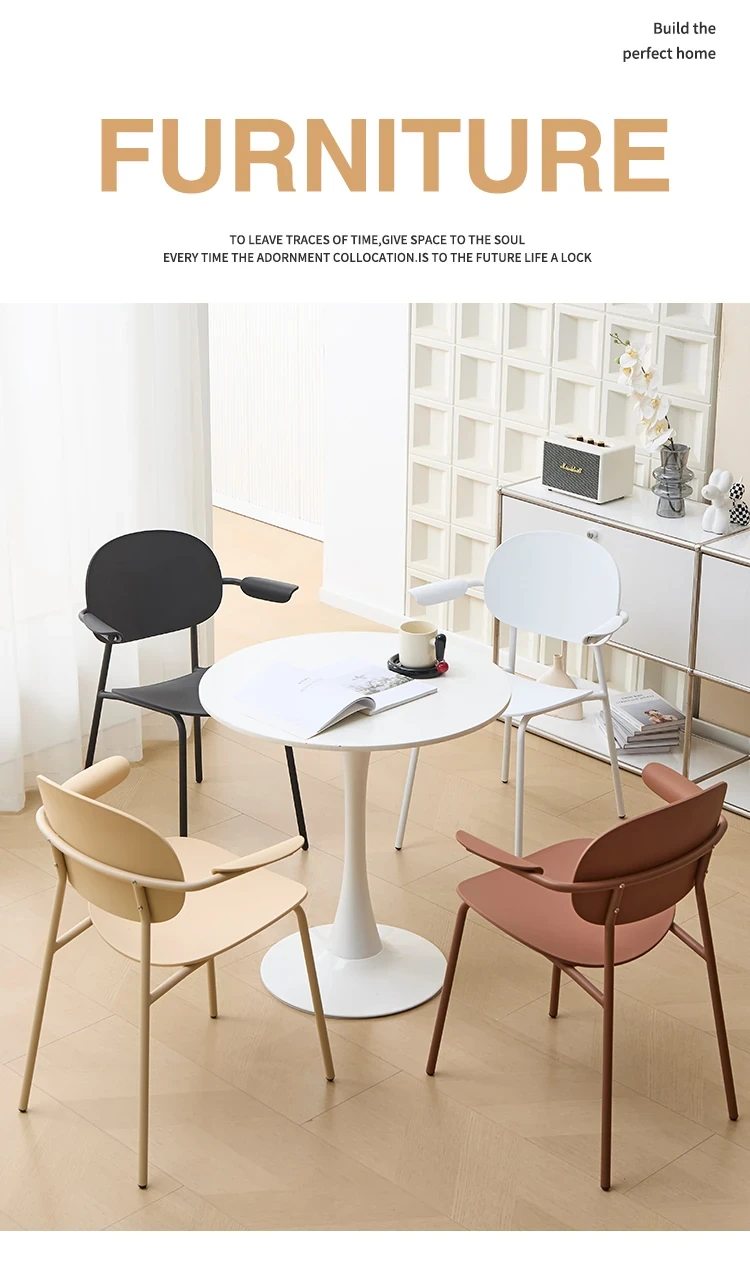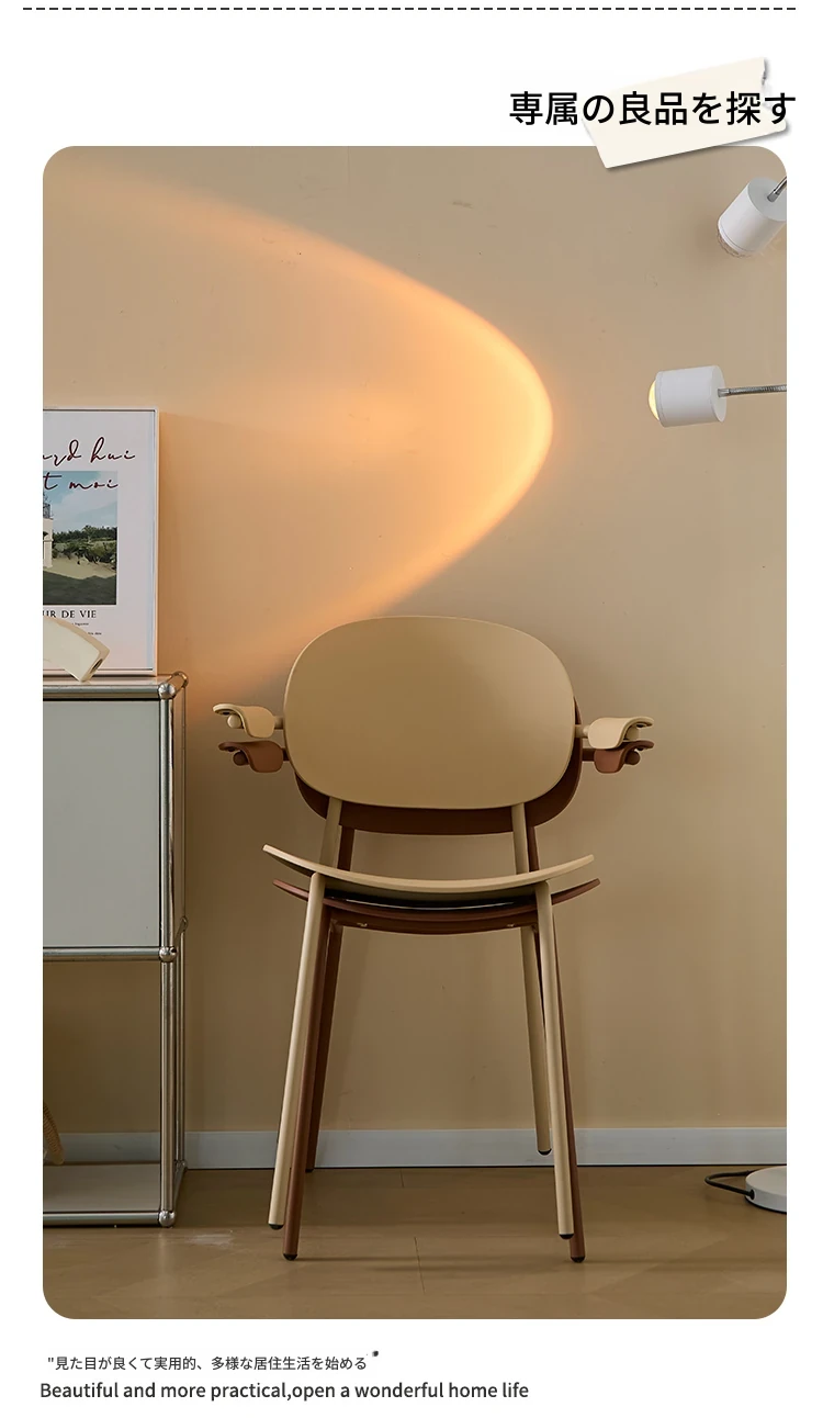 北欧風デザインのスタッキング可能なプラスチック製ダイニングチェア - 小スペースでも使いやすい、リラックスできるバルコニーやカフェに最適な現代的なシンプルスタイルの椅子!