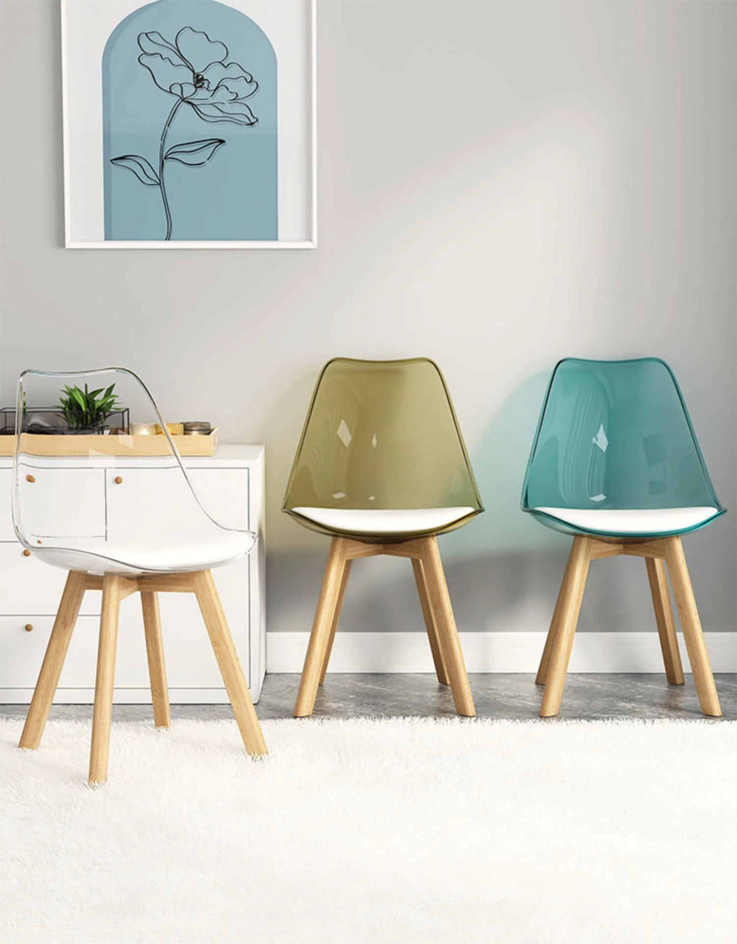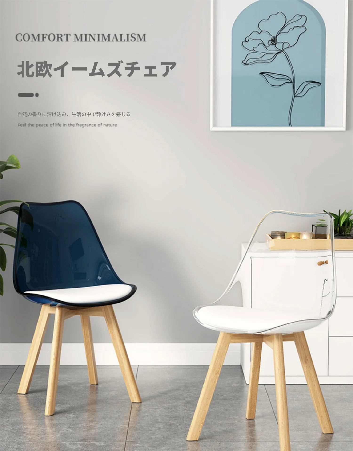 北欧風デザインの厚手アクリル製透明ダイニングチェア - シンプルでスタイリッシュなイームズスタイル、家庭用デスクにも最適なリラックスチェア!