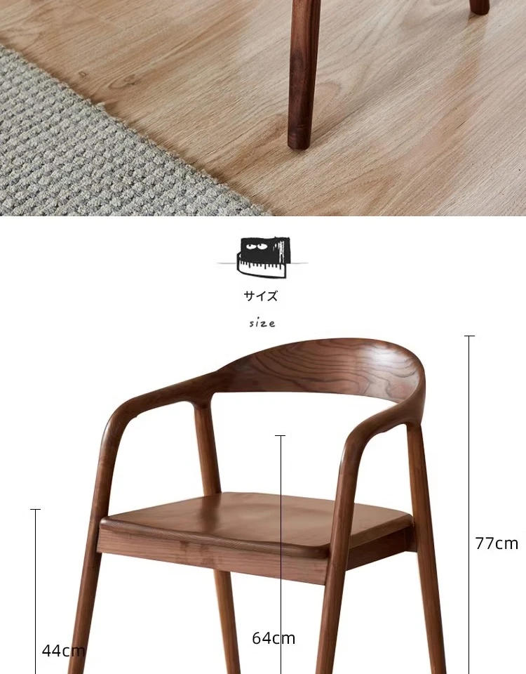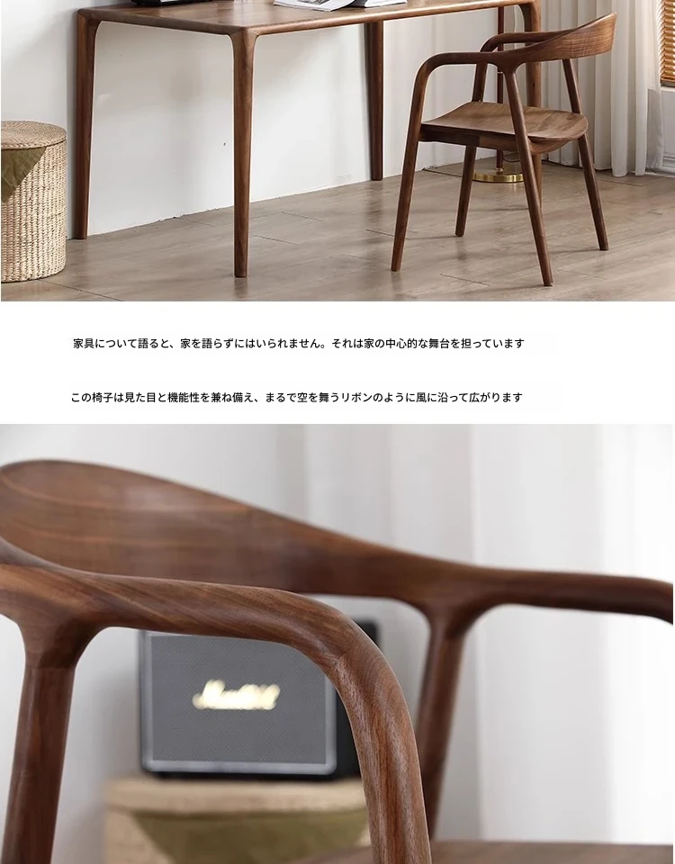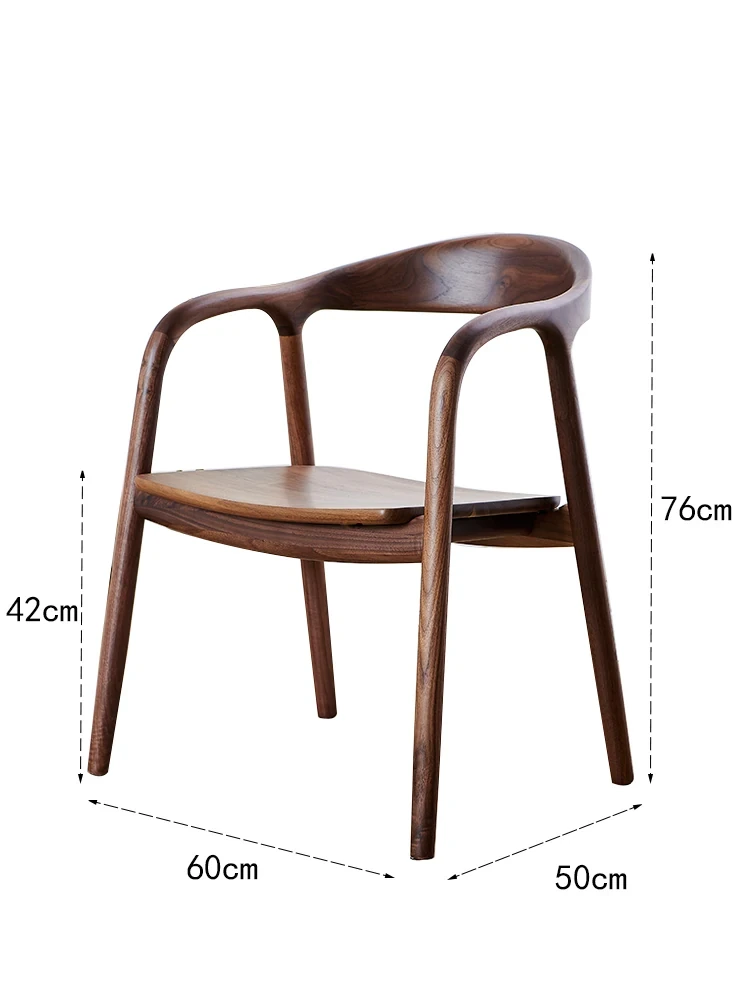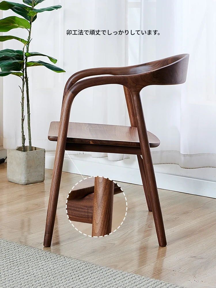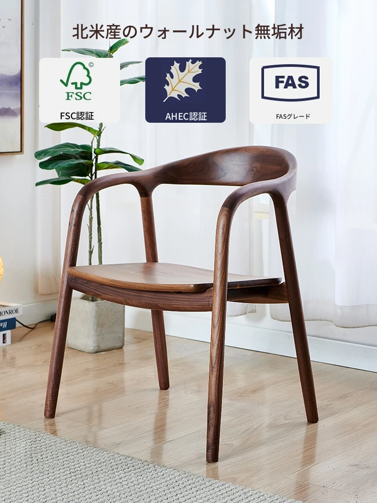 北米産ブラックウォールナットのダイニングチェア|本格的な和風デザインのリラックスアームチェア|新中式スタイルの無垢材使用|家庭用書斎にも最適な高級感溢れる一品!