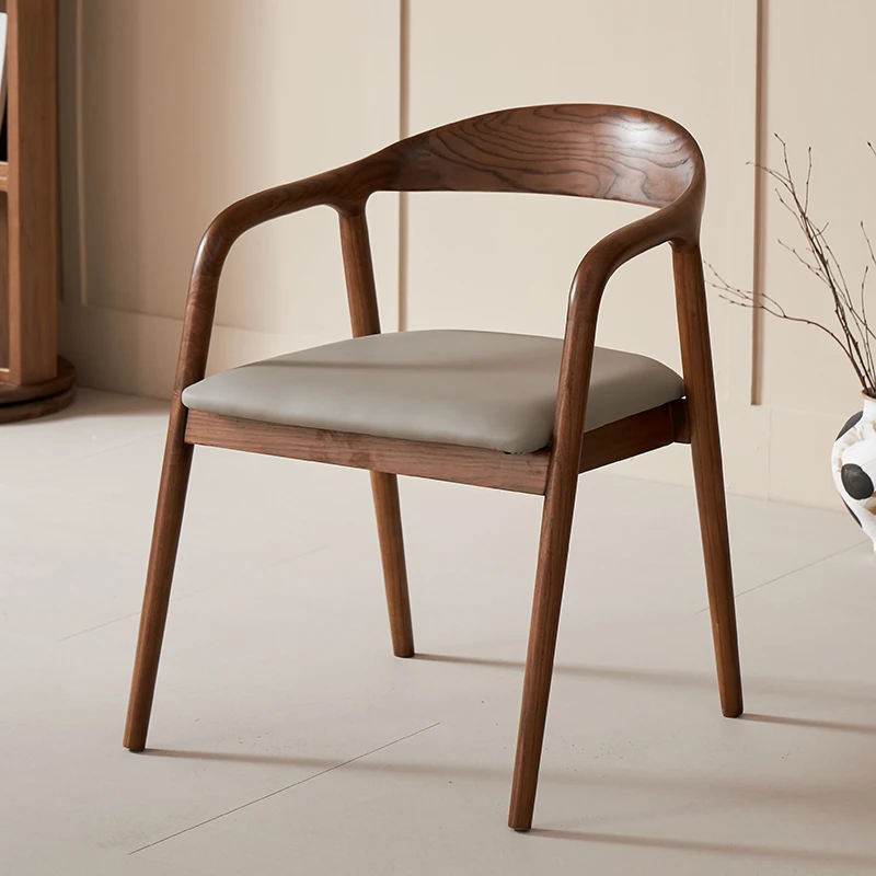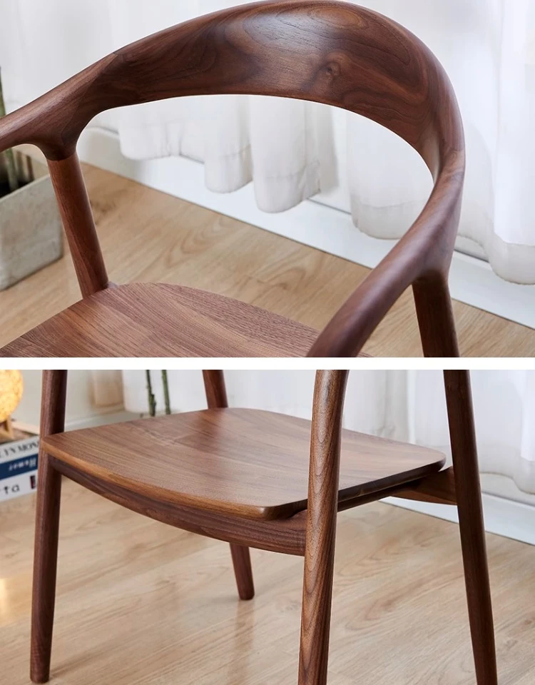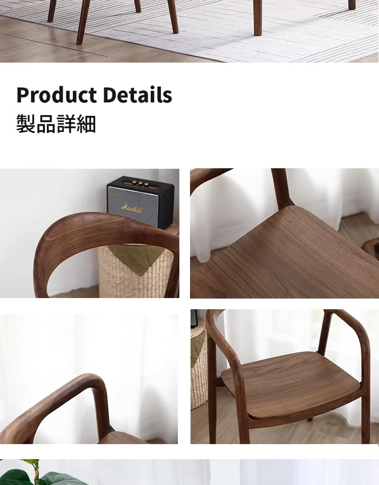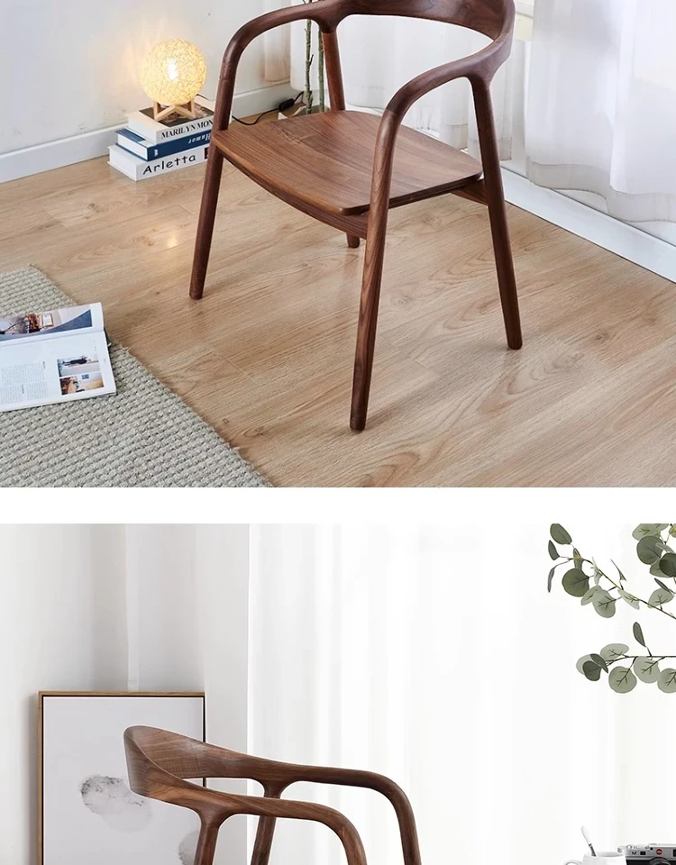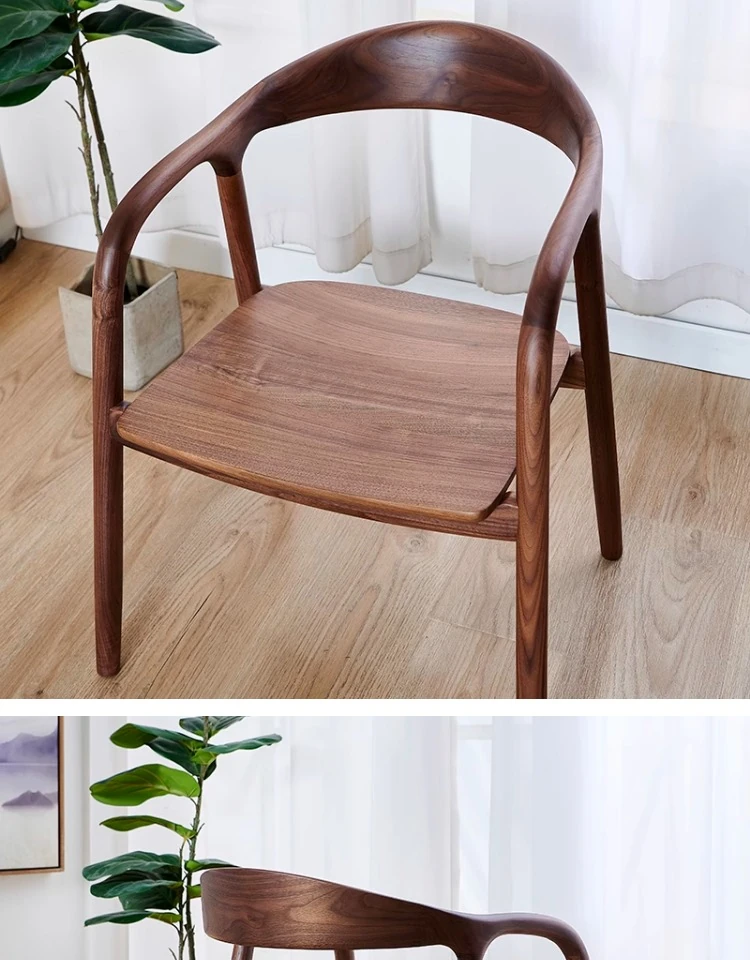 北米産ブラックウォールナットのダイニングチェア|本格的な和風デザインのリラックスアームチェア|新中式スタイルの無垢材使用|家庭用書斎にも最適な高級感溢れる一品!