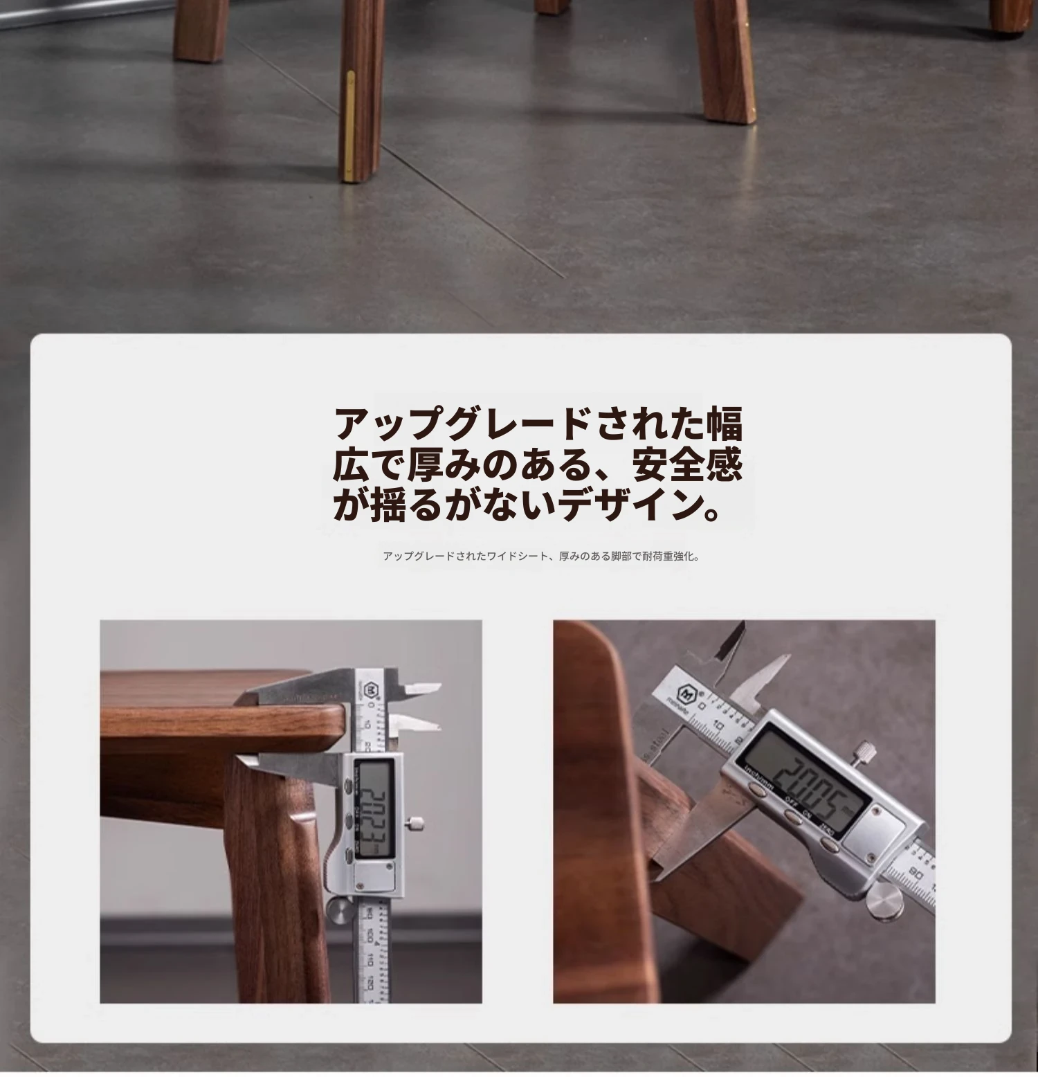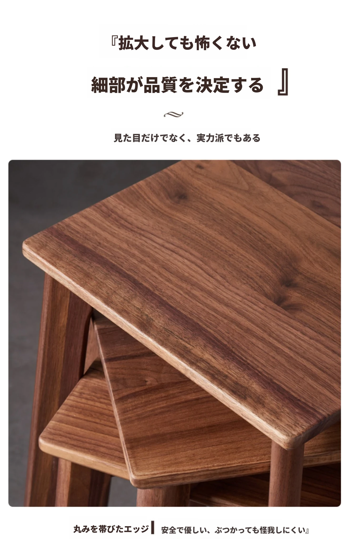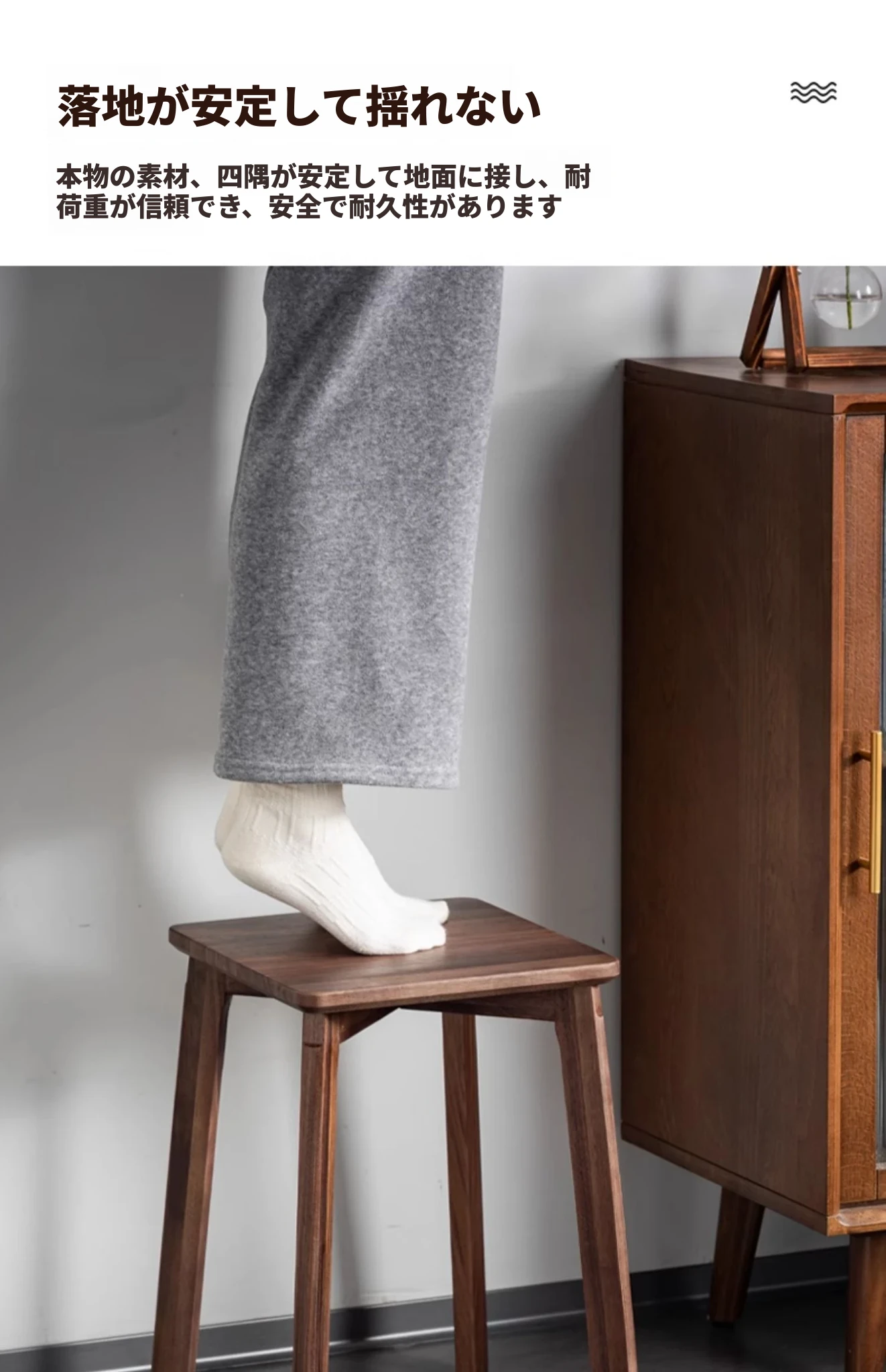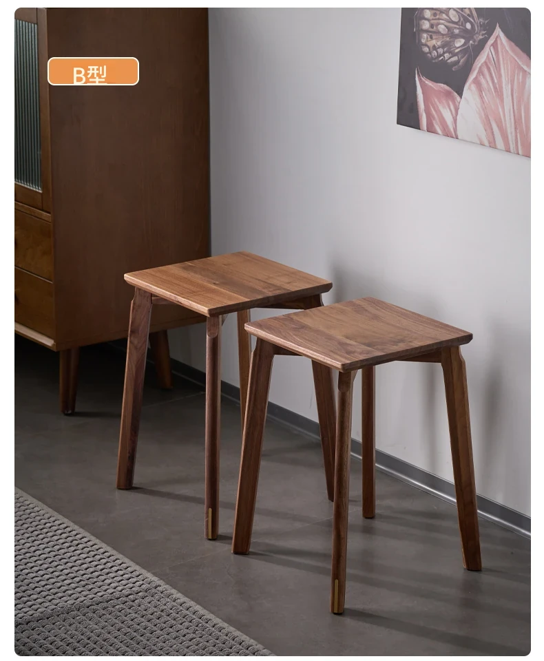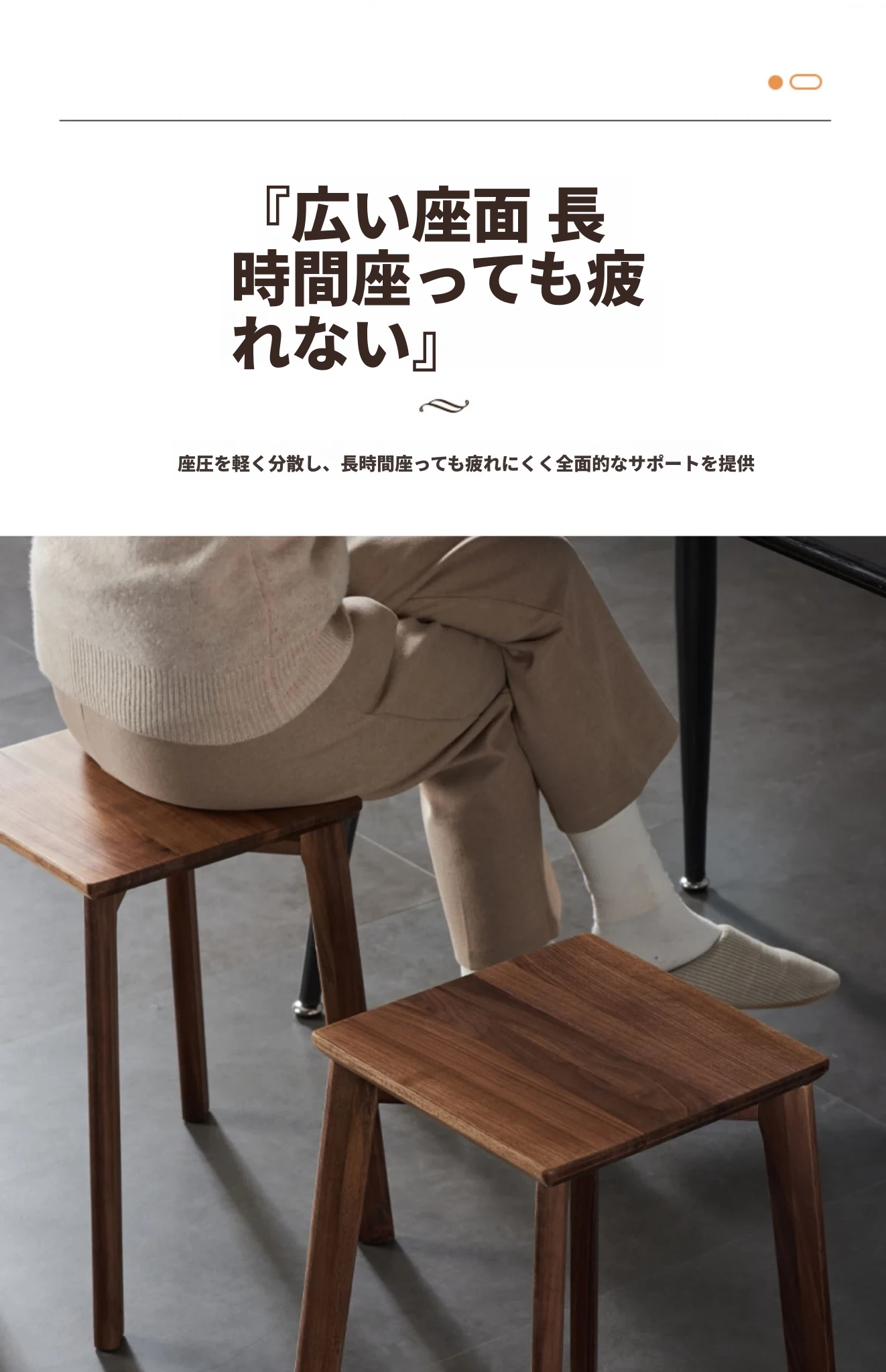 北米産ブラックウォールナットの無垢材スツール - 家庭用に最適なスタッキング可能な円形スツール、ダイニングチェアやローチェアとしても使える!おしゃれで機能的なデザインで、あなたの食卓を素敵に演出します。