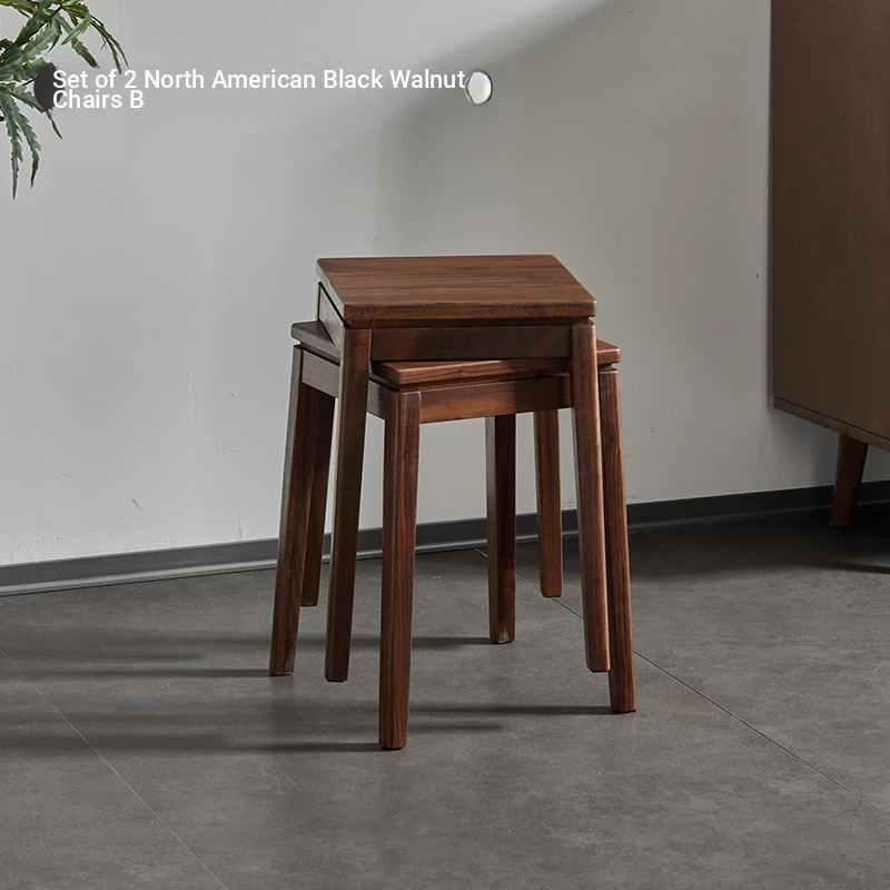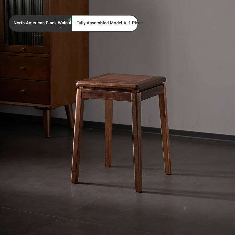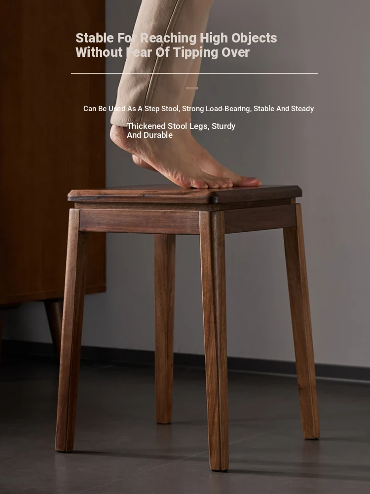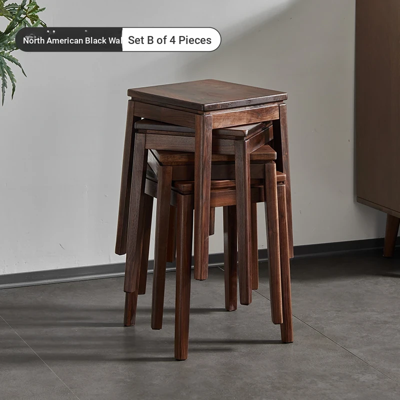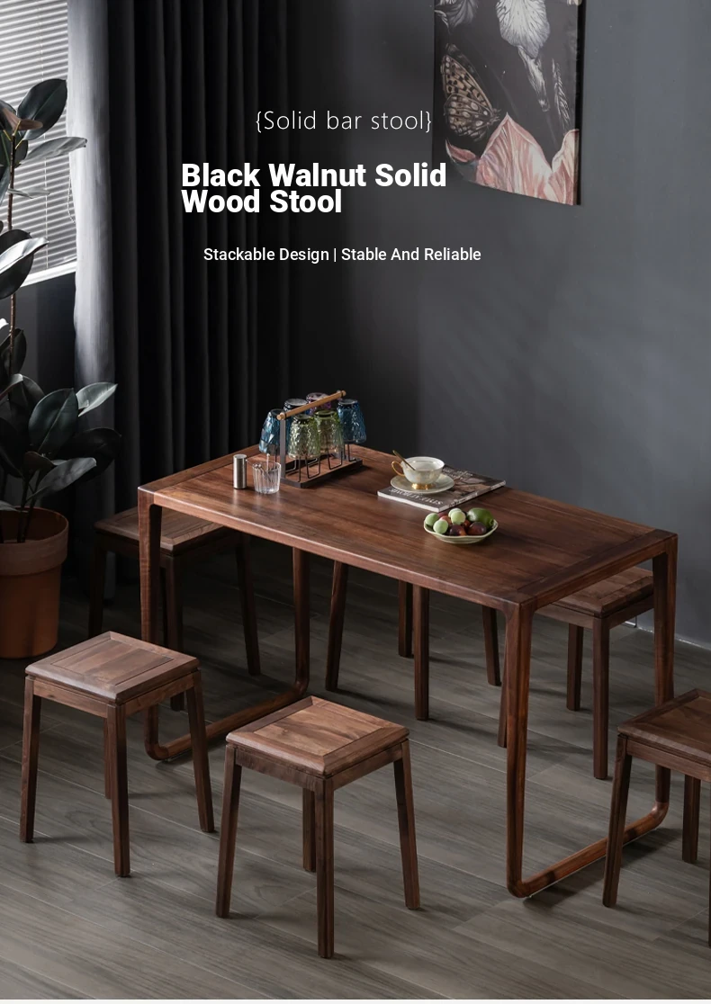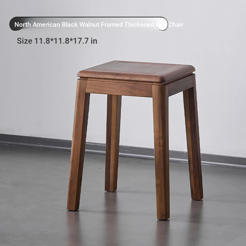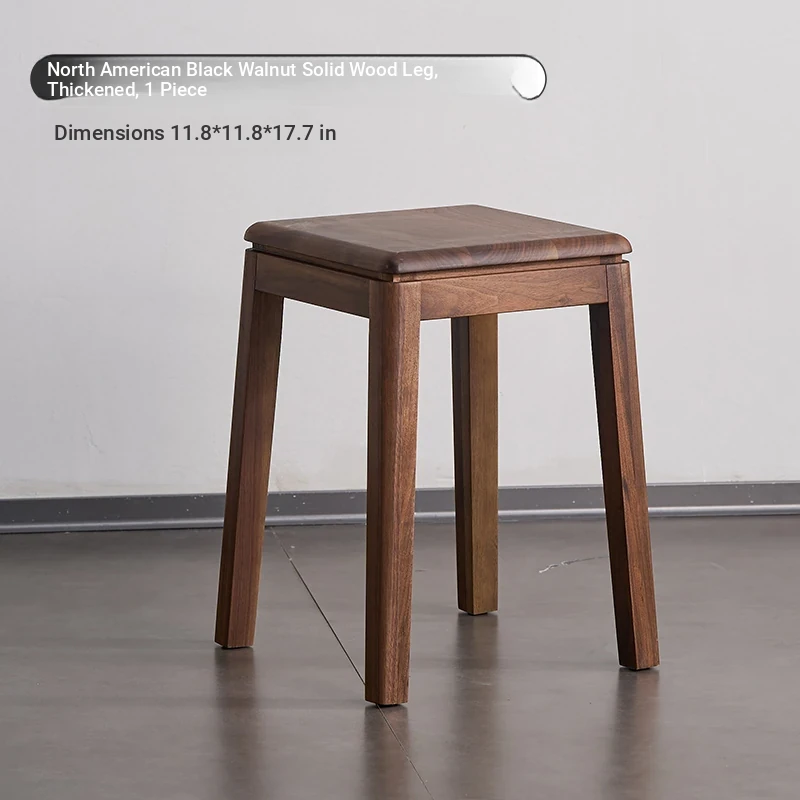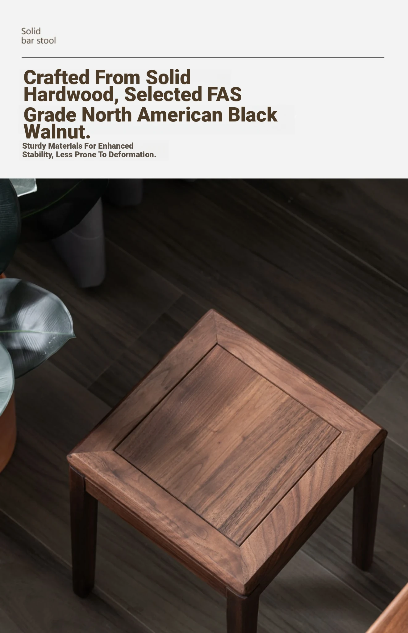 North American Black Walnut Solid Wood Stools - Stackable Mortise and Tenon Structure, Square Benches for Tea, Dining, and Kitchen Use - Elegant and Durable Design for Your Home