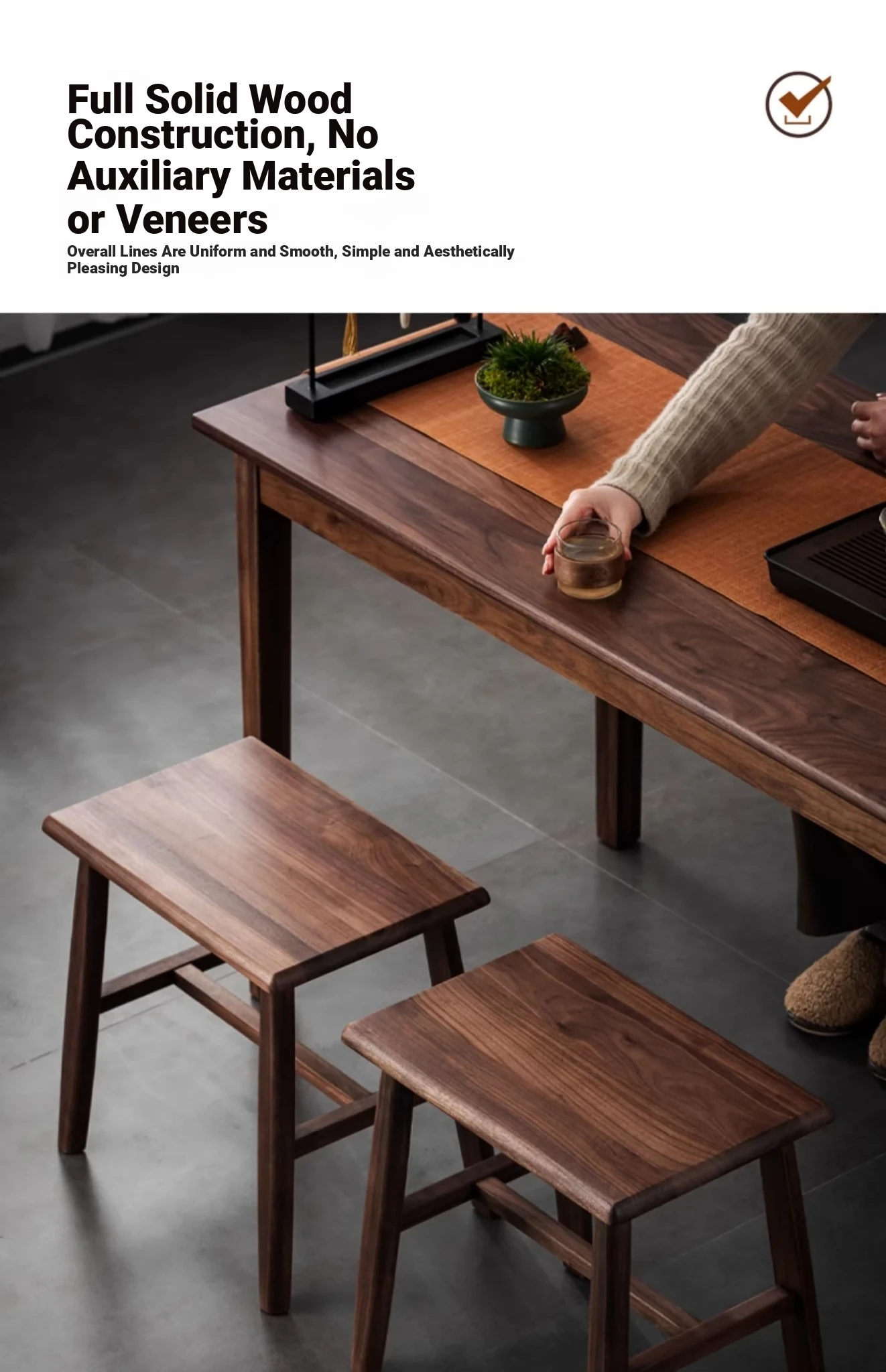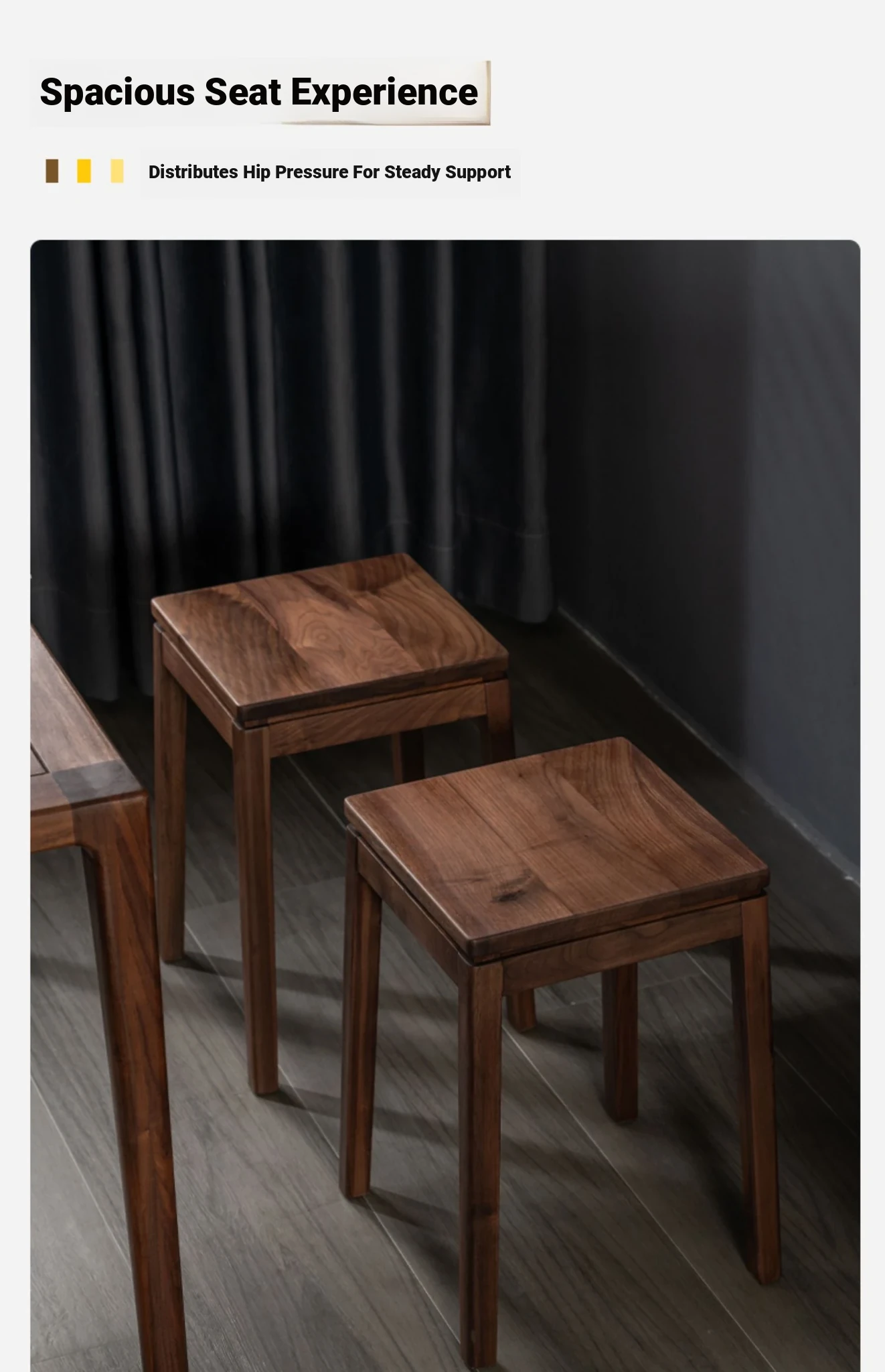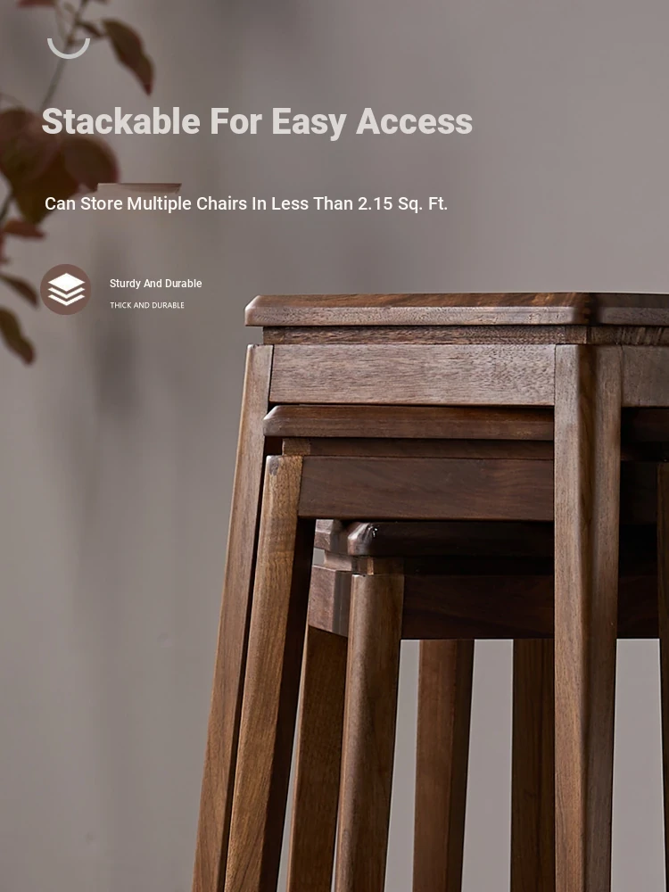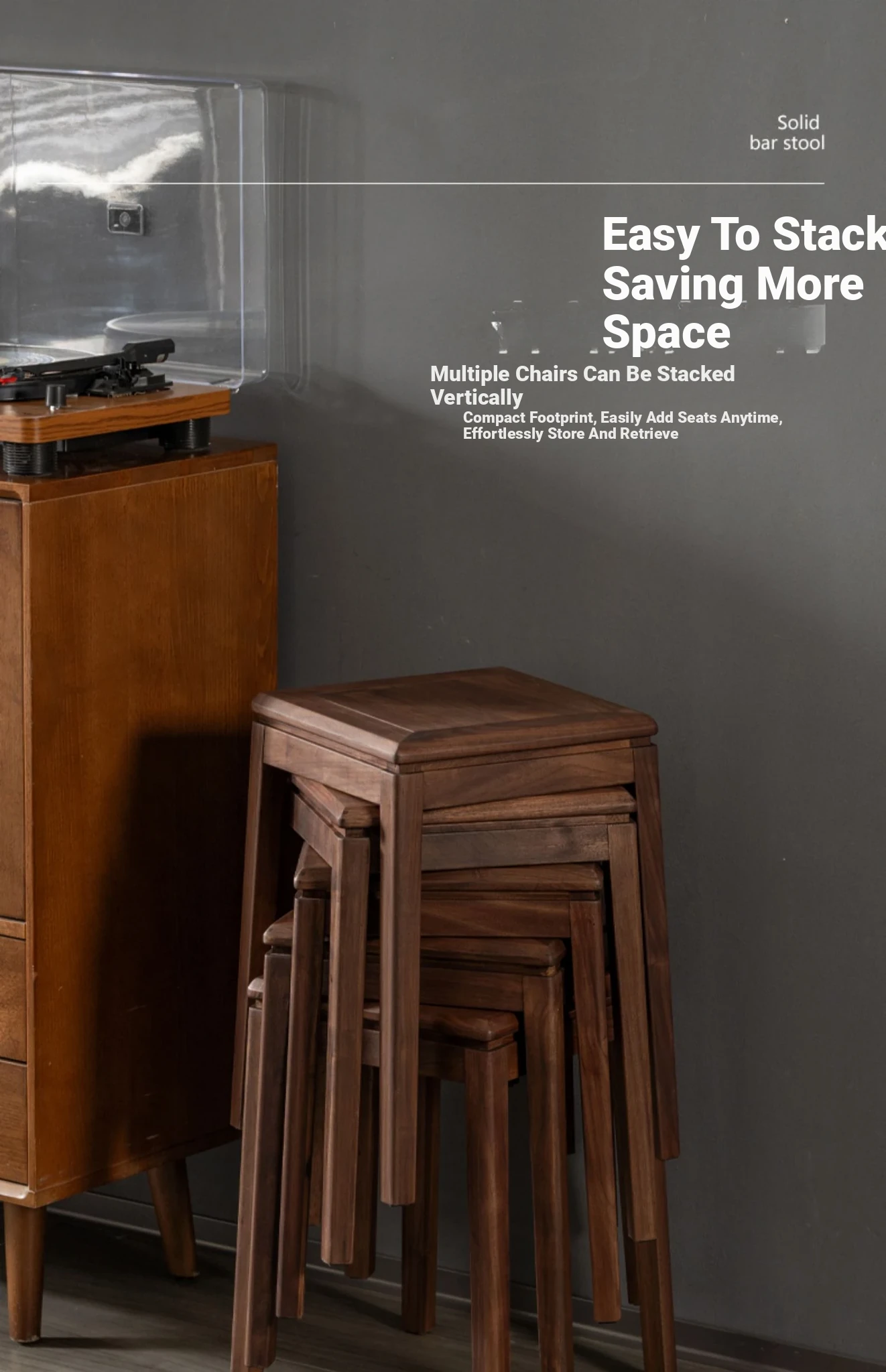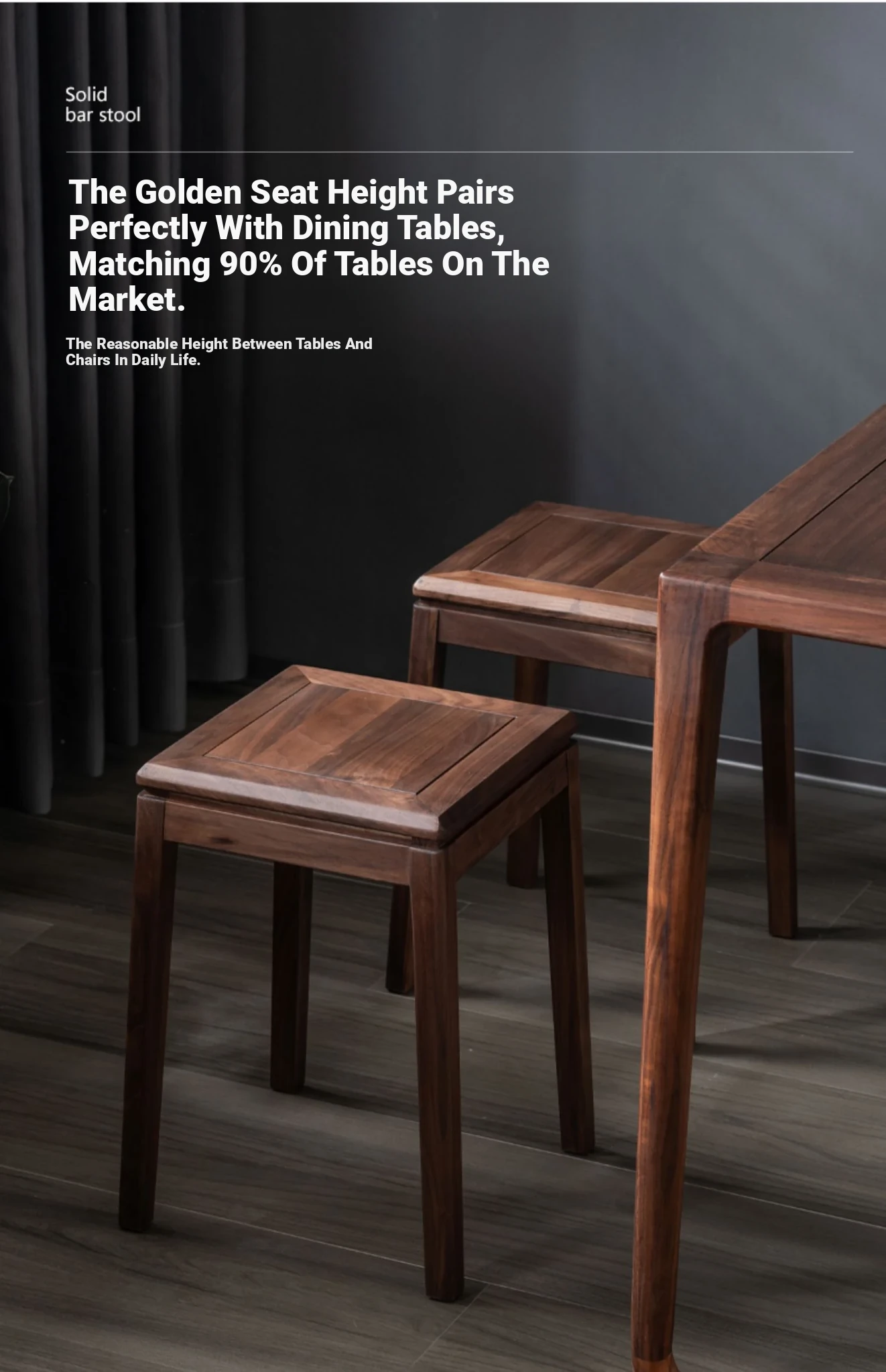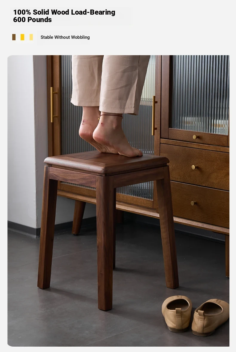 North American Black Walnut Solid Wood Stools - Stackable Mortise and Tenon Structure, Square Benches for Tea, Dining, and Kitchen Use - Elegant and Durable Design for Your Home