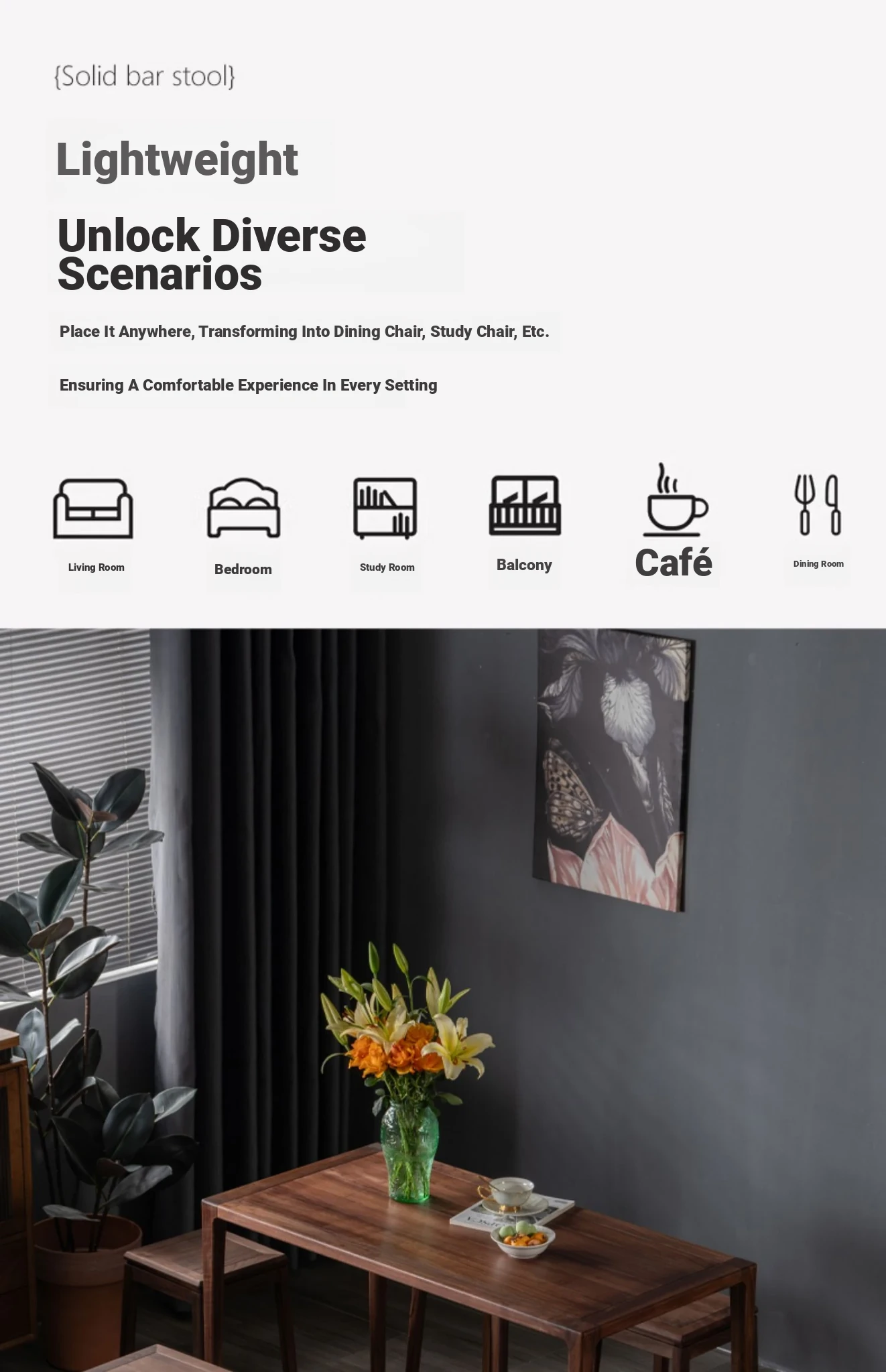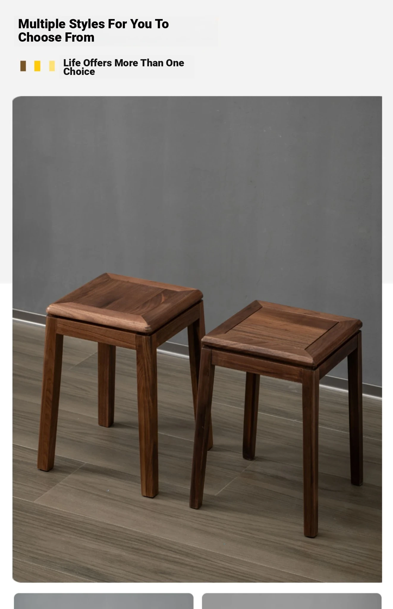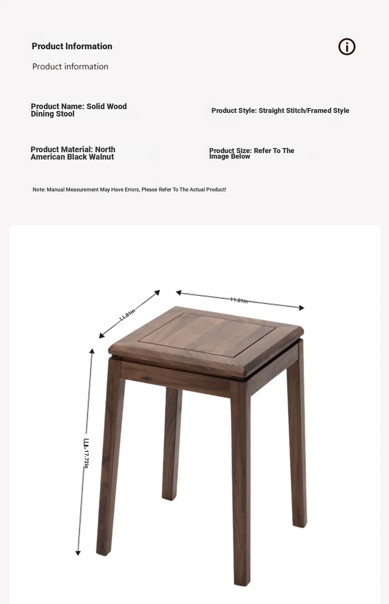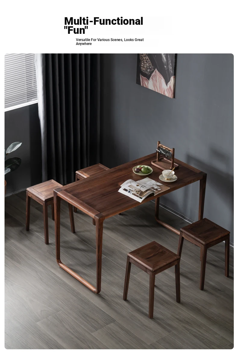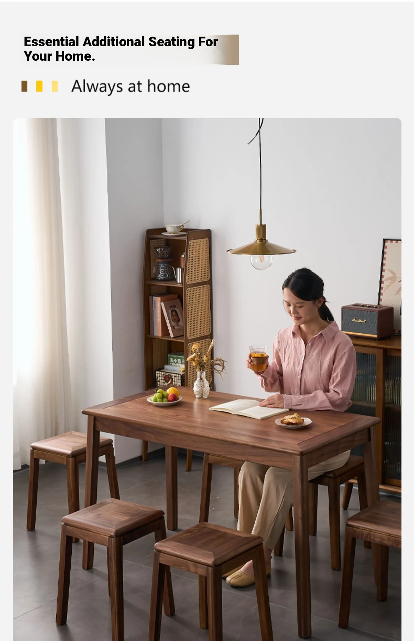 North American Black Walnut Solid Wood Stools - Stackable Mortise and Tenon Structure, Square Benches for Tea, Dining, and Kitchen Use - Elegant and Durable Design for Your Home