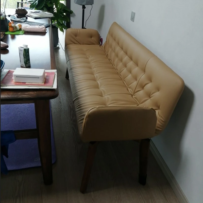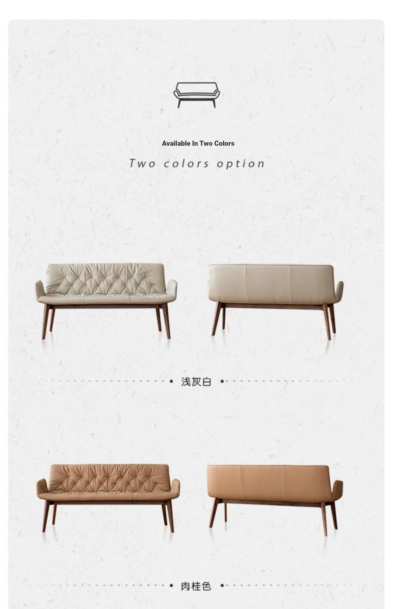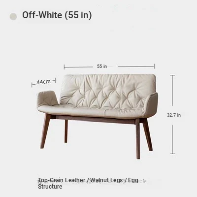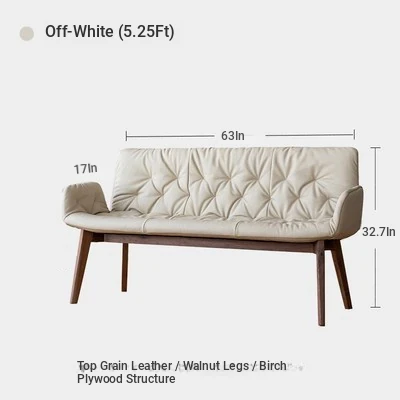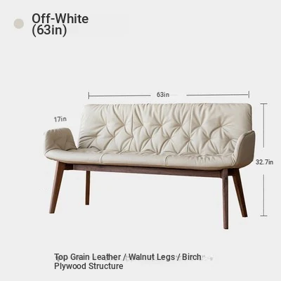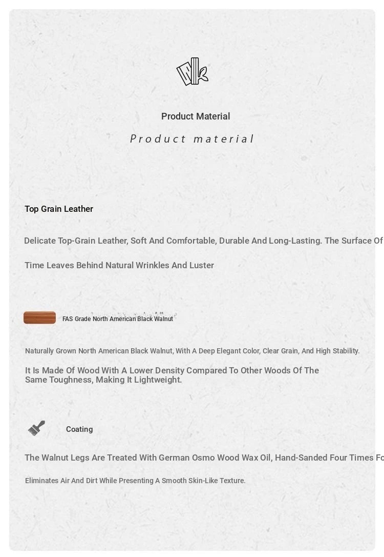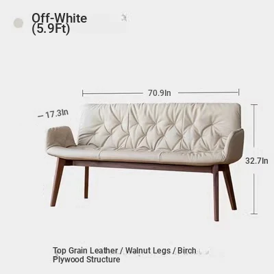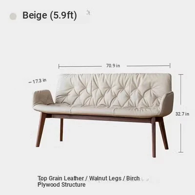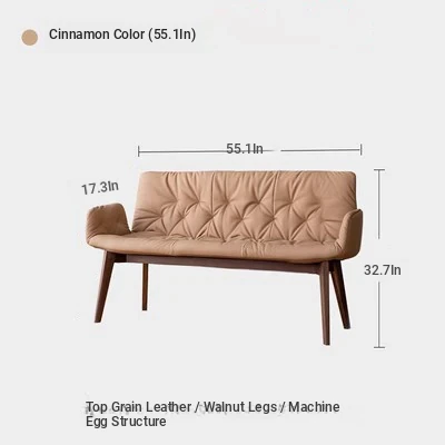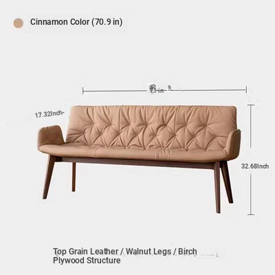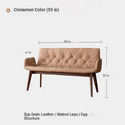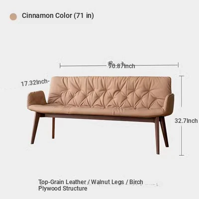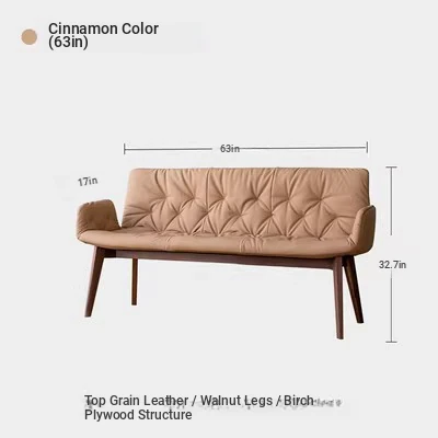 North American Black Walnut Wood Sofa Chair - Elegant Leather Lounge Chair with Top Grain Cowhide - Minimalist Design for Living Room and Dining Areas - Stylish Genuine Leather Bench