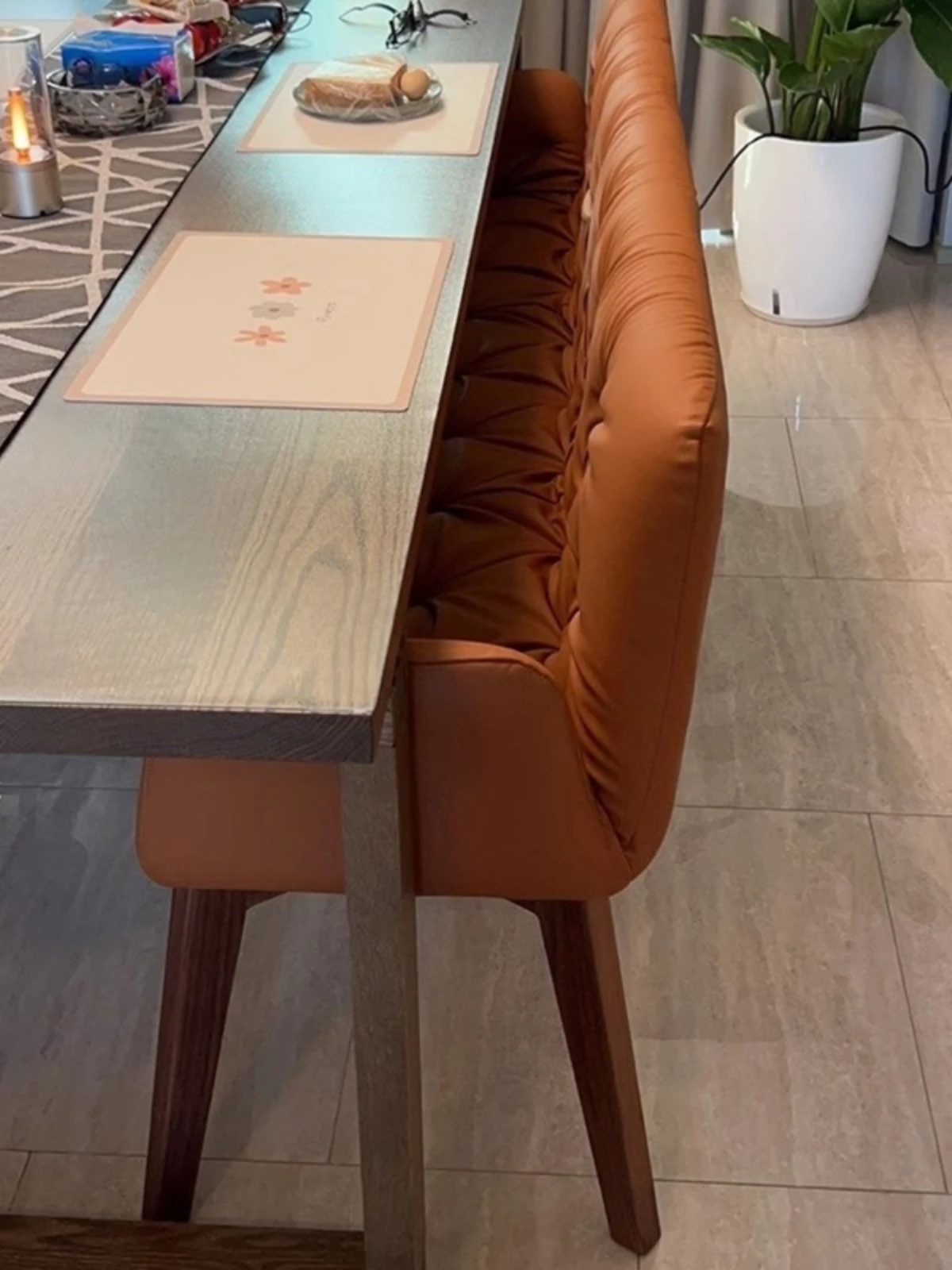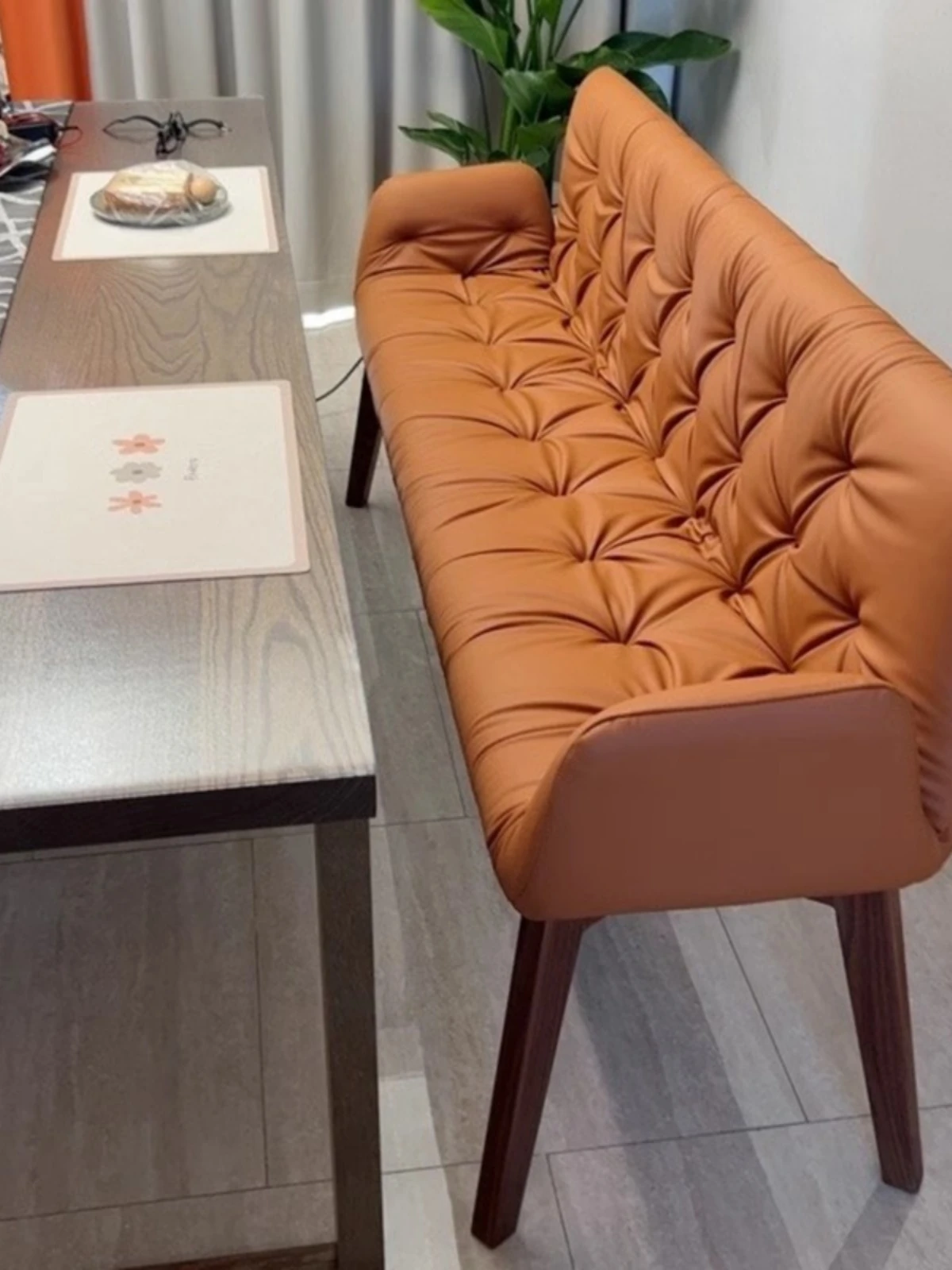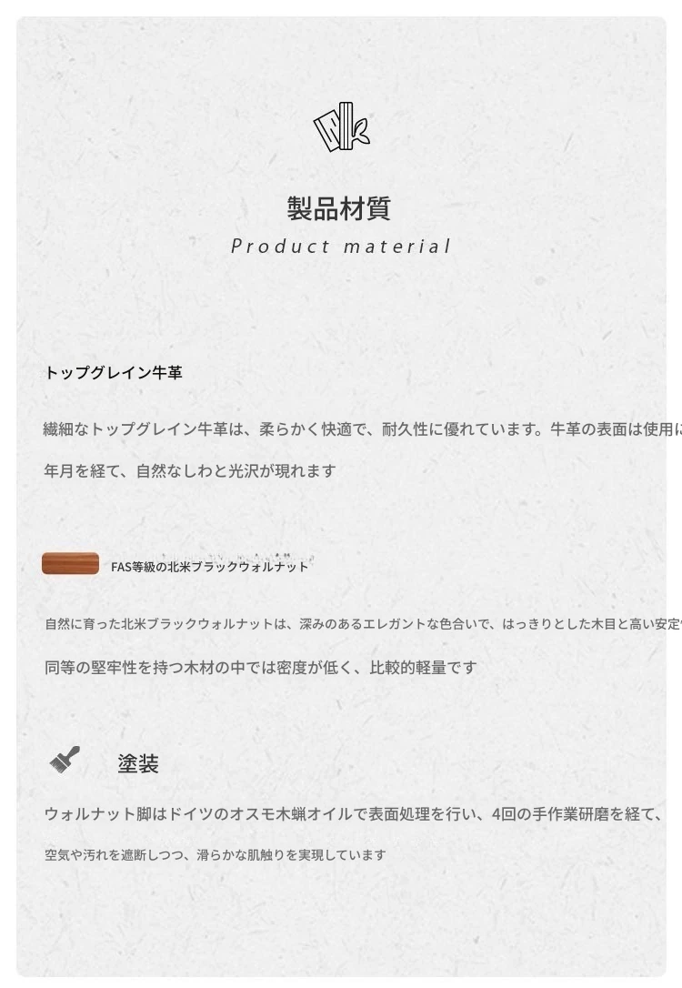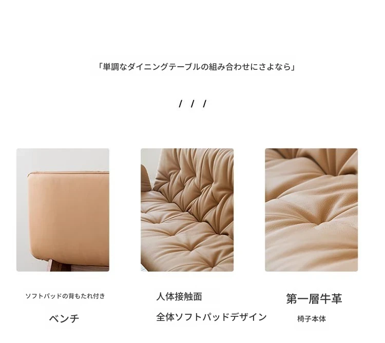 北米産ウォールナット材のソファチェア|高級本革使用のシンプルでエレガントなダイニングチェア|リビングにぴったりのスタイリッシュなロングチェア!