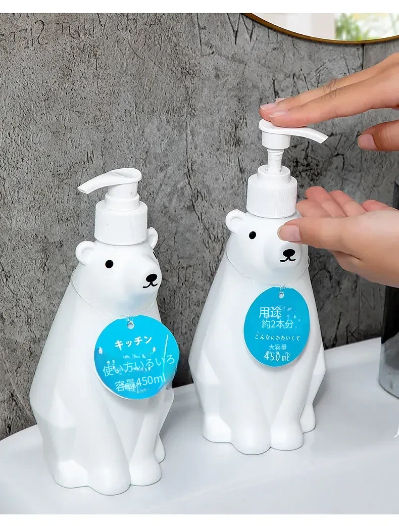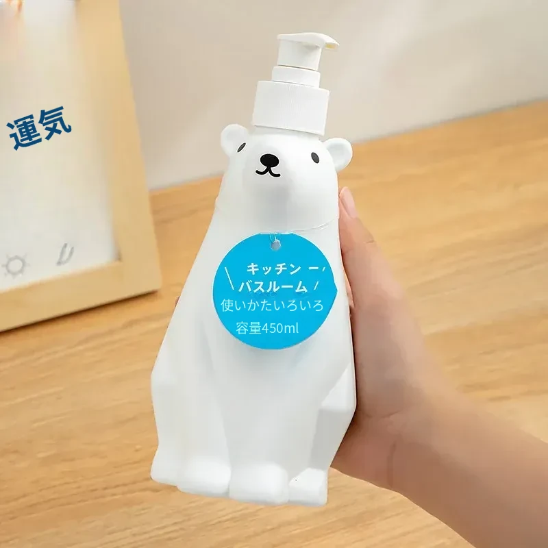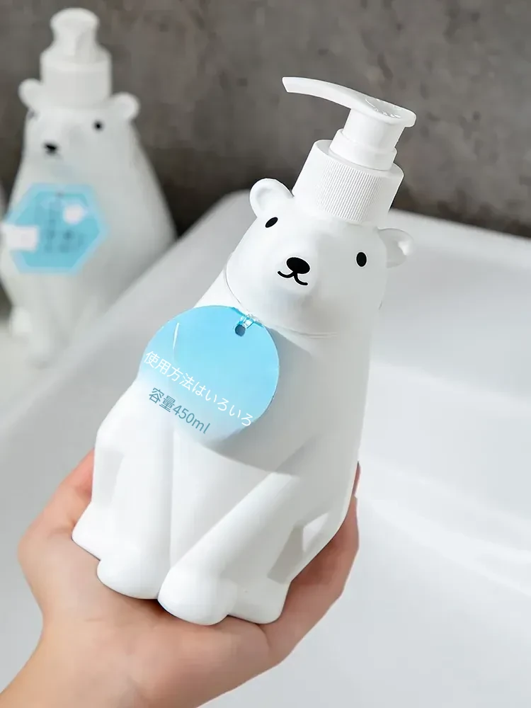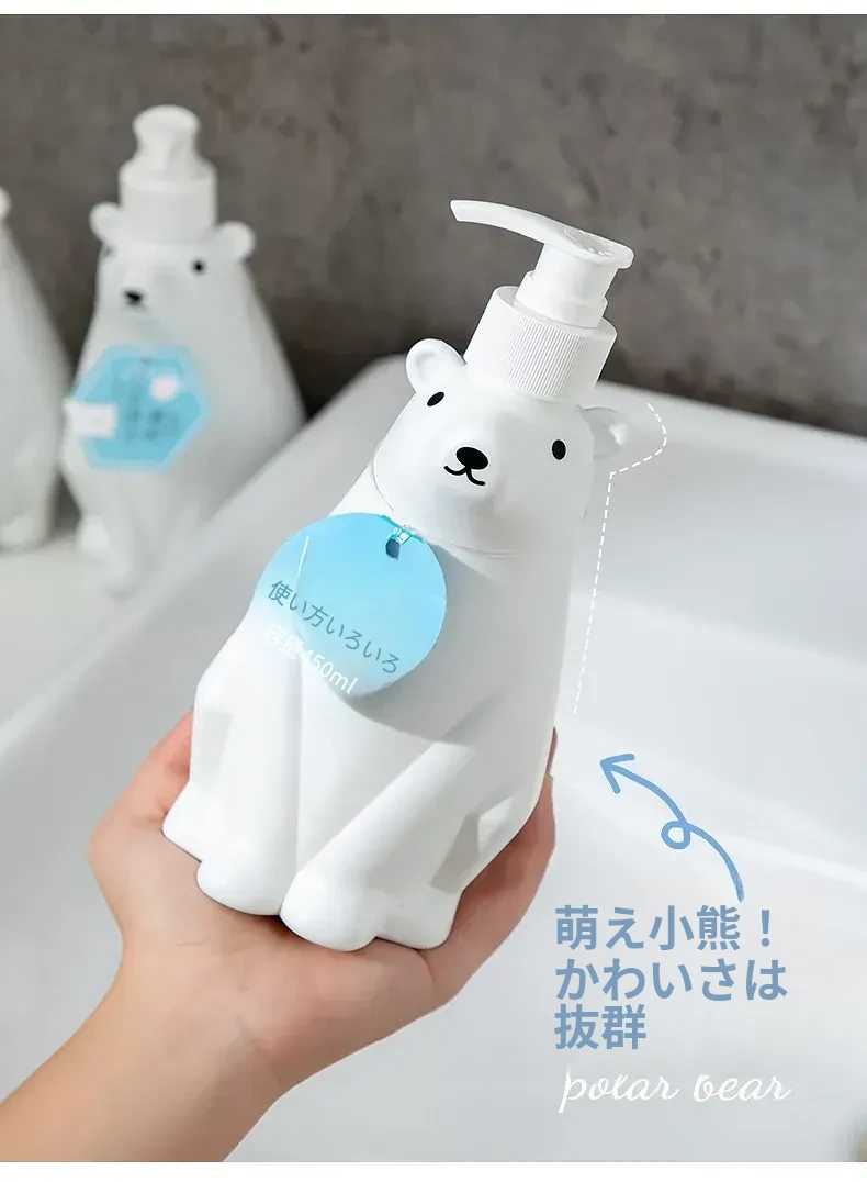 北極熊デザインのソープディスペンサー - 可愛いクマのローションボトル!洗剤、ボディソープにも最適な詰め替えボトル。おしゃれで実用的、あなたのバスルームを彩ります!