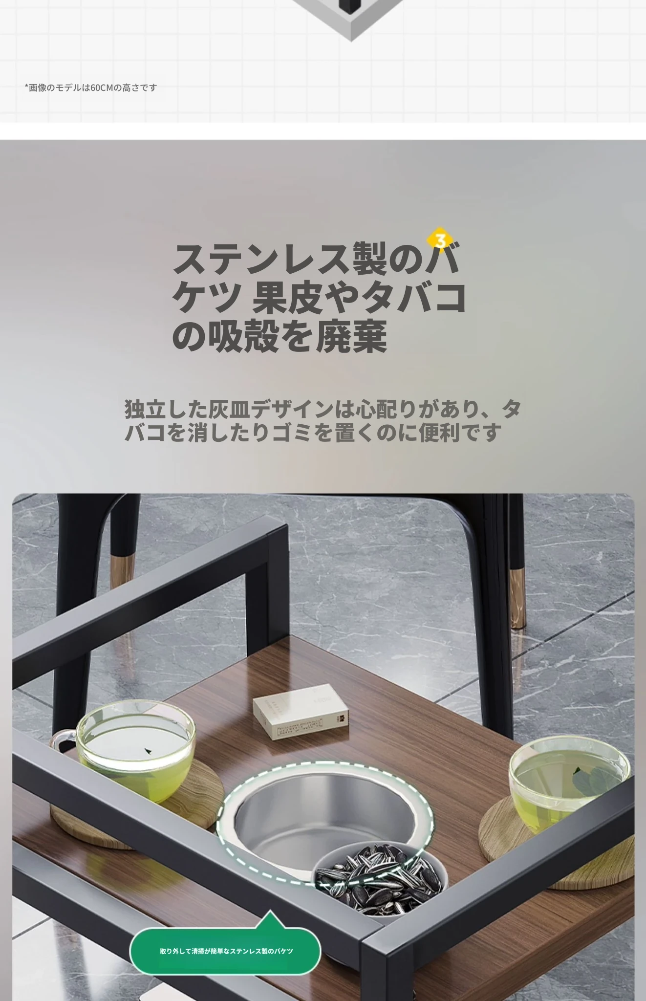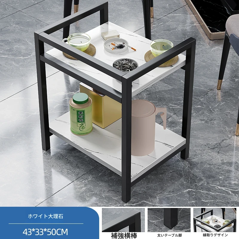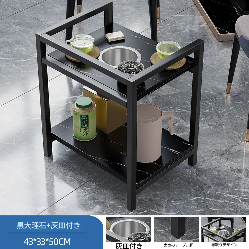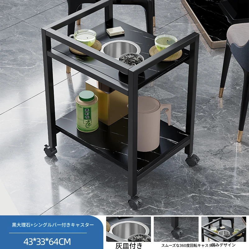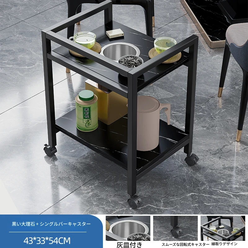 【キャスター付き+灰皿】ブラック大理石柄43*33*50cm
