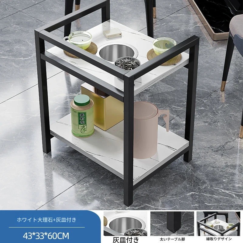 【キャスター付き+灰皿】ホワイト大理石柄43*33*60cm