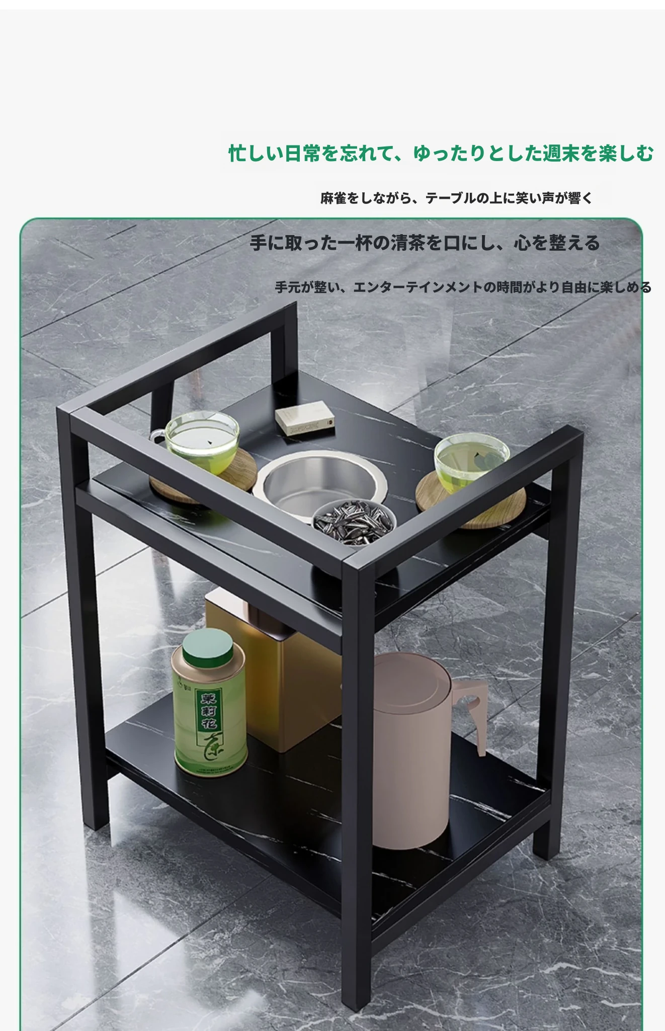 麻雀卓とティーセットが一体化!移動可能な小型テーブルで、ゲームルームやリビングにぴったり。お茶を楽しみながら、楽しい麻雀のひとときを!