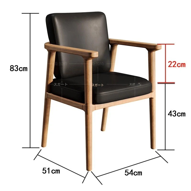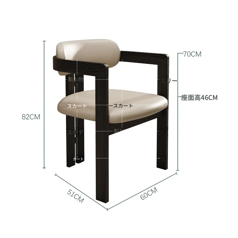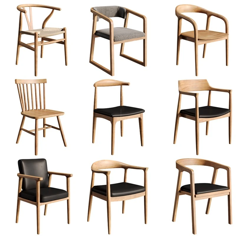 高級感あふれる無垢材の背もたれ付きダイニングチェア。ホワイトアッシュの洗練された新中式デザイン。シンプルでモダンなオーク材使用、家庭やオフィスでのリラックスタイムに最適!