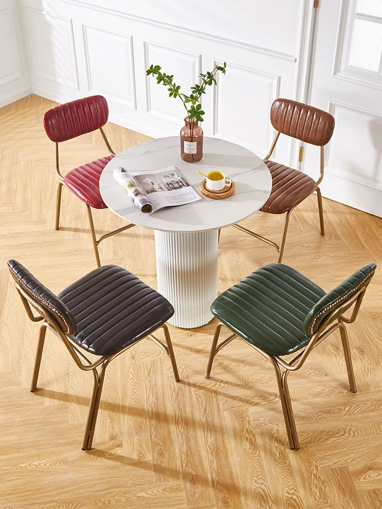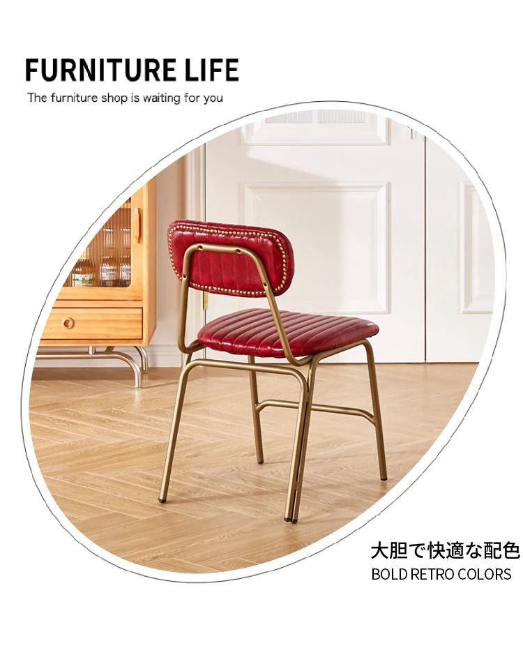 レトロアイアン製ダイニングチェア 北欧LOFTスタイル 工業風デザイン 大人向け 背もたれ付きレザー椅子 アメリカンカフェテーブル&チェアセット おしゃれな食卓を演出!
