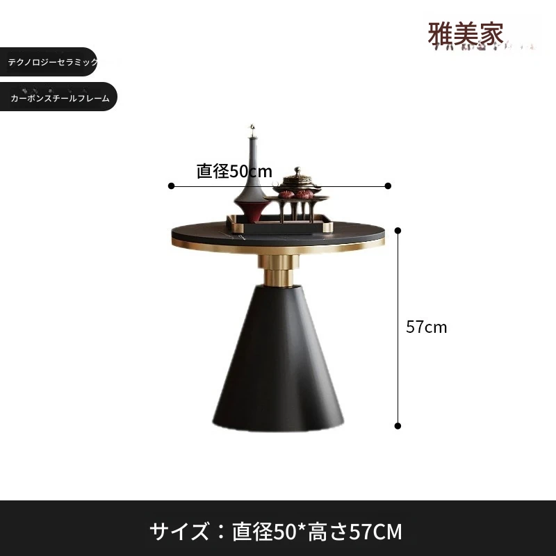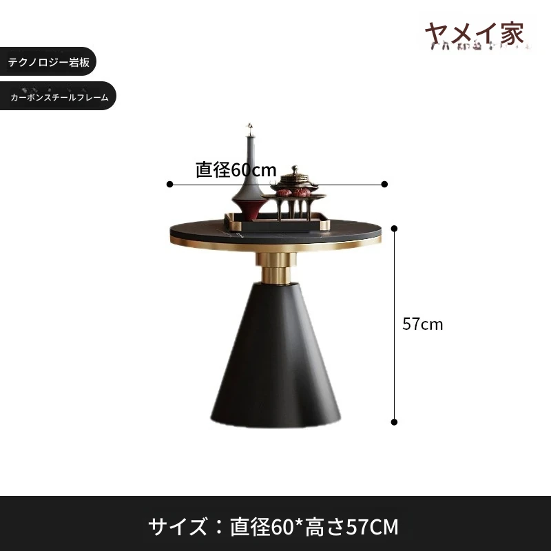 岩板ローレンブラックゴールド天板+ステンレス円卓