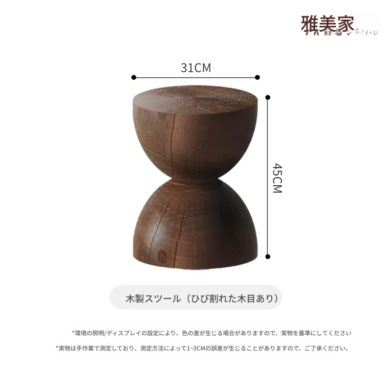 中古風の侘び寂びデザイン!オリジナルの民宿家具、リビングにぴったりな天然木製のサイドテーブル。小さな丸テーブルで、あなたの空間に温もりをプラス!