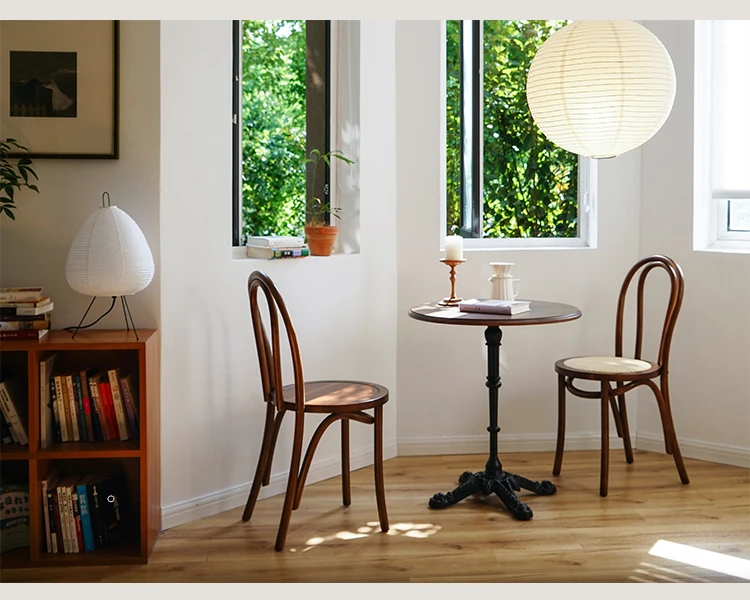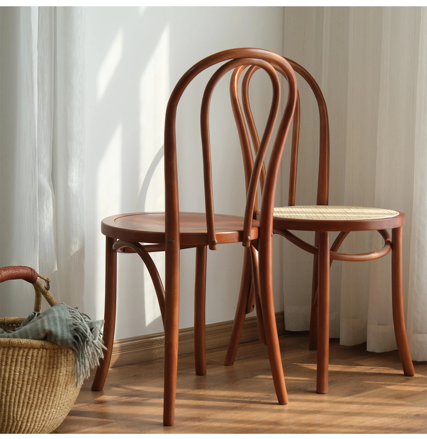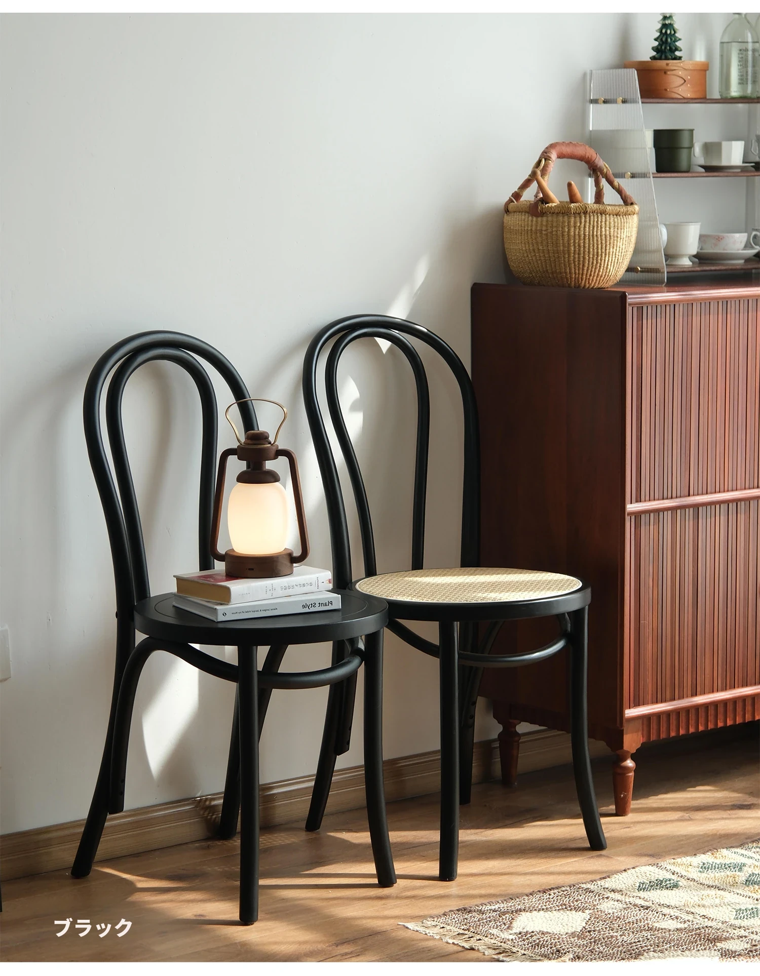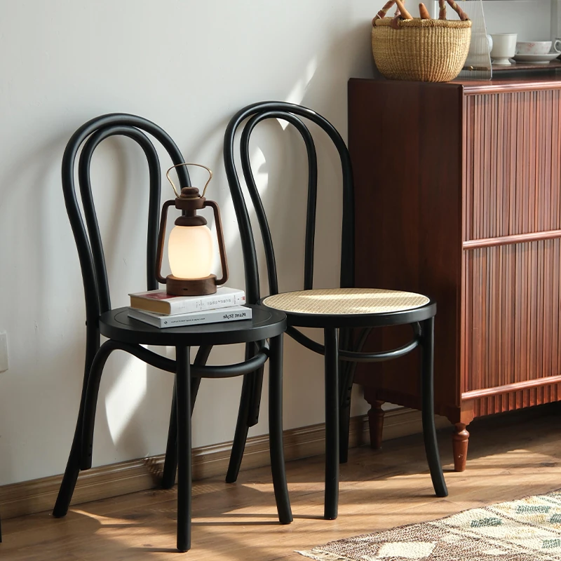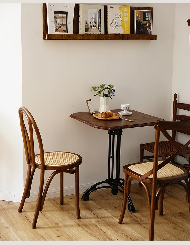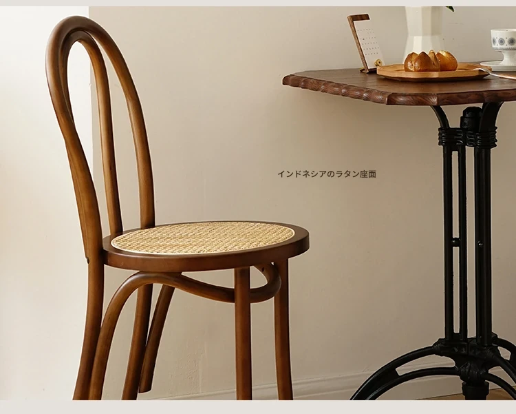 シャークホーム | ソナイトヴィンテージ家具カフェのレトロなラタン編みダイニングチェア、背もたれ付きの中古家具で、温かみのある空間を演出します。