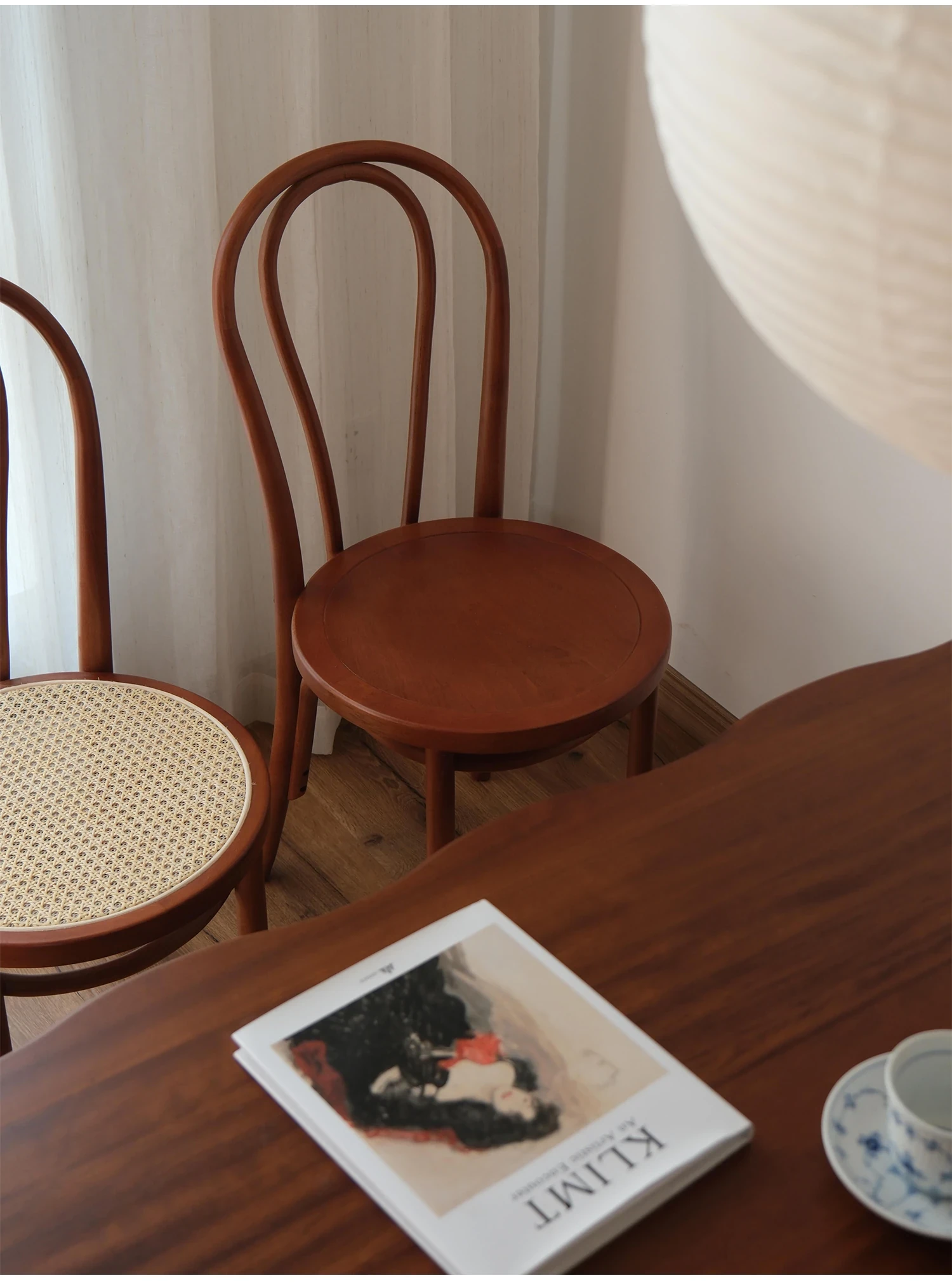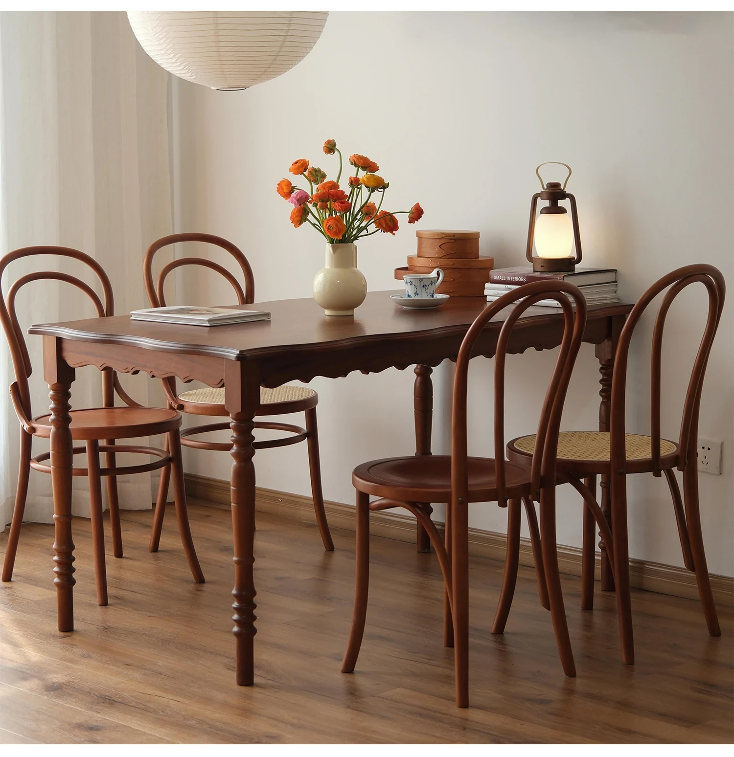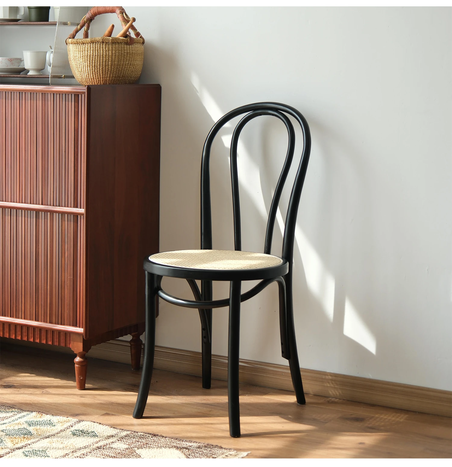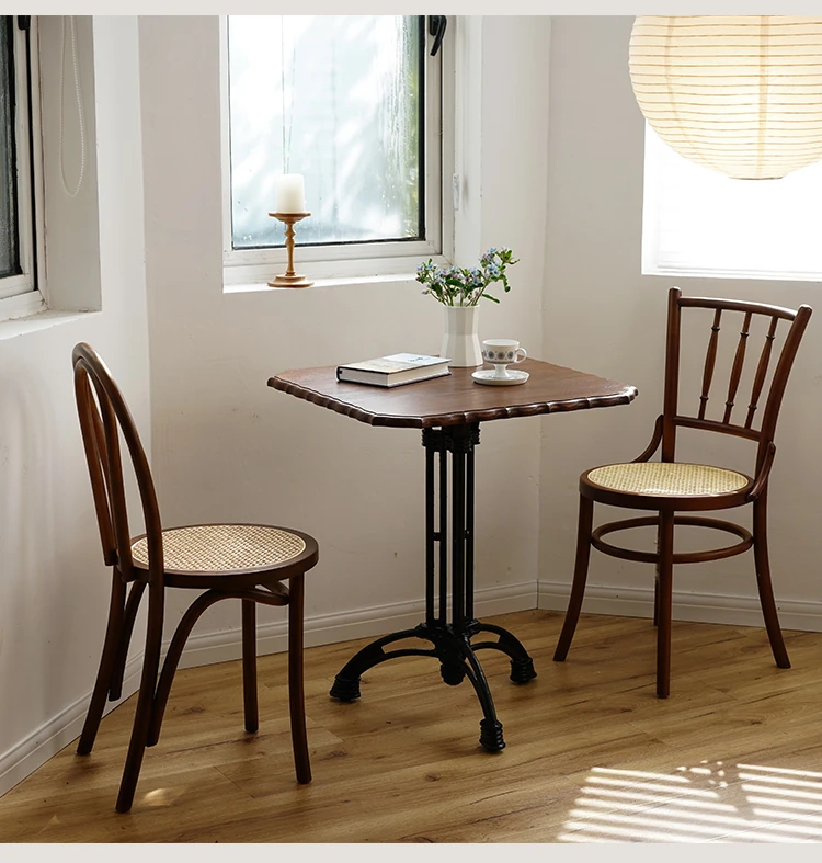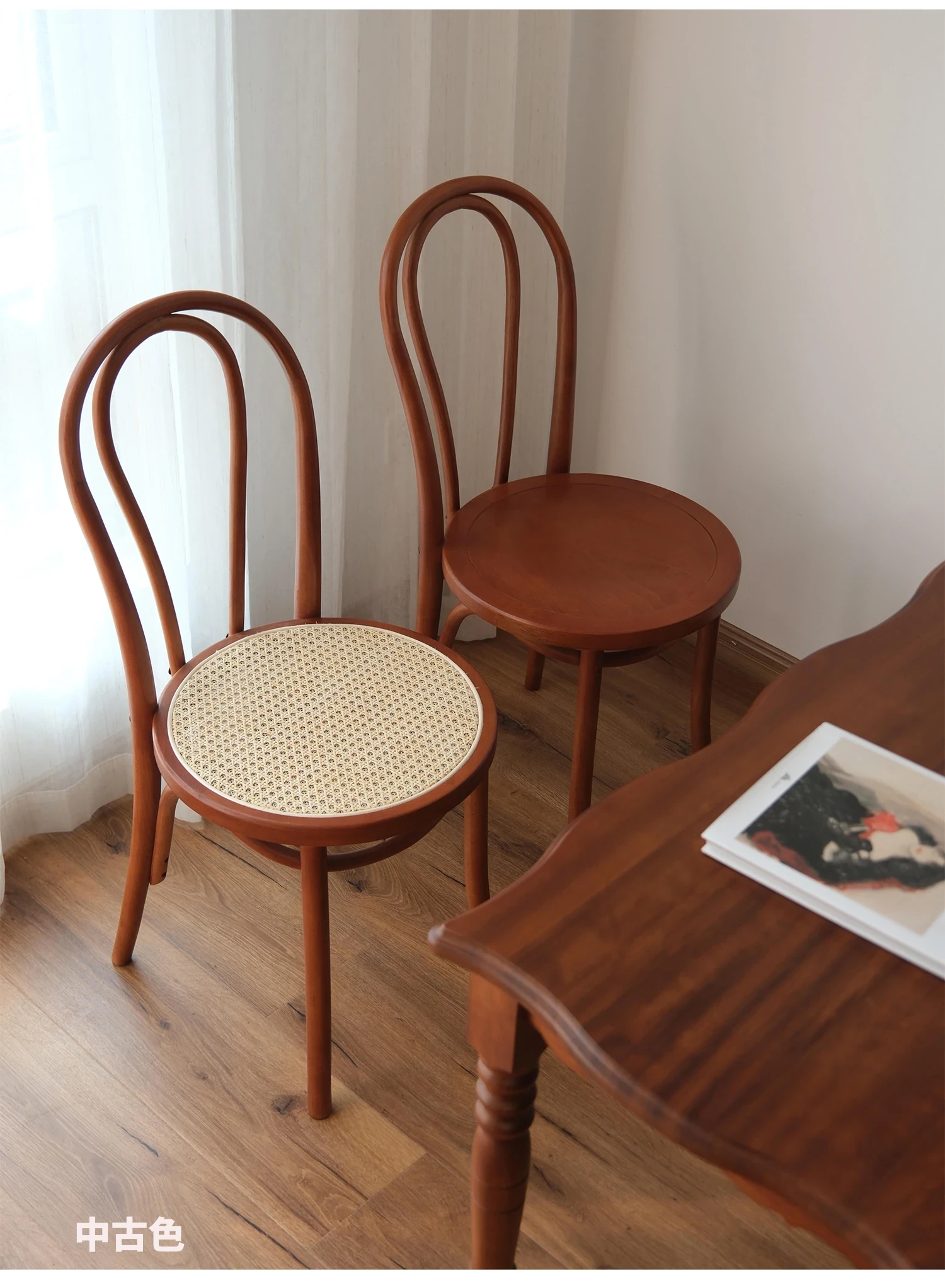 シャークホーム | ソナイトヴィンテージ家具カフェのレトロなラタン編みダイニングチェア、背もたれ付きの中古家具で、温かみのある空間を演出します。