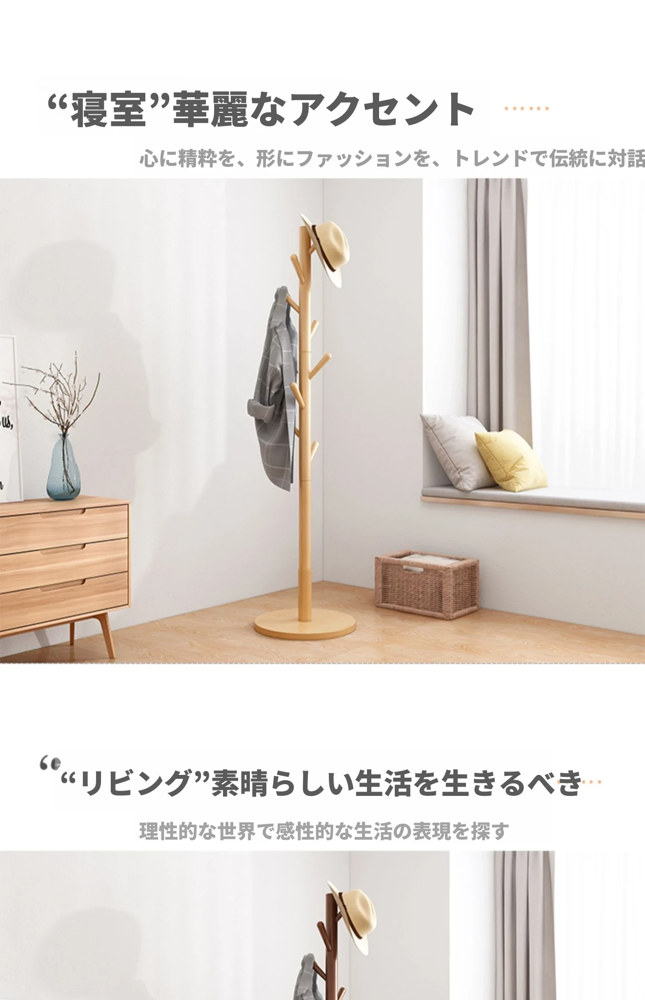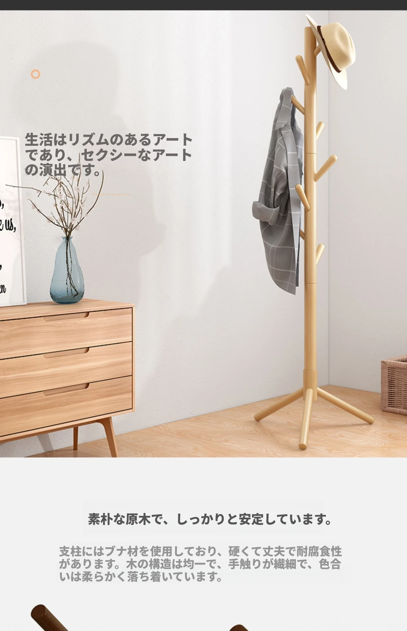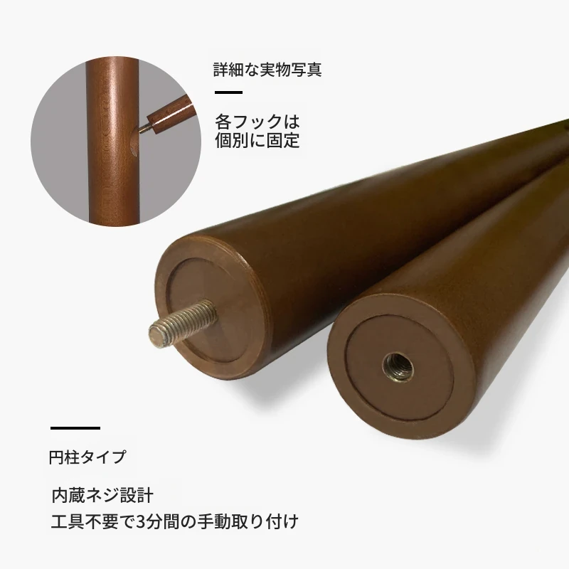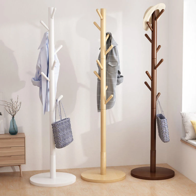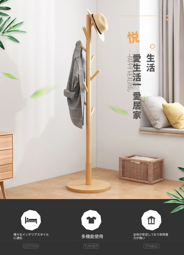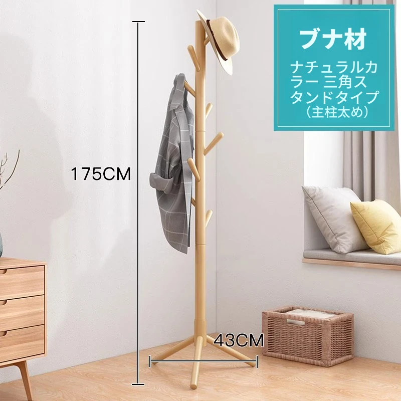 シンプルでスタイリッシュな実木製のコートハンガー - モダンな寝室にぴったり!シングルポールデザインで、家族の衣類をすっきり収納。創造的なインテリアアクセントとしても最適です。