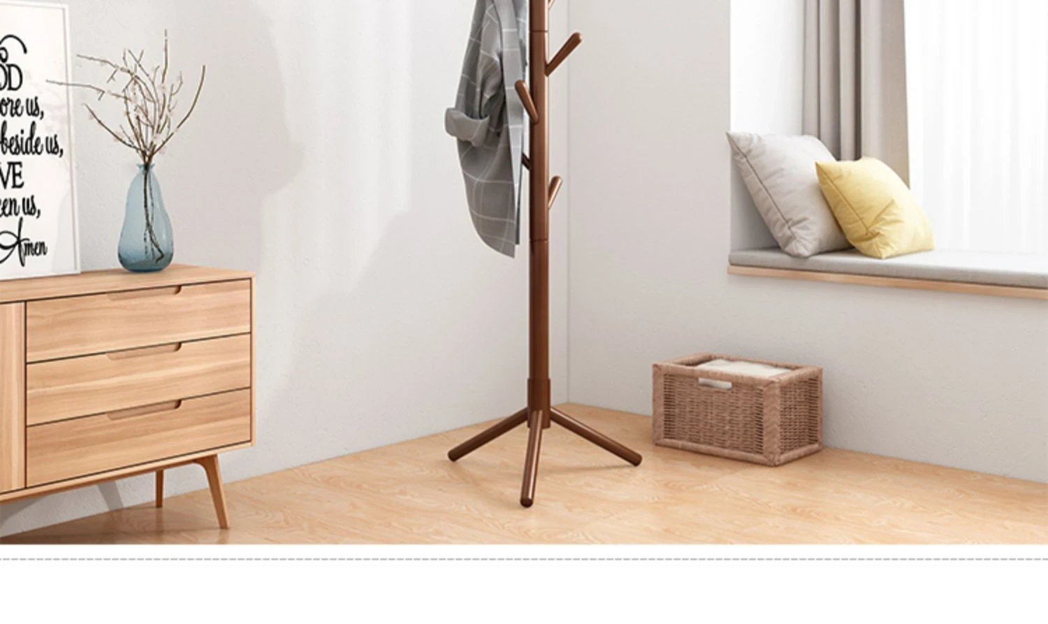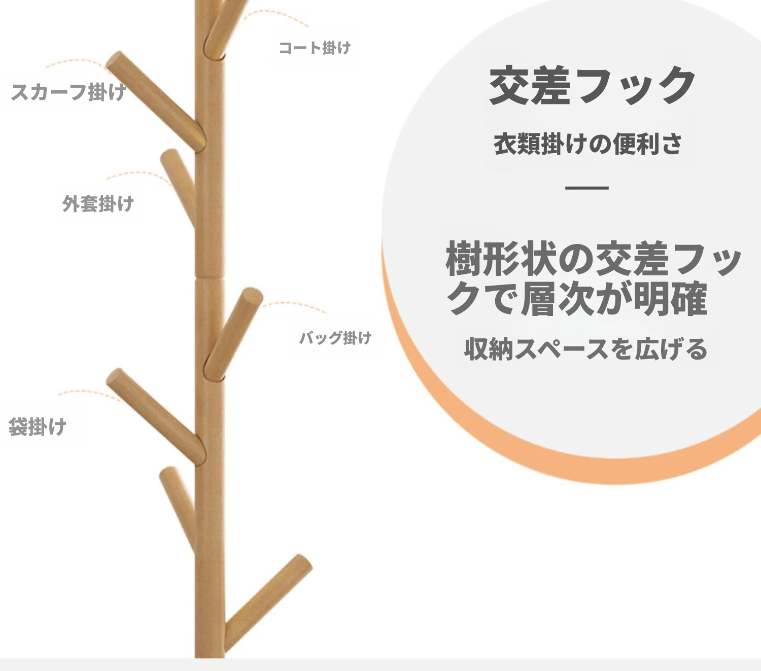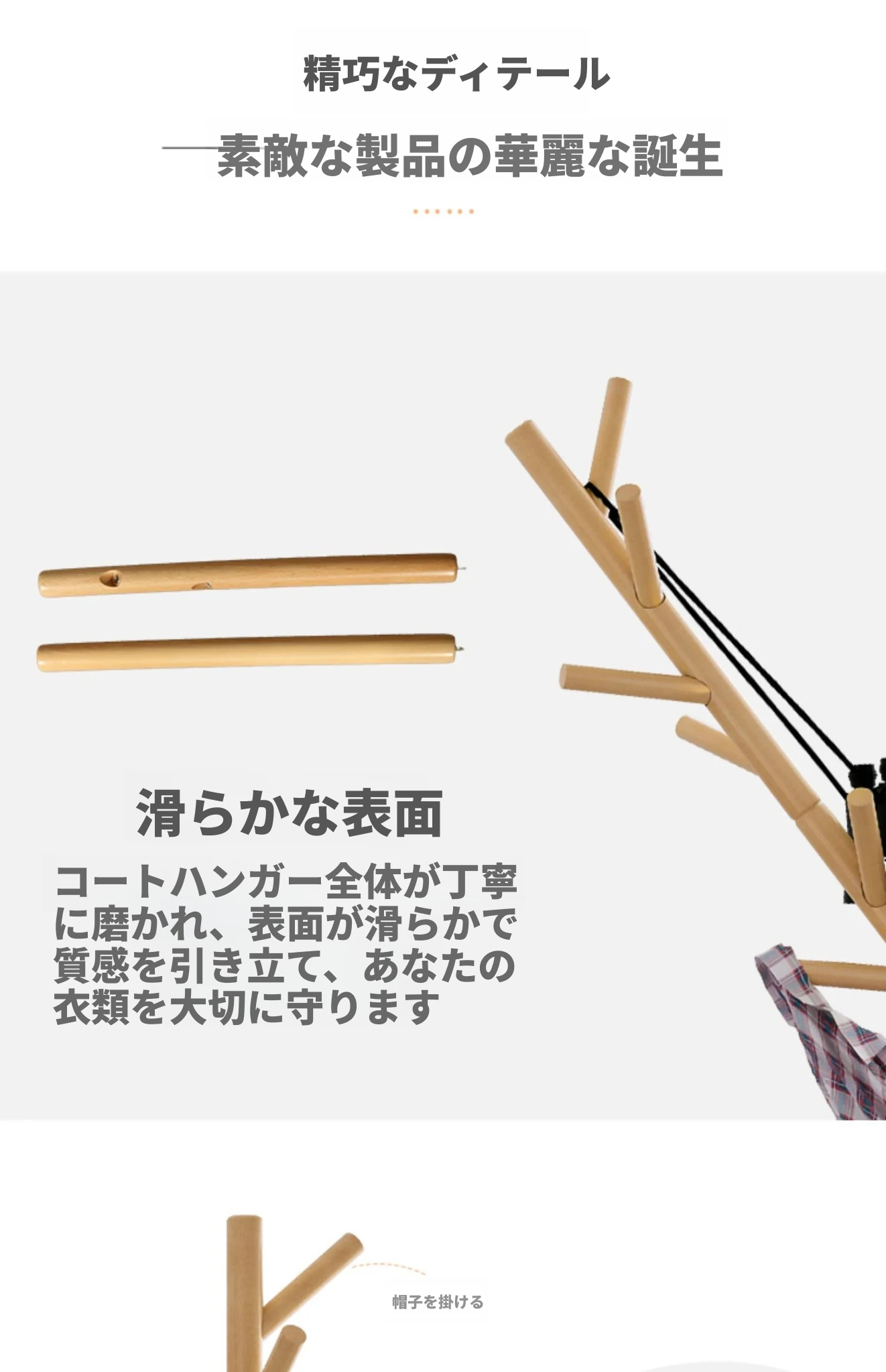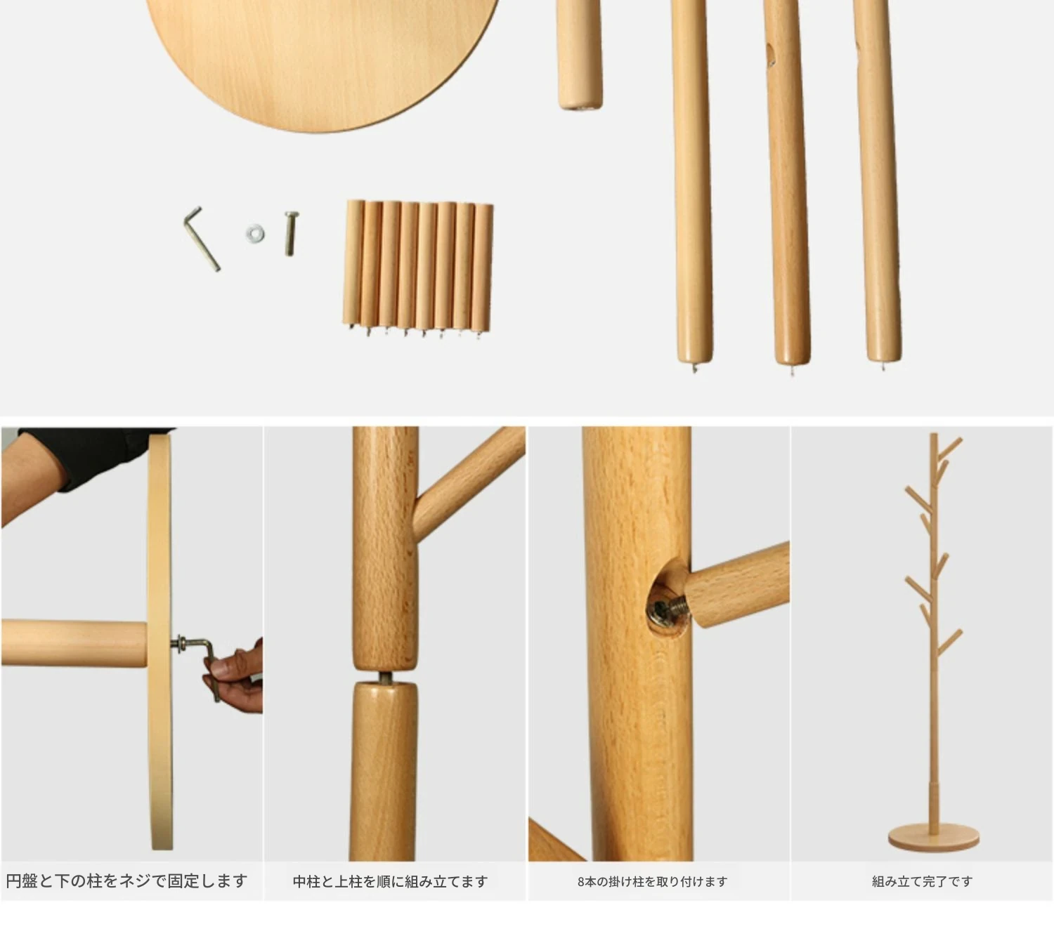 シンプルでスタイリッシュな実木製のコートハンガー - モダンな寝室にぴったり!シングルポールデザインで、家族の衣類をすっきり収納。創造的なインテリアアクセントとしても最適です。