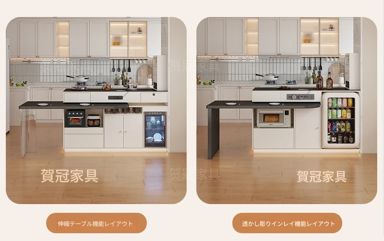 1.2メートルのストーンボードアイランドテーブル+1.6メートルのダイニングテーブル【ENFグレードの多層無垢材】