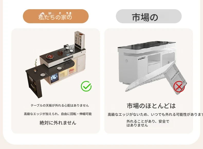 1.4メートルのストーンボードアイランドテーブル+1.2メートルのダイニングテーブル【ENFグレードの多層無垢材】
