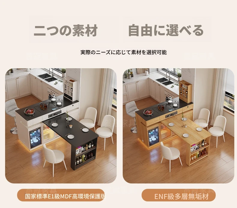 1.2メートルのストーンボードアイランドテーブル+1.2メートルのダイニングテーブル【ENFグレードの多層無垢材】