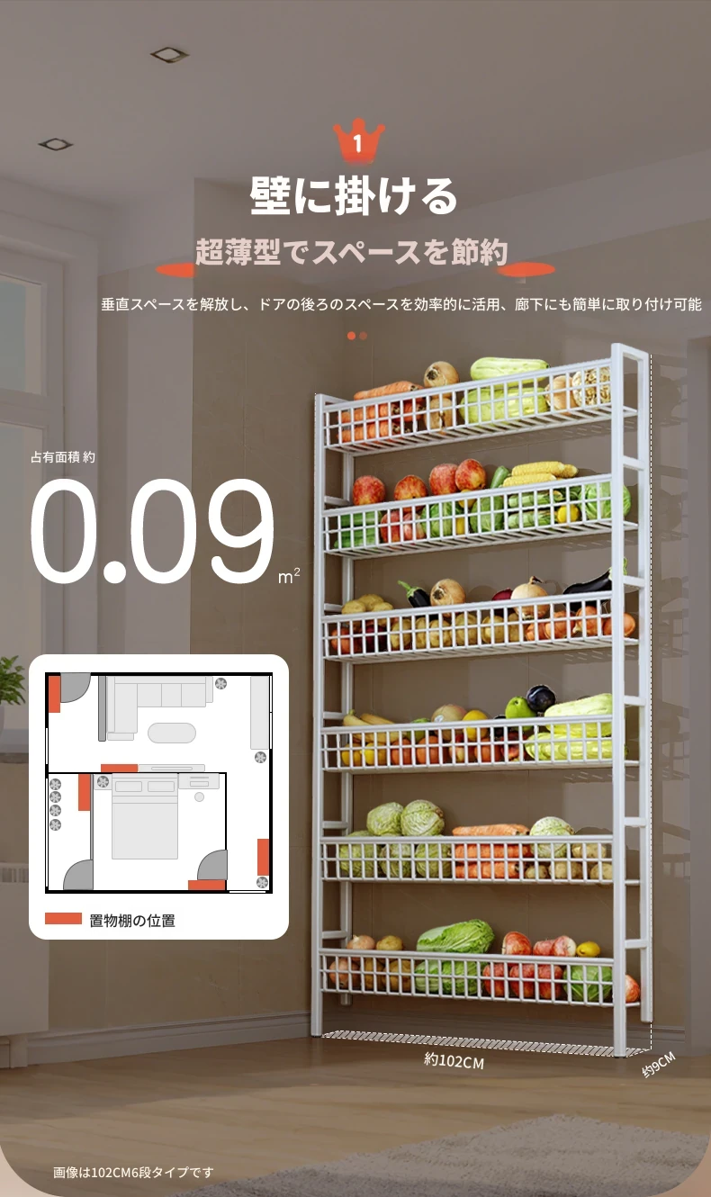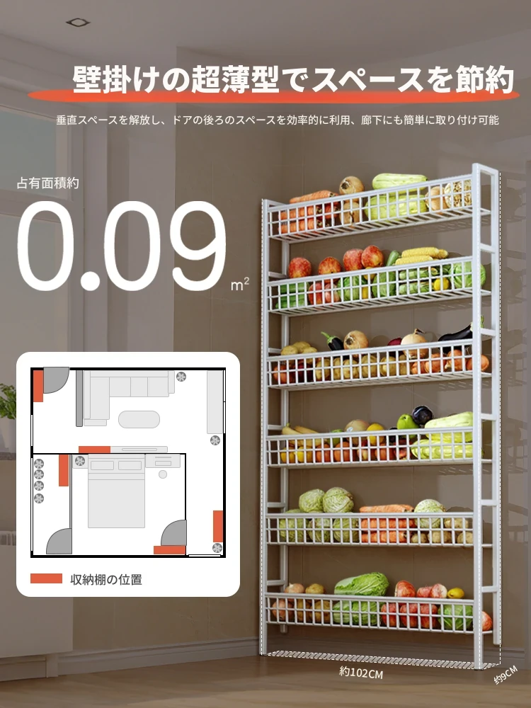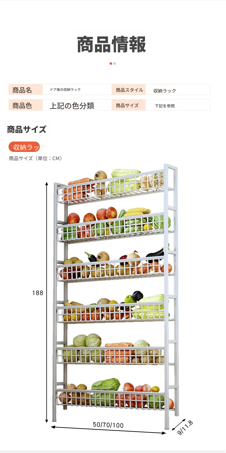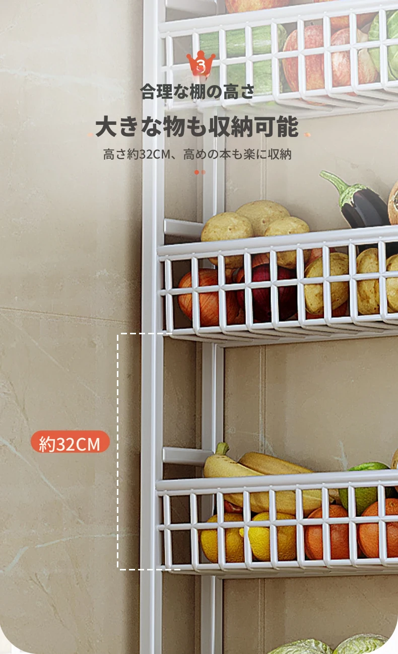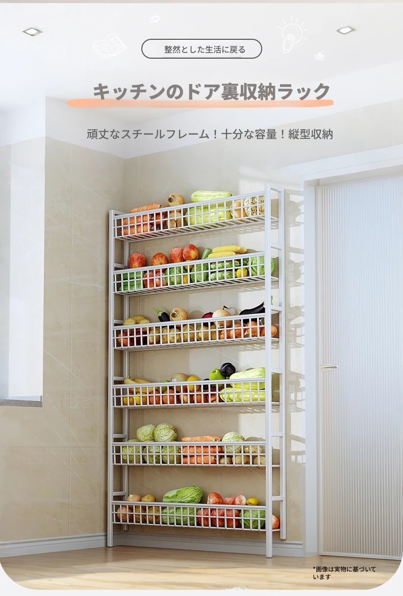 ドア後収納ラック フロアスタンド金属ラックキッチン用多層収納棚 壁掛けスリムキャビネット 家庭用雑貨ストレージラックで、空間を有効活用!整理整頓も簡単に。