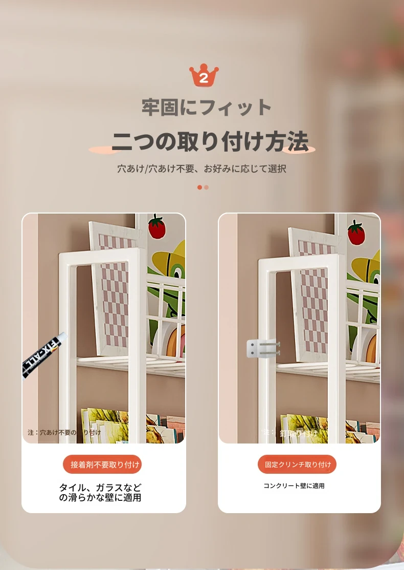 6層-82x11.8x188cm 【2種類の取り付け方法】