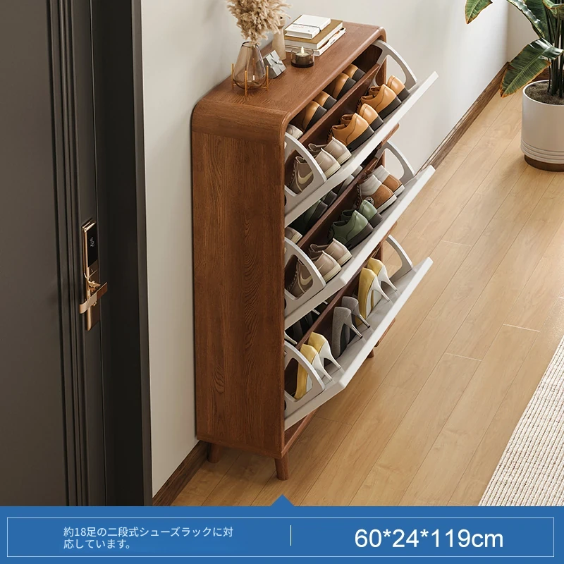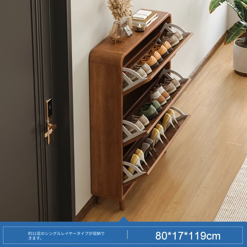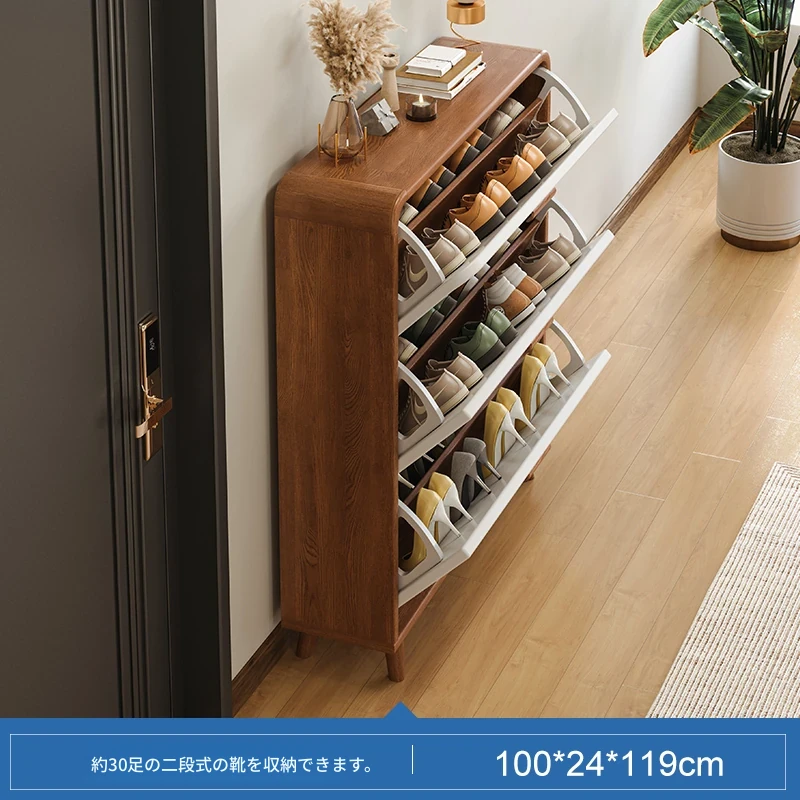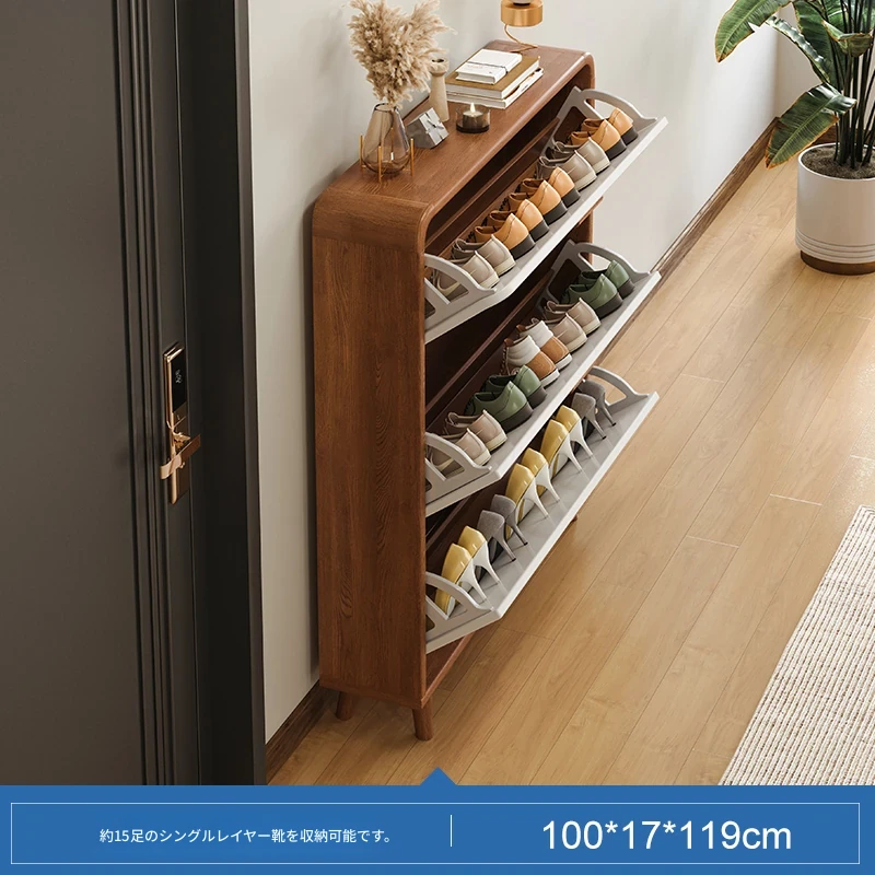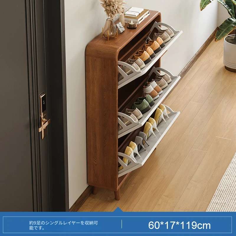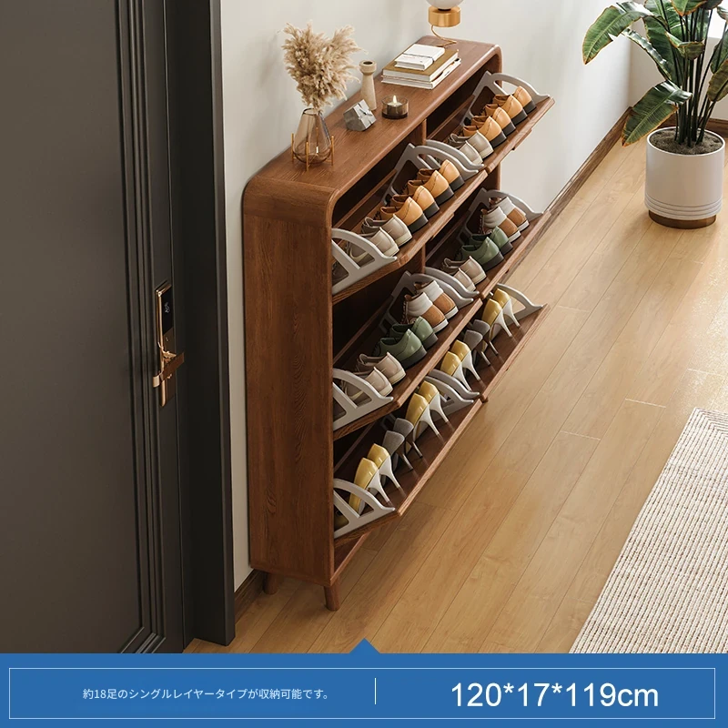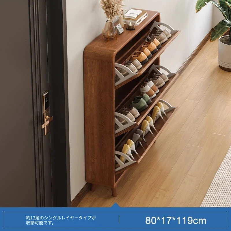 無垢材を使用した折りたたみ靴ラック|家庭用・玄関にぴったりのスリムでシンプルなデザイン|設置不要!室内に最適な薄型・多層型シューキャビネット