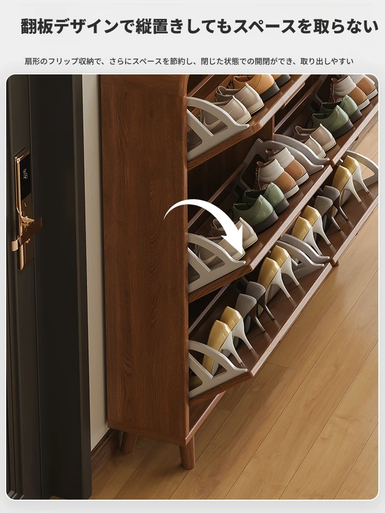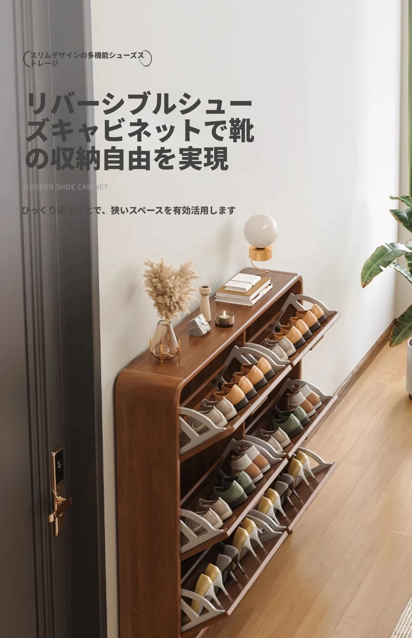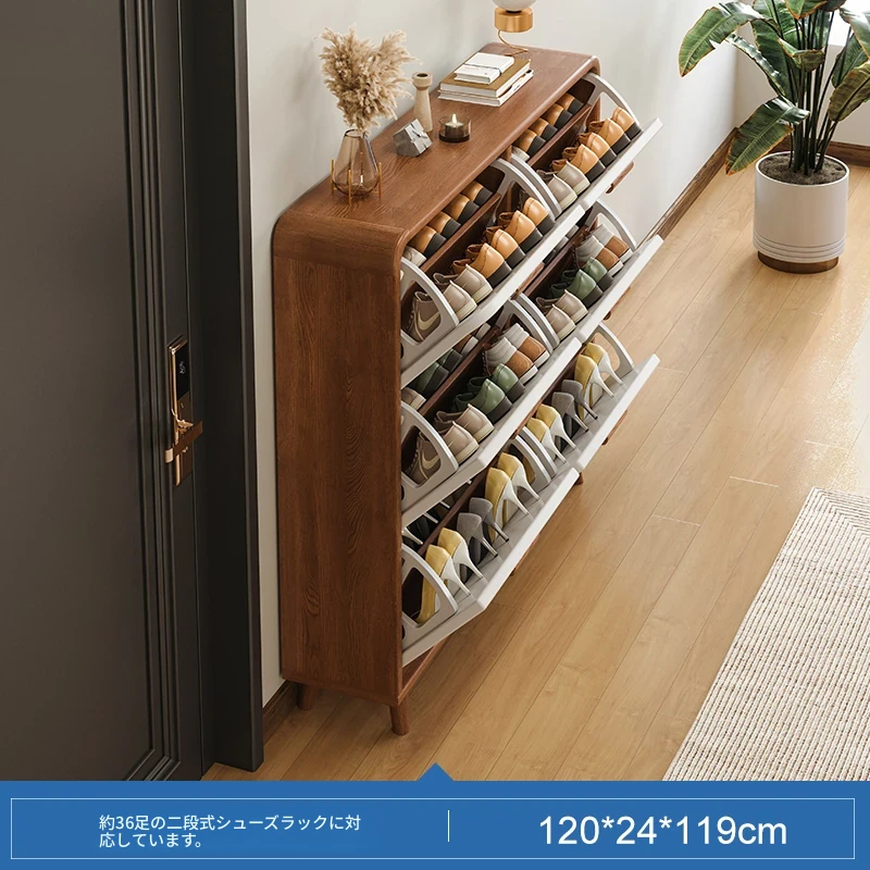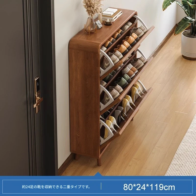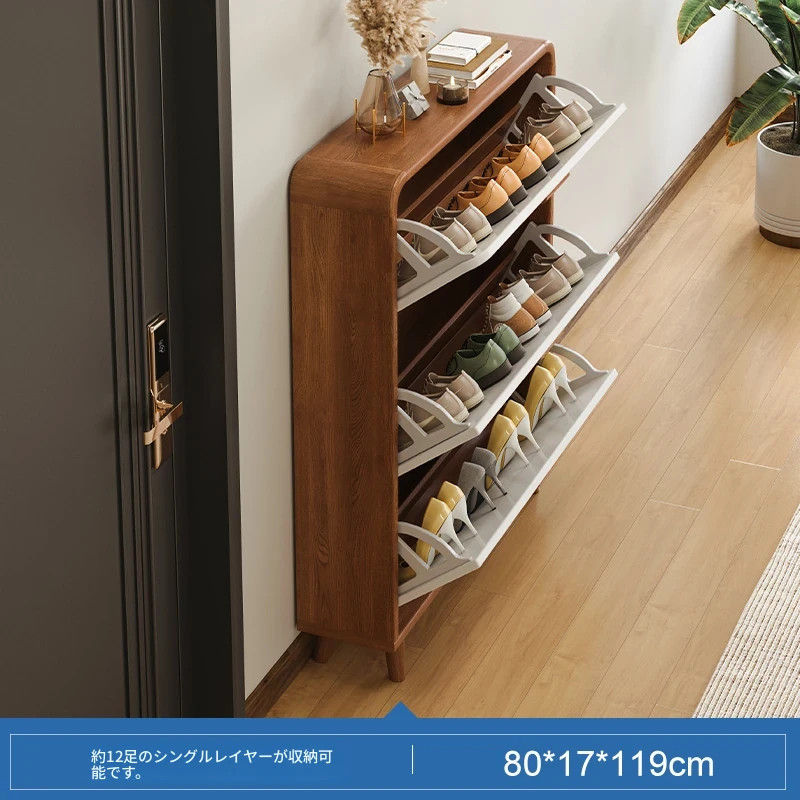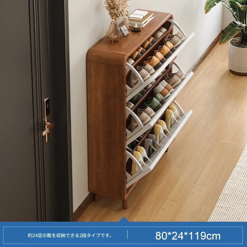 無垢材を使用した折りたたみ靴ラック|家庭用・玄関にぴったりのスリムでシンプルなデザイン|設置不要!室内に最適な薄型・多層型シューキャビネット