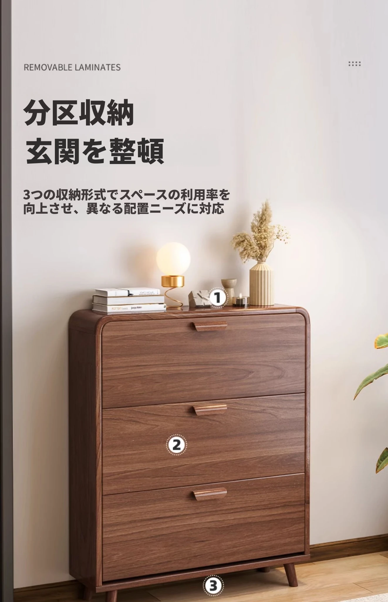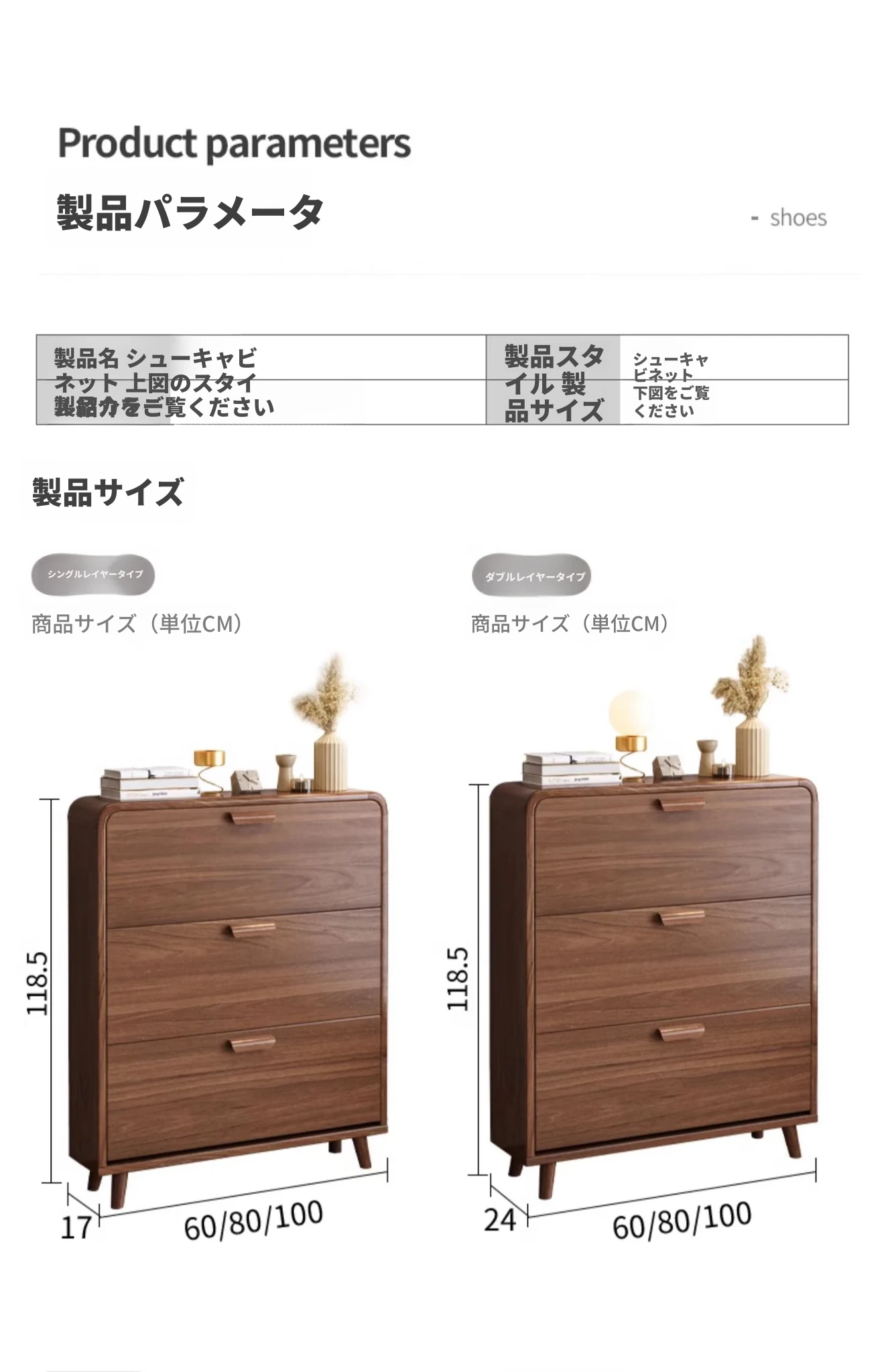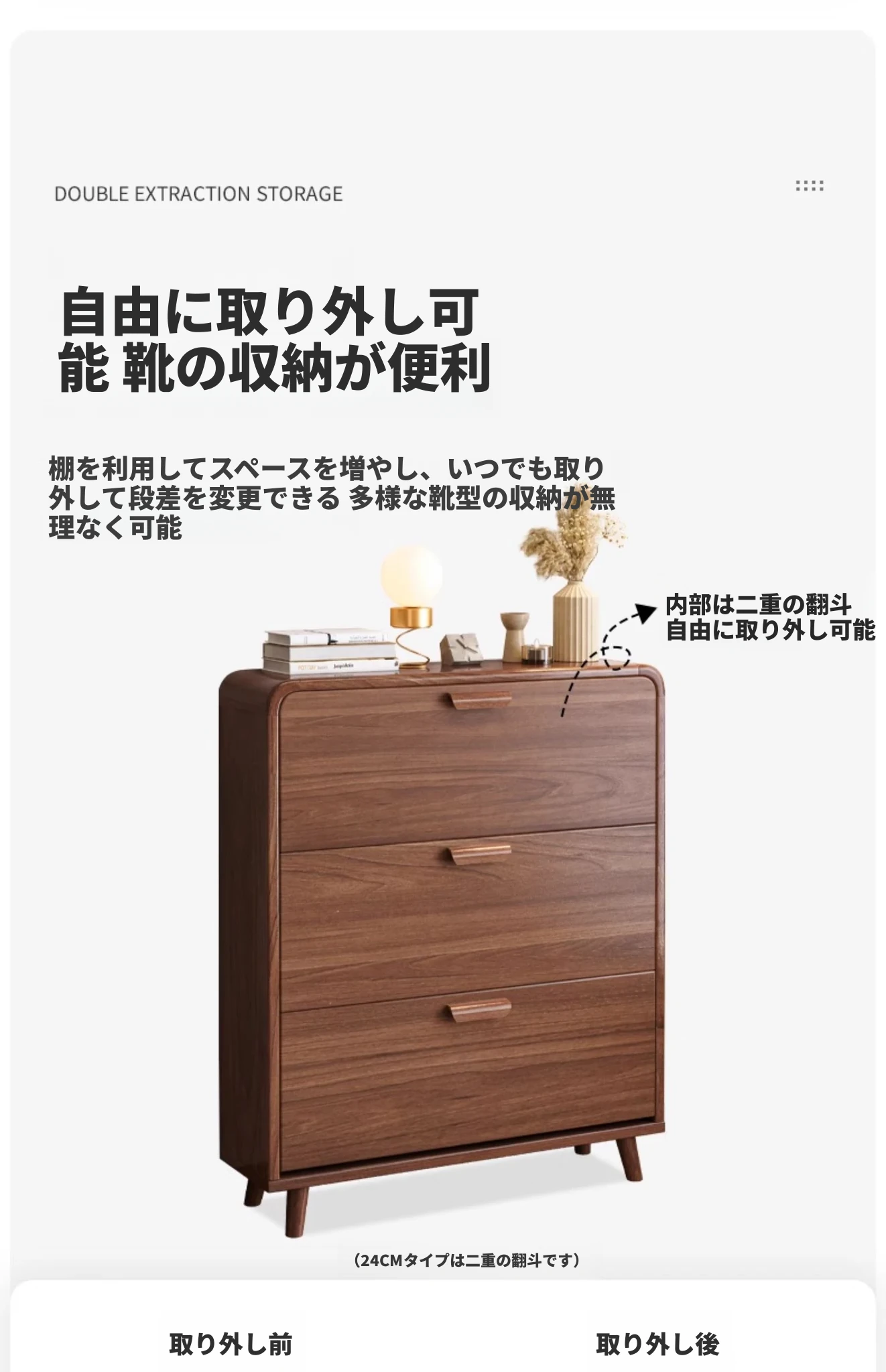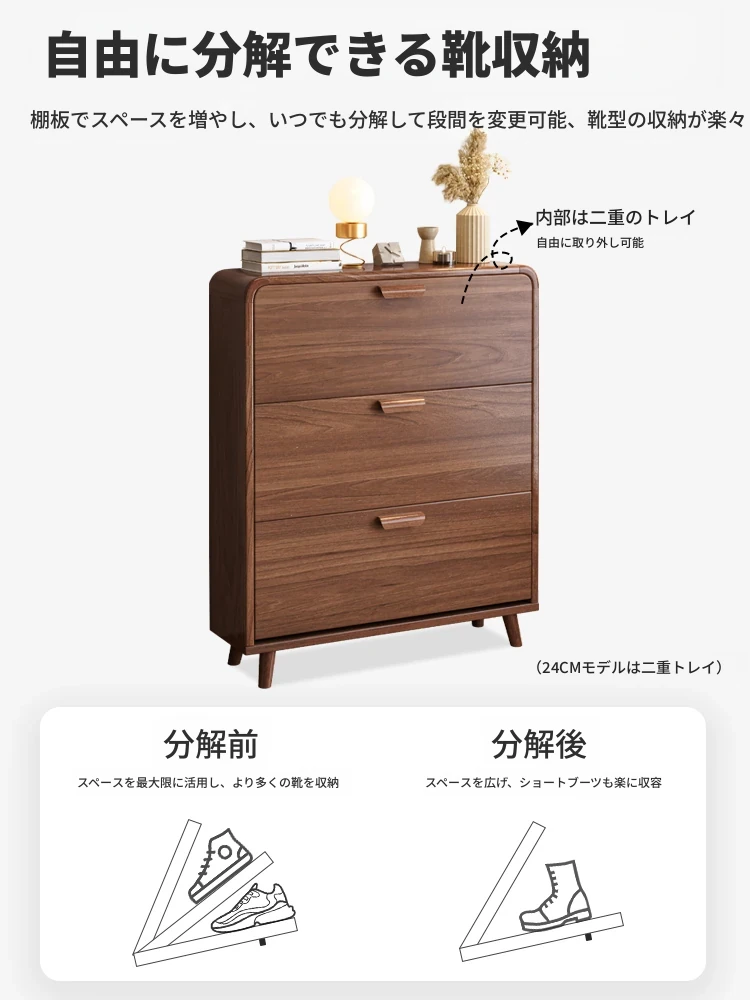 無垢材を使用した折りたたみ靴ラック|家庭用・玄関にぴったりのスリムでシンプルなデザイン|設置不要!室内に最適な薄型・多層型シューキャビネット