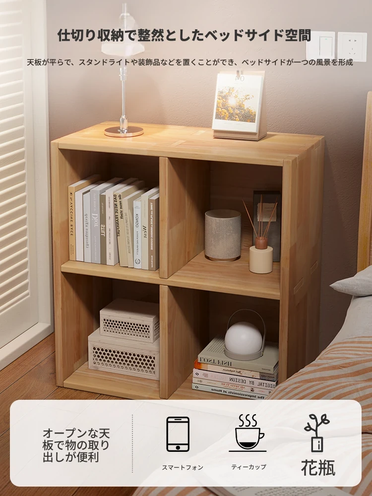 天然木のベッドサイドキャビネット・窓際収納ラック・寝室用本棚・スタイリッシュな置き棚・バルコニー空間にぴったりな収納家具!おしゃれで機能的なデザインで、あなたの生活空間を一層魅力的に演出します。